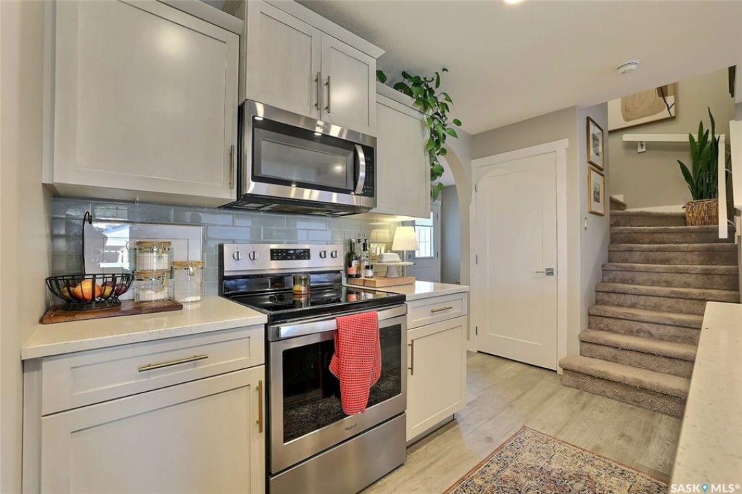Welcome to 1780 Mustard Street! Check out this unique new build with a touch of character flair. Some unique touches include, new pantry door, beautiful modern light fixtures and an arch entryway to the living area! Some other features that make this townhouse stand out from the rest include; separate side entrance for a future basement suite, insulated garage, full PVC fence with front and back gate access, covered back deck with pergola, walk through pantry and blinds on main floor from Regina Drapery and Blinds Centre!