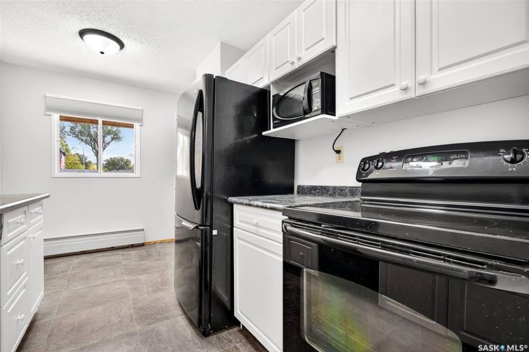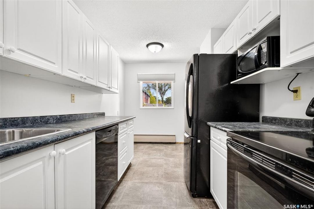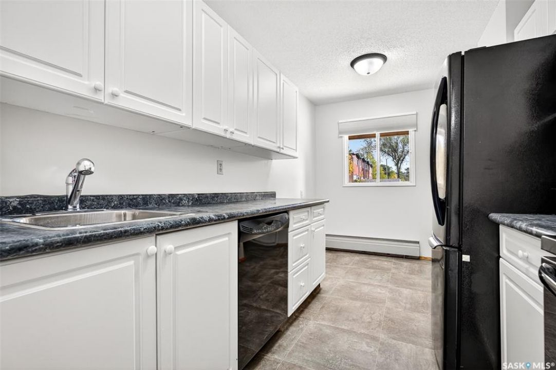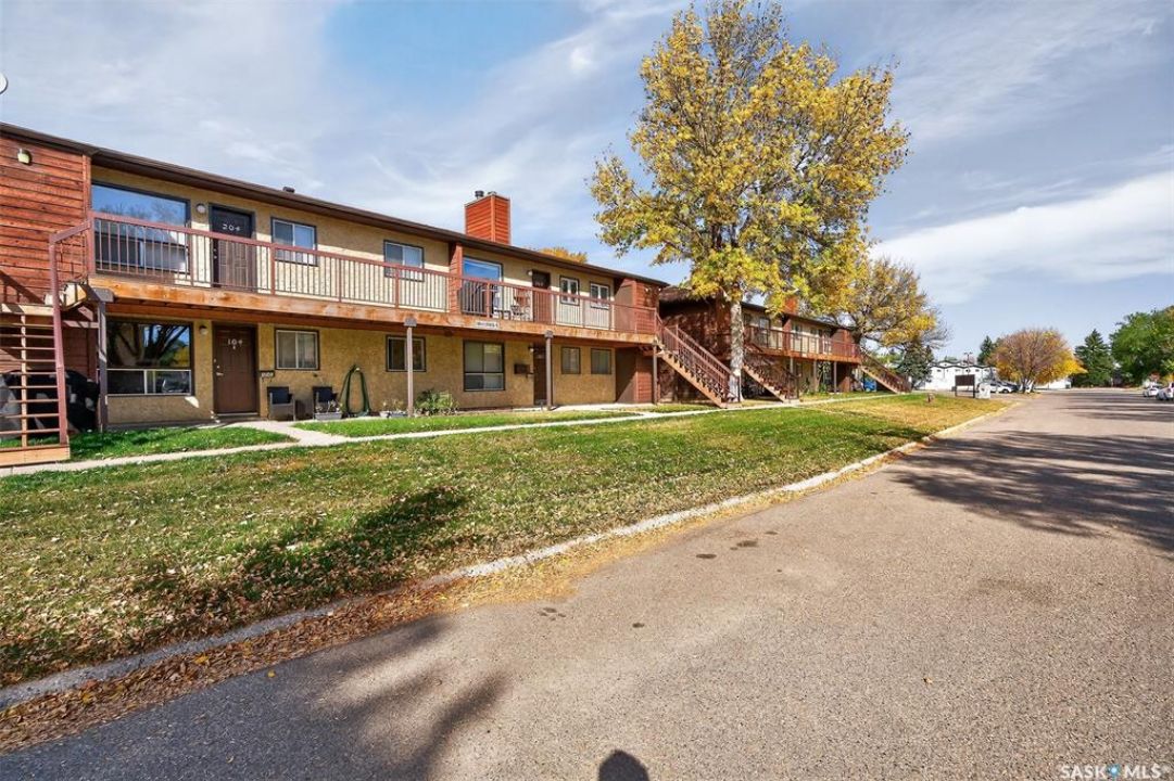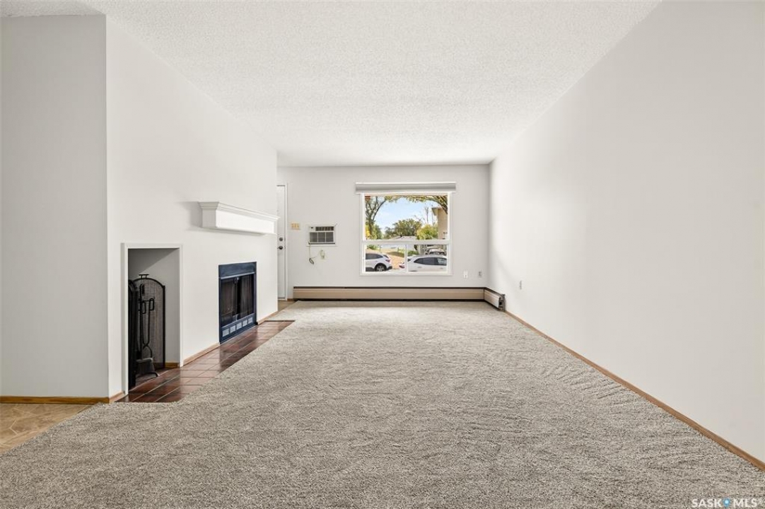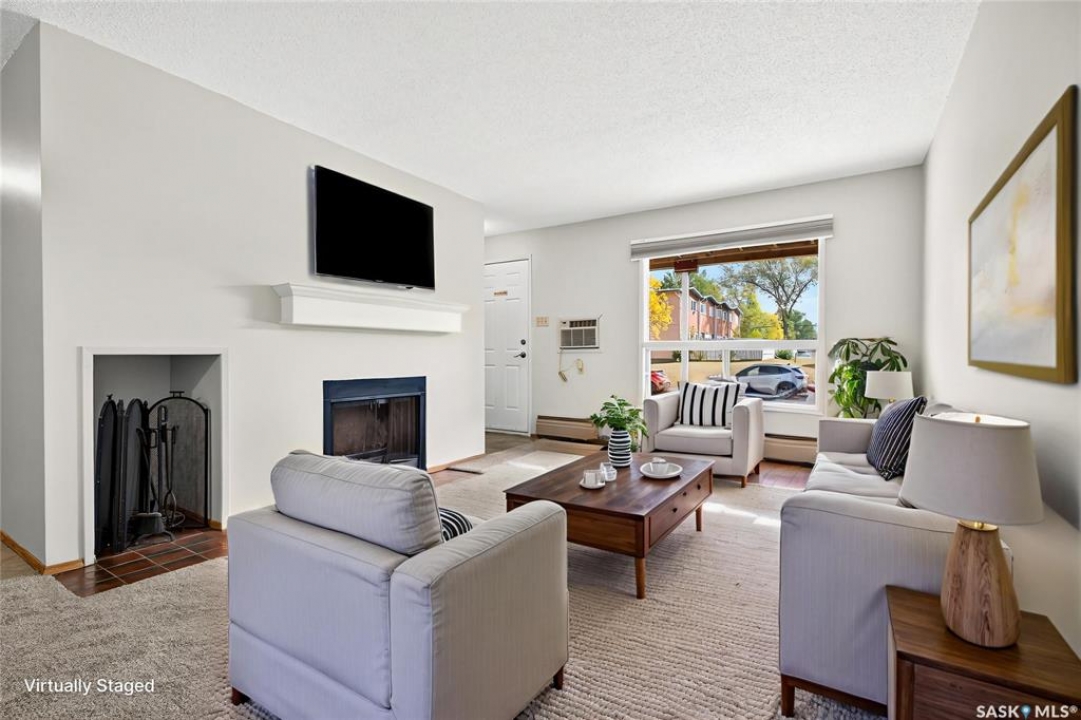 Move-In ready, Affordable Home Ownership or Amazing Revenue Opportunity! This ground level, sunny south facing 2 bed, 1 bath Condo would be a great little place to call home! It has just recently been freshly painted throughout, has new flooring throughout most of the unit and has had a bathroom rehab - including new toilet, tub and surround. Good sized living room features an accent wall with wood burning fireplace and nice mantle. Suite features galley style kitchen with updated cabinetry, and oversized walk-in pantry space. 2 large bedrooms, full bath with stylish barn door and in-suite laundry complete the space. Step outside with your morning coffee to enjoy your patio! Condo comes with 1 electrified parking stall and an outside storage space. Condo fees include heat, water, sewer, garbage, ground maintenance, snow removal, building insurance and reserve fund.