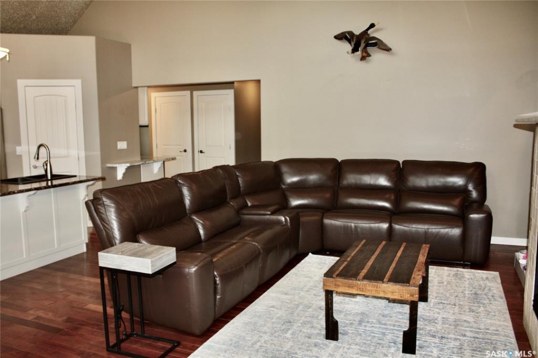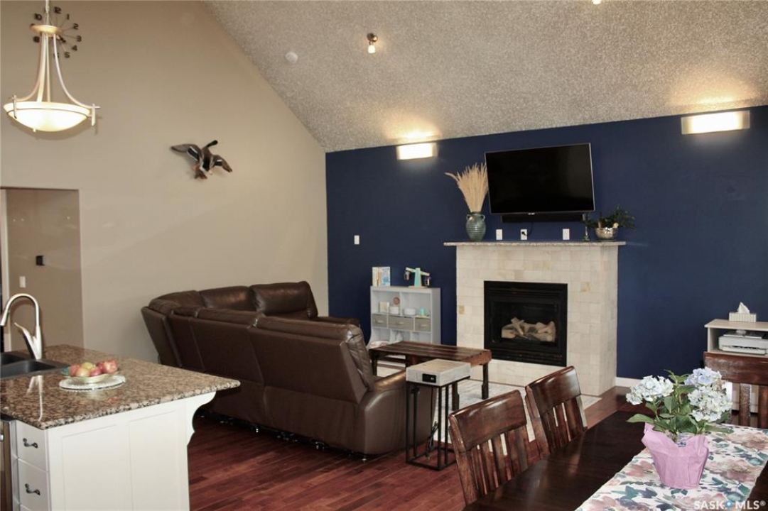 Welcome to a 1 and a half storey home with Dream Shop(34'x40') Corner Lot at 212 Jura St in Colonsay, SK Located just 30 minutes east of Saskatoon in the quiet community of Colonsay, with huge addition offers 1,588 sq. ft. of thoughtfully designed living space The massive dream garage/shop is a must see and is perfect for hobbyists, mechanics, or small business owners. The heart of the home is the open-concept kitchen, complete with granite countertops, a granite sink in the island, stainless steel appliances including a gas range, a massive pantry, hardwood floors, and a built-in bar area—ideal for entertaining. The living space features vaulted ceilings, large windows that flood the home with natural light, and a cozy natural gas fireplace. The primary bedroom is spacious with two closets, while the main bathroom feels luxurious with double sinks, a granite vanity, tiled backsplash, shower, and heated tile floors. Upstairs, you'll find a generous second bedroom with a walk-in closet, plus a large office/loft area, both beautifully finished in pinewood. The finished basement includes a third large bedroom and a full 4-piece bathroom with a corner tub and shower. Outside, the low-maintenance, fenced courtyard is Xeriscaped with vinyl fencing, two sheds (one insulated with power), concrete patio and ample space to relax or entertain. A true showstopper is the 34' x 40' heated garage/shop. Features include: 12' ceilings, interior lined with steel, radiant heat, floor drain, 3 bays - each plumbed with air and power, wall plugs every 3 feet, wall cabinets, home office, a separate storage room with in-floor heat and extra enclosed storage above. Off-street parking for at least 12 vehicles. This property is the perfect blend of comfort, style, and functionality. This is a great family home and a truly great shop—this one has it all. Don't miss your chance to own this unique property! Call to book your showing.