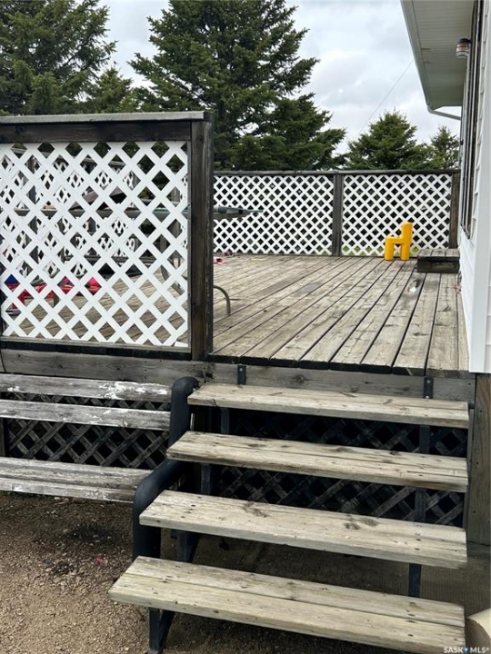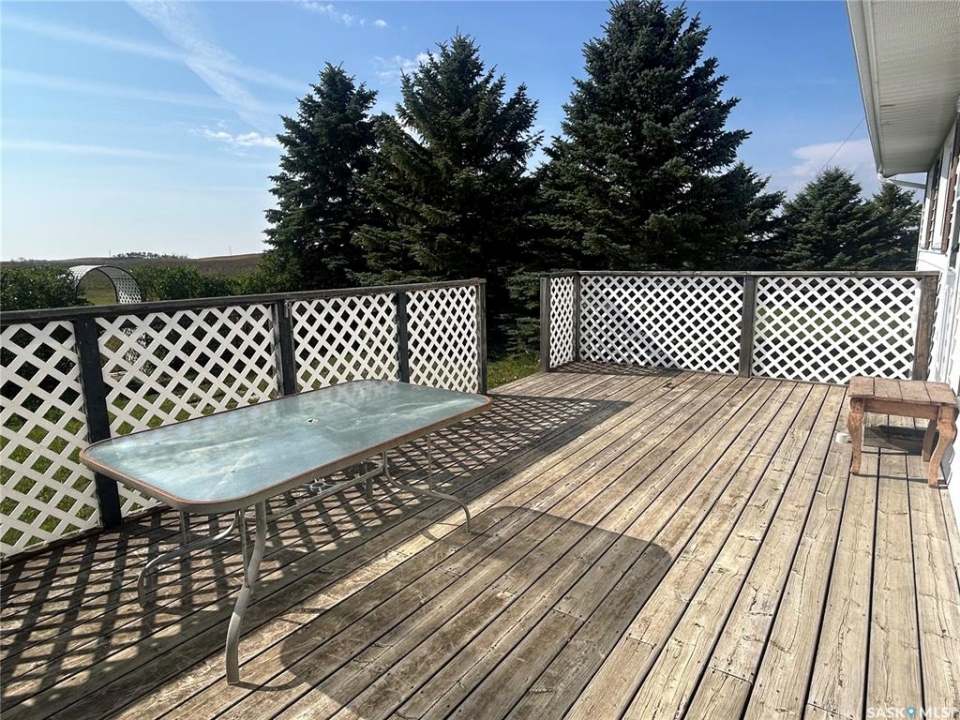 Dreaming about country life? This might be the property for you! This home was built in 1989 with a double attached garage. Situated on a 30 acre parcel south of hwy 15 in the RM of Wood Creek, this acreage offers privacy and tons of space for outdoor living, hobby farming, or just enjoying the outdoors. South facing living room shares a vaulted ceiling with the north facing kitchen/dining room. A 4 pc bathroom (recently updated) and 3 bedrooms complete the main level. Basement is partially finished with walls insulated/drywalled and concrete floors. Layout has a large family room (currently used as a bedroom), a rough in for 3 pc bath, bedroom and utility/laundry room. Double garage has gravel floor and currently houses the cistern. Heat source is an electric furnace. Sewer system pumps out to lagoon. Shingles were updated approx 2018, Exterior is vinyl siding. Outside the terrain is rolling, with tons of room for future development of a shop, second home, or whatever your heart desires. Great upside potential for a buyer with carpentry skills!