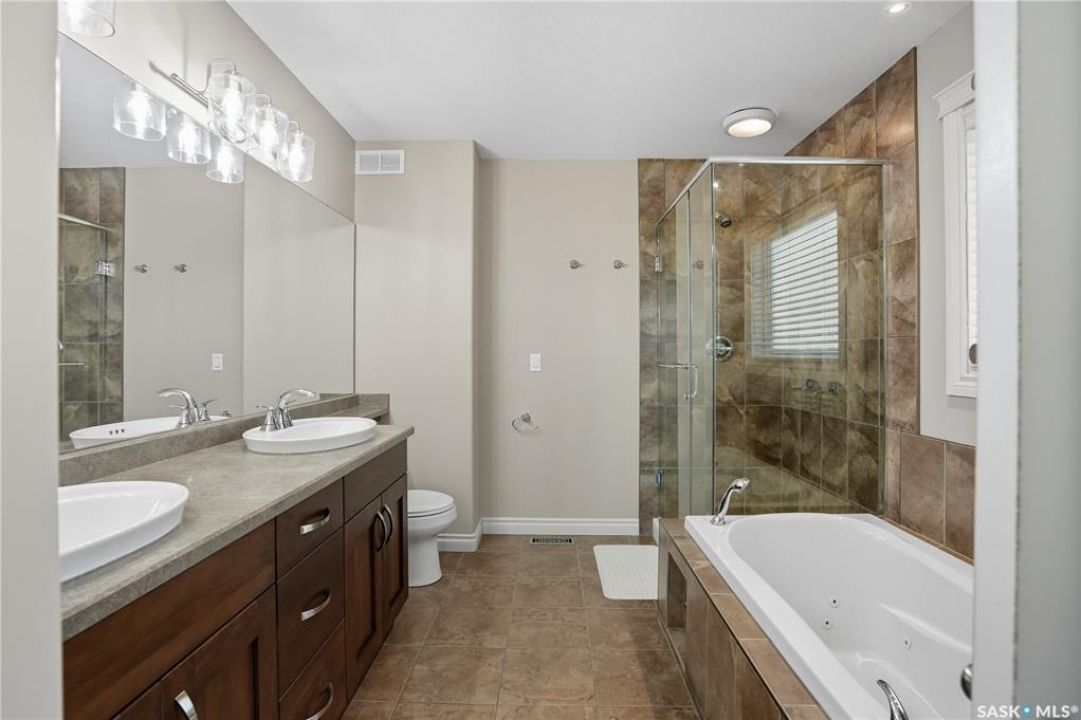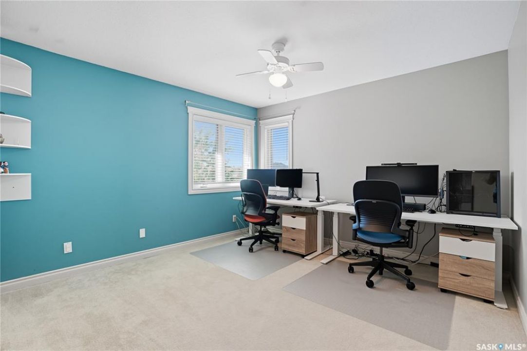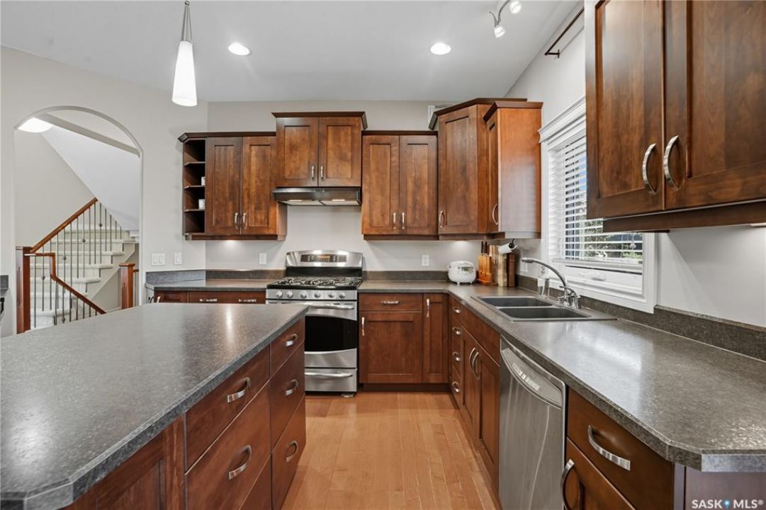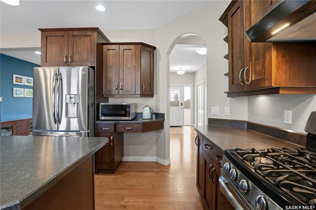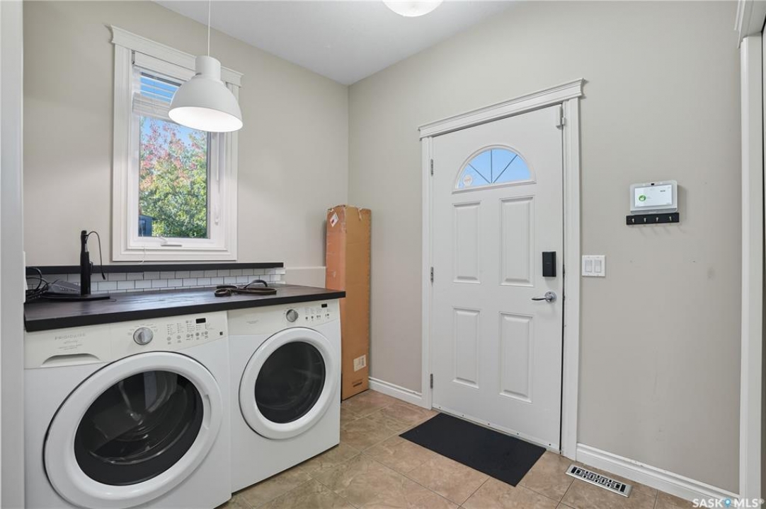 Tucked away on a quiet street near the back of Willowgrove is a 4 bedroom, 4 bathroom two storey that could be just what you've been waiting for! From the covered front porch you'll step inside & notice a spacious foyer that makes way to an inviting floor plan with plenty of windows to flood the home with natural light. A kitchen for the cooking enthusiasts with ample storage & counter space, as well as a natural gas stove. The spacious dining area is has a gas fireplace providing ambiance & distinct seperation from the adjoining living room. The main level features a functional layout with direct access to the backyard deck from both the dining area and the laundry/boot room, which leads to a 3 piece bathroom—ideal for entry from working or playing in the yard or garage. Upstairs are 3 generous sized bedrooms. The primary includes a walk in closet and a sizeable 5 piece ensuite featuring a jetted tub & stand alone shower. A 4 piece bathroom rounds out the second level. Downstairs you'll discover a welcoming, fully developed basement, designed for both relaxation and entertaining, featuring a dry bar, large family room, bedroom, 4-piece bathroom, and a versatile den/storage. Outside, the backyard has everything you need to enjoy the outdoors comfortably including two natural gas hook ups. The yard is landscaped with garden boxes and underground sprinklers. Off the back lane is a heated double detached garage providing ample space for working and parking, as well as a third parking spot beside. All carpet was replaced in 2022 as well as newer systems over the past 3 years; furnace (23), hot water heater (25), HRV (23), water softener (22), sump pump (24). With close proximity to elementary schools, shopping, dining, and commuter routes, this home combines everyday comfort with an unbeatable location. A fantastic opportunity for those looking to settle in one of Saskatoon's most desirable neighbourhoods. Contact your Realtor � to view today!