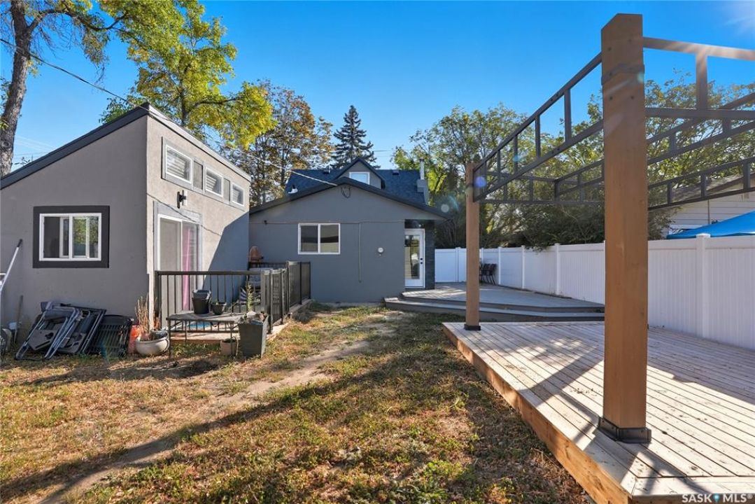 Welcome to 1041 Ave L N in Hudson Bay Park! This well-cared-for home offers just over 800 sq. ft. of living space on a corner lot that backs onto a park and dog park, with barely any neighbours. Inside, you'll find a cozy layout with a loft-style bedroom upstairs and a beautifully updated main level. The property also features a she shed currently used as a salon with a small deck and heat! Enjoy the heated double heated car garage and an impressive list of updates that make it truly move-in ready. Recent improvements include: 2” foam acrylic stucco (2018), new air conditioner (2019), new roof shingles (2021), a brand new garage (2022), a full kitchen renovation with Superior Cabinets (2022), all new electrical, insulation, drywall, plumbing and flooring on the kitchen level (2022), a new bathroom with Superior Cabinets (2022), vinyl fencing (2022), a new driveway (2023), Brandy's She Shed (2023), and a composite back deck (2024). The home also had all new doors and windows installed in 2017 (except the bay window at the front). Located close to parks, schools, and amenities, this home perfectly combines modern upgrades, character, and an excellent location.