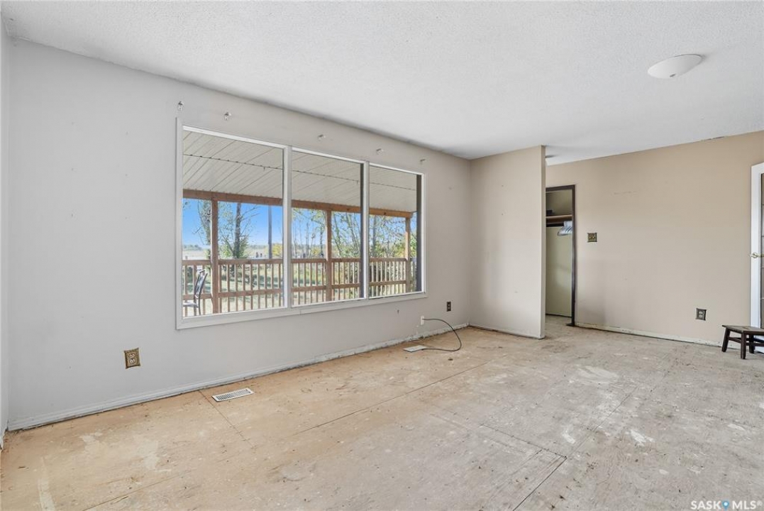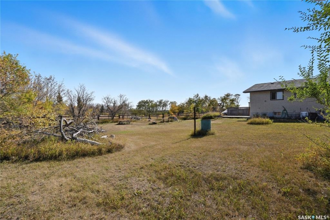 Don't miss out on this unique opportunity to own 4.6 acres less than 15 minutes west of Saskatoon! This bungalow is 1008 square feet with 3 beds + a den, and 2 bathrooms. This home may need some TLC, but its solid structure and spacious layout offer a good foundation for your dream renovation. Even diamonds start out a little rough! The main floor features a large living room adjacent to the kitchen and separated by a partition wall. This wall could potential be removed to create an open concept that totally revitalizes the space! There are three bedrooms on the main floor and a large 3 pc bathroom. The basement of the home is a literal blank canvas as you can see everything is white. Downstairs you'll find a large open living area - a den that could be used as a bedroom - and a 2 piece bathroom. The possibilities are endless with this place especially when you consider the yard that you're getting! Isn't that why you move to an acreage in the first place?! The yard has some established fences that could be used to contain a horse or two. The parcel is thick with trees and bush and invites exploration with adventure. There are already a few trails that wind through the property, but there's ample space to carve out new ones and make the land truly your own! The property is located walking distance from Sandy Ridge Gas Station which offers amenities and of course, delicious ice cream and fresh baking. This property is meant for someone, and that someone could be you! Don't hesitate, call your Realtor immediately and book a showing!