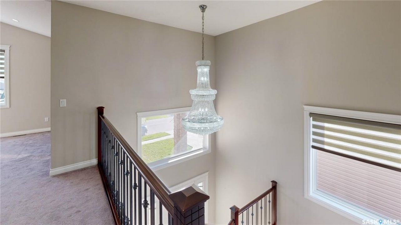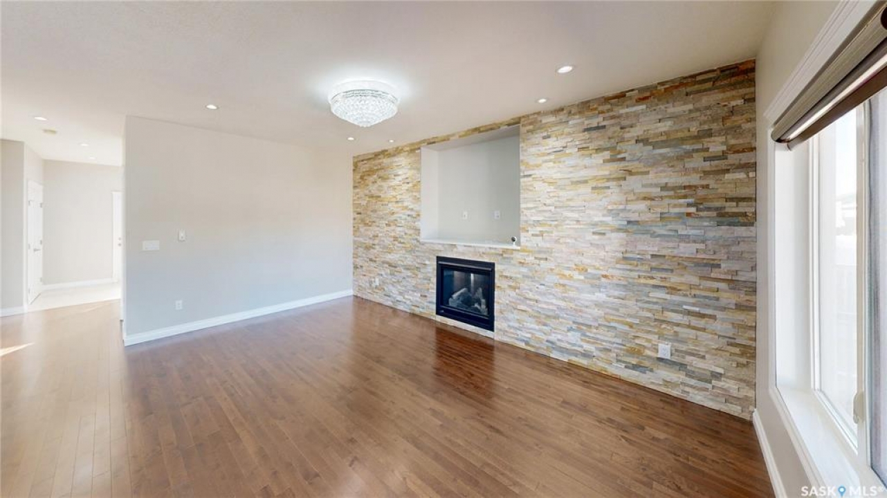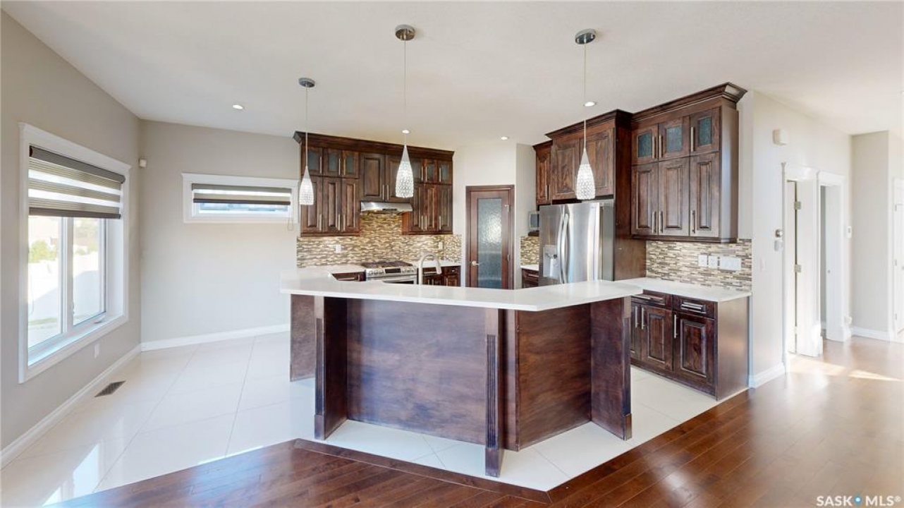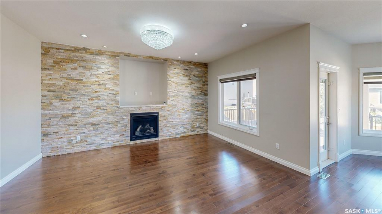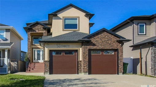 Welcome to your dream home! an elegant family home located in the vibrant Harbour Landing neighborhood. 2017 built, 2379 square foot, 5 bedroom 4 bathroom, 2 story house sits on a 40 x 115 rectangular lot. The front yard has a double concrete driveway that leads to the 24 x 24 heated and insulated double attached garage. The fully fenced backyard features a spacious deck, lush lawn, raised garden boxes, and a versatile patio area. Ideal for outdoor dining, entertaining, or evenings around a firepit. Upon entering, you are welcomed by a grand foyer embellished with an elegant chandelier, a coat closet, bench space, and convenient direct access to the garage. The main floor features a flexible first bedroom and a 4-piece bathroom, ideal for guests or as a home office. The heart of the home is the warm and inviting living room, accentuated by a striking brick feature wall, a cozy gas fireplace, and gleaming hardwood flooring. The adjoining kitchen includes an island with bar seating, a corner pantry, a modern tile backsplash, ample cupboard and drawer space, and sleek stainless steel appliances. The kitchen seamlessly transitions into the bright dining area, where three large windows frame serene views of the backyard, creating an ideal setting for family meals. On the upper level, the first stop is the 3-piece bathroom featuring a rainfall shower head, followed by a generously sized bedroom complete with its own closet. The luxurious primary suite offers a walk-in closet with built-in shelving and drawers, along with a spa-inspired 5-piece ensuite bathroom that includes a deep soaker tub, dual vanity, a spacious glass shower with a rainfall showerhead and storage space. A unique windowed nook within the primary bedroom provides a tranquil corner for reading or relaxation. The fully finished basement is designed as a private secondary suite with its own separate side entrance, making it perfect for multi-generational living or generating rental income.