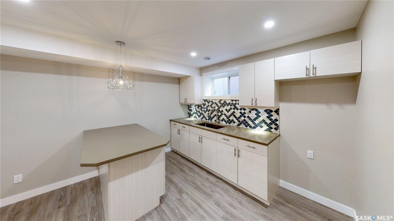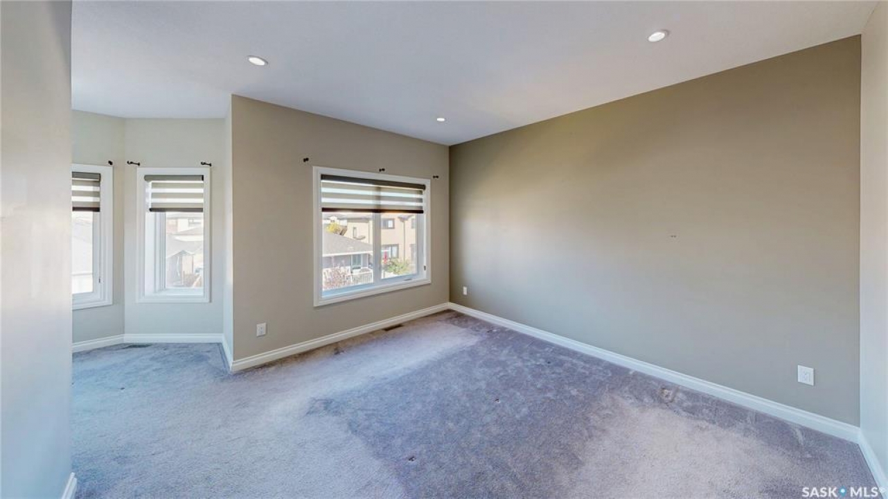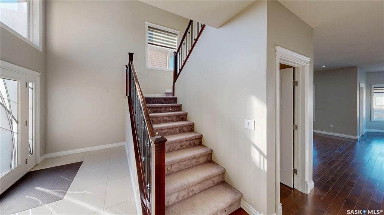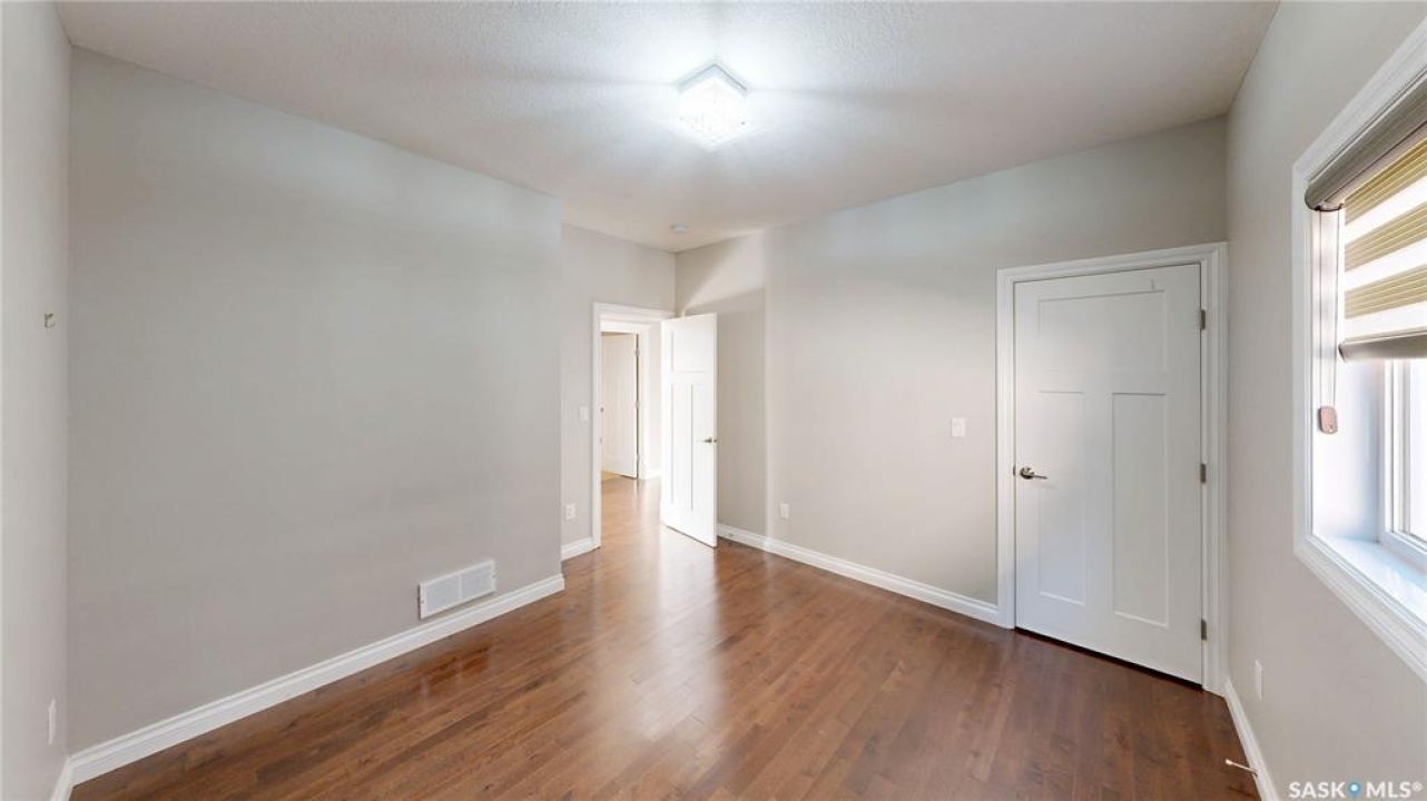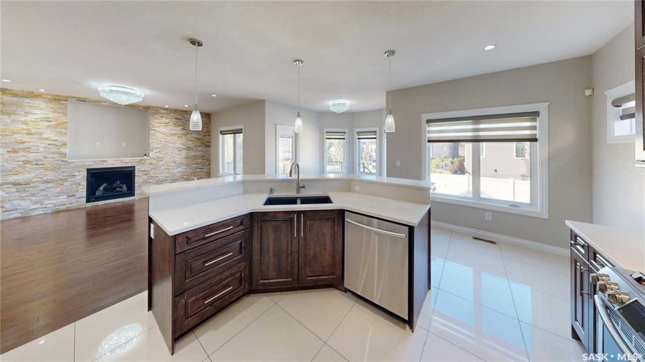 Welcome to your dream home! an elegant family home located in the vibrant Harbour Landing neighborhood. 2017 built, 2379 square foot, 5 bedroom 4 bathroom, 2 story house sits on a 40 x 115 rectangular lot. The front yard has a double concrete driveway that leads to the 24 x 24 heated and insulated double attached garage. The fully fenced backyard features a spacious deck, lush lawn, raised garden boxes, and a versatile patio area. Ideal for outdoor dining, entertaining, or evenings around a firepit. Upon entering, you are welcomed by a grand foyer embellished with an elegant chandelier, a coat closet, bench space, and convenient direct access to the garage. The main floor features a flexible first bedroom and a 4-piece bathroom, ideal for guests or as a home office. The heart of the home is the warm and inviting living room, accentuated by a striking brick feature wall, a cozy gas fireplace, and gleaming hardwood flooring. The adjoining kitchen includes an island with bar seating, a corner pantry, a modern tile backsplash, ample cupboard and drawer space, and sleek stainless steel appliances. The kitchen seamlessly transitions into the bright dining area, where three large windows frame serene views of the backyard, creating an ideal setting for family meals. On the upper level, the first stop is the 3-piece bathroom featuring a rainfall shower head, followed by a generously sized bedroom complete with its own closet. The luxurious primary suite offers a walk-in closet with built-in shelving and drawers, along with a spa-inspired 5-piece ensuite bathroom that includes a deep soaker tub, dual vanity, a spacious glass shower with a rainfall showerhead and storage space. A unique windowed nook within the primary bedroom provides a tranquil corner for reading or relaxation. The fully finished basement is designed as a private secondary suite with its own separate side entrance, making it perfect for multi-generational living or generating rental income.