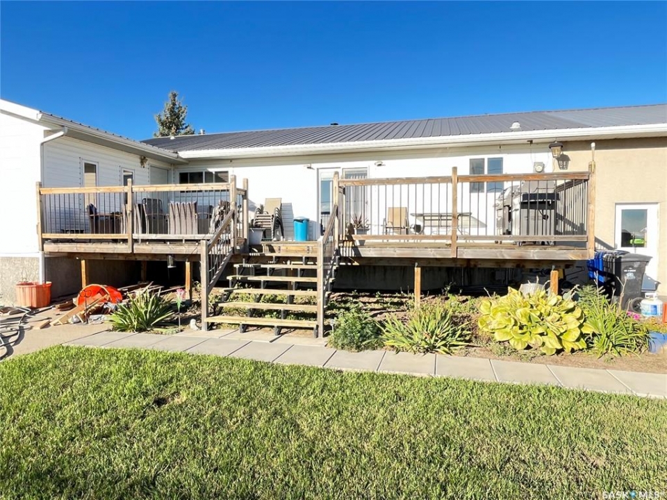 Original home was built in 1979 with 2 additions completed; one in 2002 and another in 2009. This home offers over 1600 square feet (on one level) for the growing or extended family. Currently 2 bedrooms and 2 bathrooms on the main floor, the bonus room is being used as a wet bar but could be converted into a third upstairs bedroom if needed. A gorgeous sunroom has been added to the southeast corner of the house showing a beautiful view of Maple Creek's golf course and the Cypress Hills. There is also main floor laundry. This home offers numerous space for storage, crafting or family as the basement has 3 more bedrooms and 2 additional bathrooms. Being on a corner lot beside the Golf Course this home is conveniently located near Maple Creek's recreation facilities and is central between the schools. The massive east facing backyard is fully fenced and offers a comfortable deck, a garden area as well as a fire pit. With a mostly stucco exterior and metal roof there is little to no maintenance. The hot water tank was replaced in 2017 and the furnace in 2012. Call to book a tour.