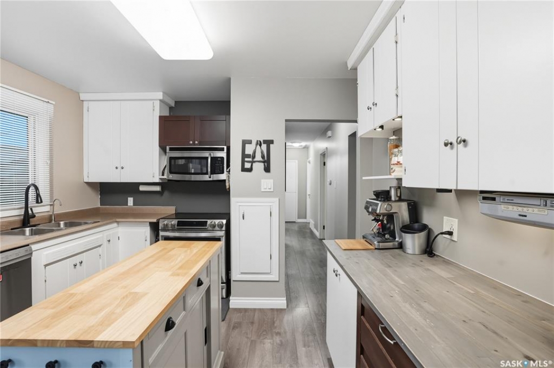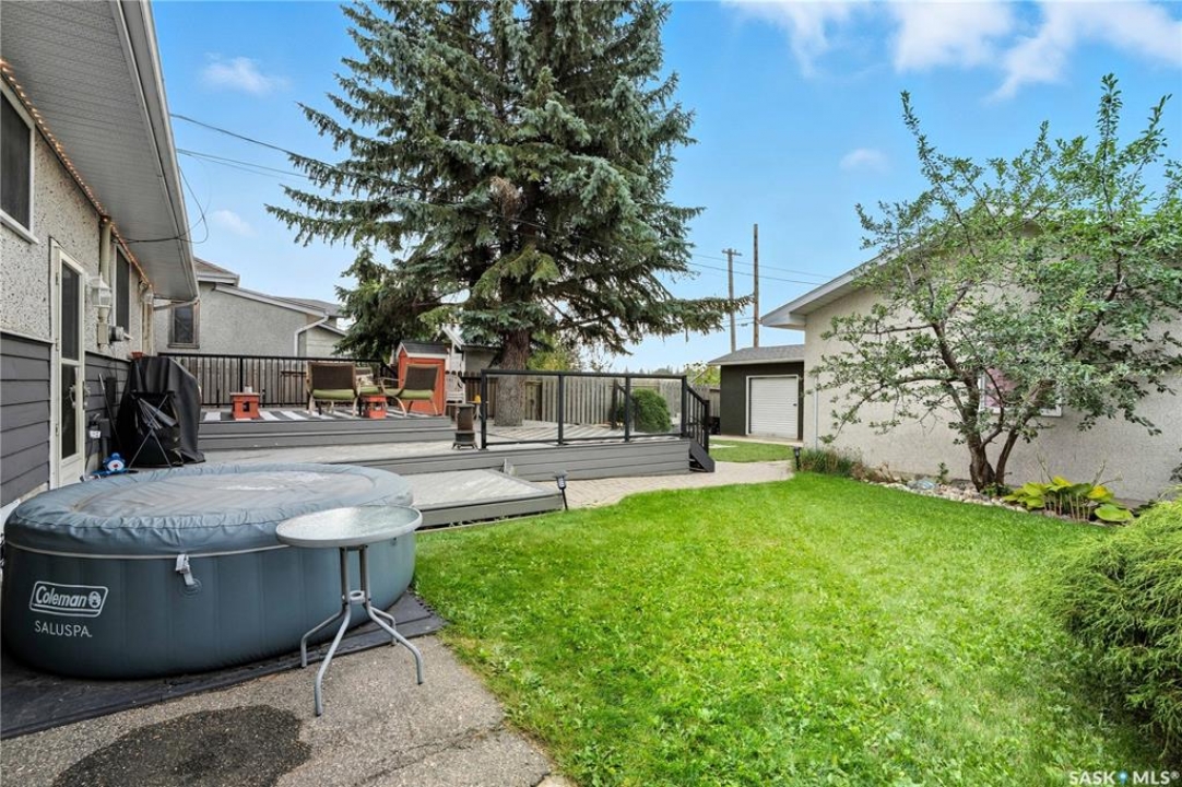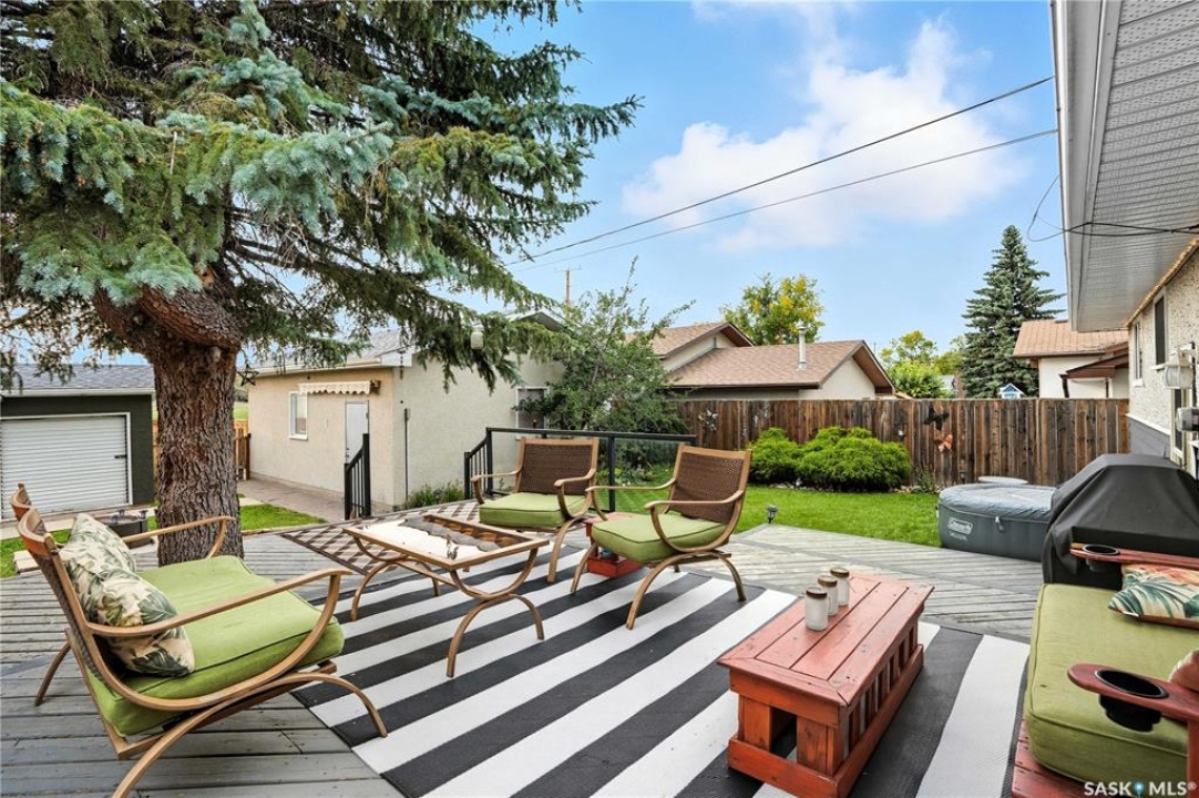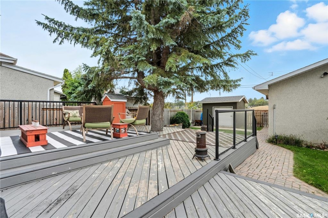 Welcome to 923 Avenue L North in the heart of Saskatoon's desirable Westmount neighborhood! Backing onto beautiful Pierre Radisson Park, this charming 1,004 sq. ft. home offers a private, park-like backyard with mature trees, a multi-tiered deck, and direct access to nature and nearby dog parks. Pride of ownership shows throughout, from the professionally finished hardwood floors and custom window coverings to the updated kitchen flooring and refreshed bathrooms featuring a relaxing whirlpool tub. Recent upgrades include new front and back doors, newer furnace and water heater, central air, and underground sprinklers. With four bedrooms, two bathrooms, and a cozy wood-burning fireplace downstairs, there's space for everyone. The large 22'x26' double detached garage with 10' ceilings is perfect for vehicles, storage, or a workshop. Appliances are included, and the 50-ft lot offers plenty of outdoor living space, all close to schools, grocery stores, and more. Presentation of offers Tuesday, October 7th at 4 pm.