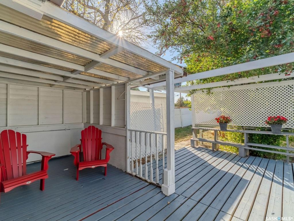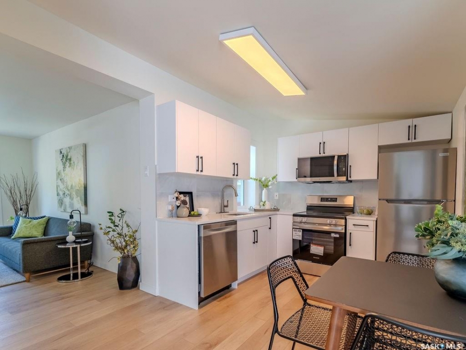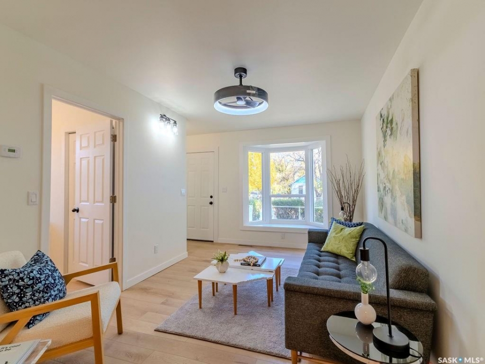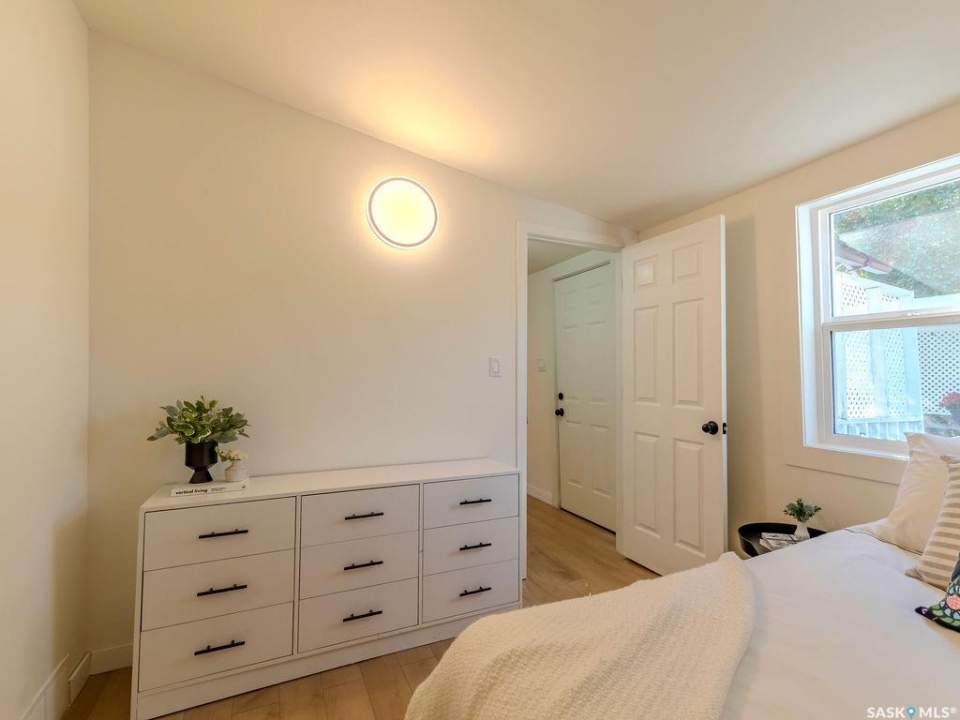Welcome to 1423 6th Ave N, a cozy renovated home on a desirable corner lot. This property features 2 bedrooms, 1 full bathroom, and a bright, sun-filled living space with large bay windows. The modern kitchen with new appliances adds both style and functionality. Located in a well-established neighborhood, this home offers excellent access to downtown, Circle Drive, the industrial area. Elementary schools, and the river—within walking distance. The mature backyard is a true highlight, with apple and cherry trees, grape vines, birdhouses, a deck with a built-in bench (partially enclosed), and plenty of room for outdoor enjoyment. With two-street access and a spacious yard, there's strong potential for a future garden suite or additional development check with city permits. This charming home is perfect for first-time buyers, investors, or anyone looking for a centrally located property with great possibilities. presentation offers on Oct 5 @ 3: 00pm