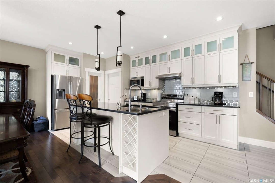 Welcome to 5221 Canuck Crescent, a beautifully maintained two-storey home in the family-friendly neighbourhood of Harbour Landing. Built in 2013, this 2,150 sq. ft. property offers a thoughtful layout, quality finishes, and a fully developed basement with a separate entry—providing excellent suite potential. The main floor features a bright living room with hardwood flooring and a cozy gas fireplace, an open dining area with access to the backyard deck, and a chef's kitchen complete with stainless steel appliances, granite counters, tile backsplash, a pantry, and a central island with wine storage. A convenient office/den and a 2-pc bathroom complete the main level. Upstairs, the spacious primary suite includes a walk-in closet and a luxurious 5-pc ensuite with dual sinks, soaker tub, and separate shower. Two additional bedrooms, a 4-pc bath, a second-floor laundry room, and a large bonus room provide plenty of space for family living. The fully finished basement offers a non-regulation suite with its own kitchen, living room, two bedrooms, a 4-pc bath, and separate laundry—ideal for extended family, guests, or rental income. Outside, enjoy a landscaped and fenced yard with deck, trees, and shrubs. The double attached garage is insulated, heated, and provides direct entry to the home, along with ample driveway parking. Located close to schools, parks, walking paths, shopping, and all Harbour Landing amenities, this home is move-in ready and offers exceptional value.