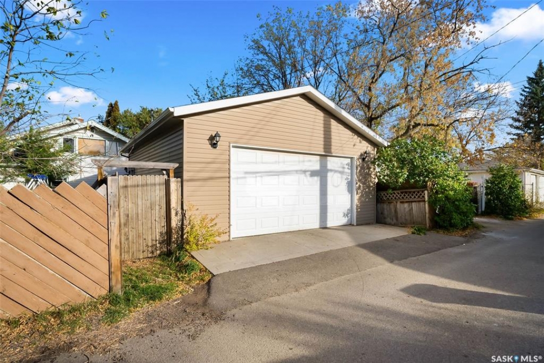 Welcome to this character filled 1,272 sq ft bungalow situated on a generous 6,246 sq ft corner lot. This home offers a fantastic layout with plenty of original charm including wood flooring and trim throughout the main level. Step inside the front porch and into a spacious living room and designated dining area. The bright and functional kitchen features ample cabinet space and loads of counters, making it ideal for the home cook. The main floor also boasts three well sized bedrooms and the main bathroom. The partially finished basement offers additional living space with a large family room, a fourth bedroom, another 3 piece bathroom, laundry area, and plenty of storage and utility space. This property also features both a single attached garage and a double detached garage with lane access. The detached garage is insulated, equipped with 100-amp electrical service, making it perfect for a workshop, extra storage, or parking. Enjoy the outdoors in the well treed, fully fenced backyard complete with a small patio space. Whether you're an investor looking to add to your rental portfolio or a family searching for a comfortable character home, 1400 Queen Street is a fantastic opportunity. Don't miss out!