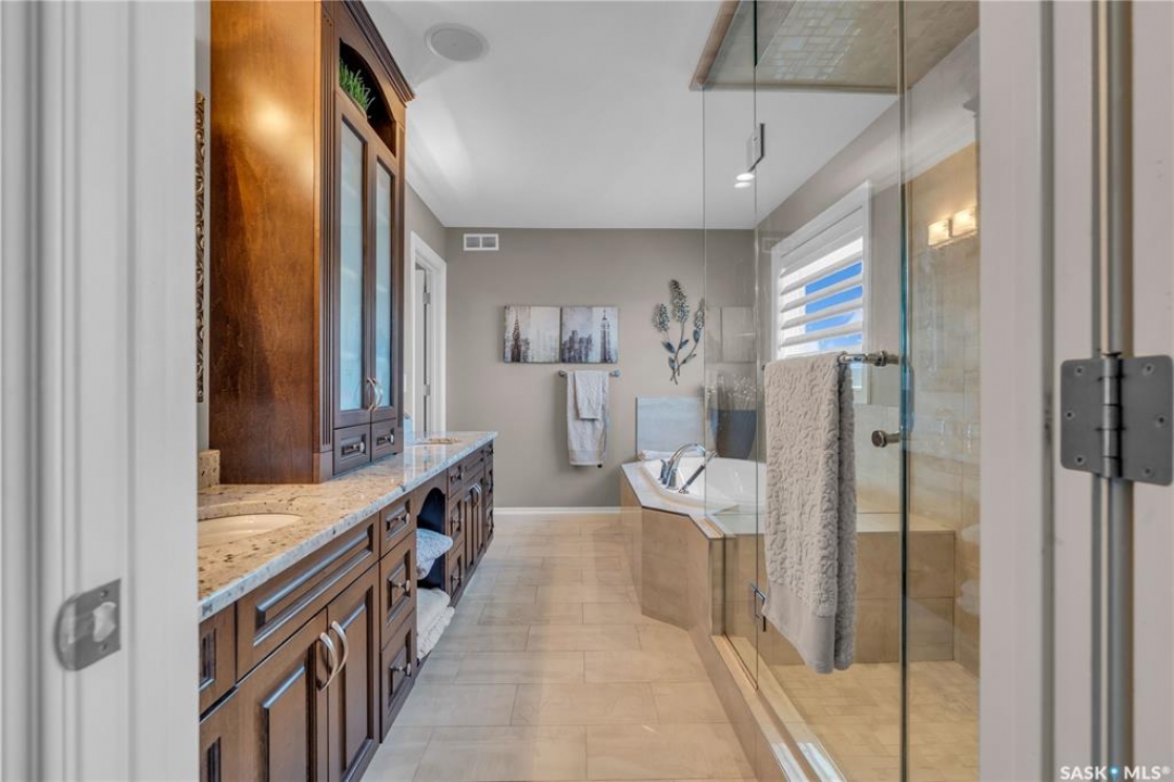 Discover the perfect blend of comfort, style, and convenience in this exceptional property, ideally situated in a highly sought-after cul-de-sac. Just a short stroll from the promenade in the new Parkridge extension and the vibrant Blairmore shopping center, you'll find all your essential amenities right at your fingertips. Enjoy charming walking paths, pocket parks, and close proximity to schools, making this neighborhood not only safe but peaceful and ideal for families. This custom-built, one-of-a-kind residence is nestled on a sprawling pie-shaped lot, featuring a stunning backyard oasis that's perfect for relaxation and entertainment. Dive into your very own sparkling, permanent above-ground heated pool, measuring an impressive 18x33, where you can bask in the sun on warm summer days. The backyard is beautifully landscaped with mature trees, lush shrubs, and vibrant perennials, creating a serene outdoor retreat. Step inside to find a thoughtfully designed interior that exudes warmth and charm. The open great room concept features 9ft ceilings, gas fireplace, and hardwood flooring. The chef's kitchen is a culinary delight, with custom features, island, walk in pantry, under-counter lighting illuminates the stunning marble tile backsplash that beautifully accentuates the granite countertops throughout the home, combining style with functionality. The main floor also features a den & 2pc bath. This home features 4 spacious bedrooms and 4 bathrooms, including a luxurious ensuite with a tiled shower equipped with four shower heads and his-and-her sinks. The master bedroom offers a walk-in closet. Comfort is paramount in this residence, with heated floors in the garage and basement, as well as tiled sections throughout the other levels. The basement serves as a perfect retreat, featuring spray-foamed exterior walls and a delightful wet bar. Embrace the outdoor enjoyment and tranquility of living in a family-friendly neighborhood. Your dream home awaits