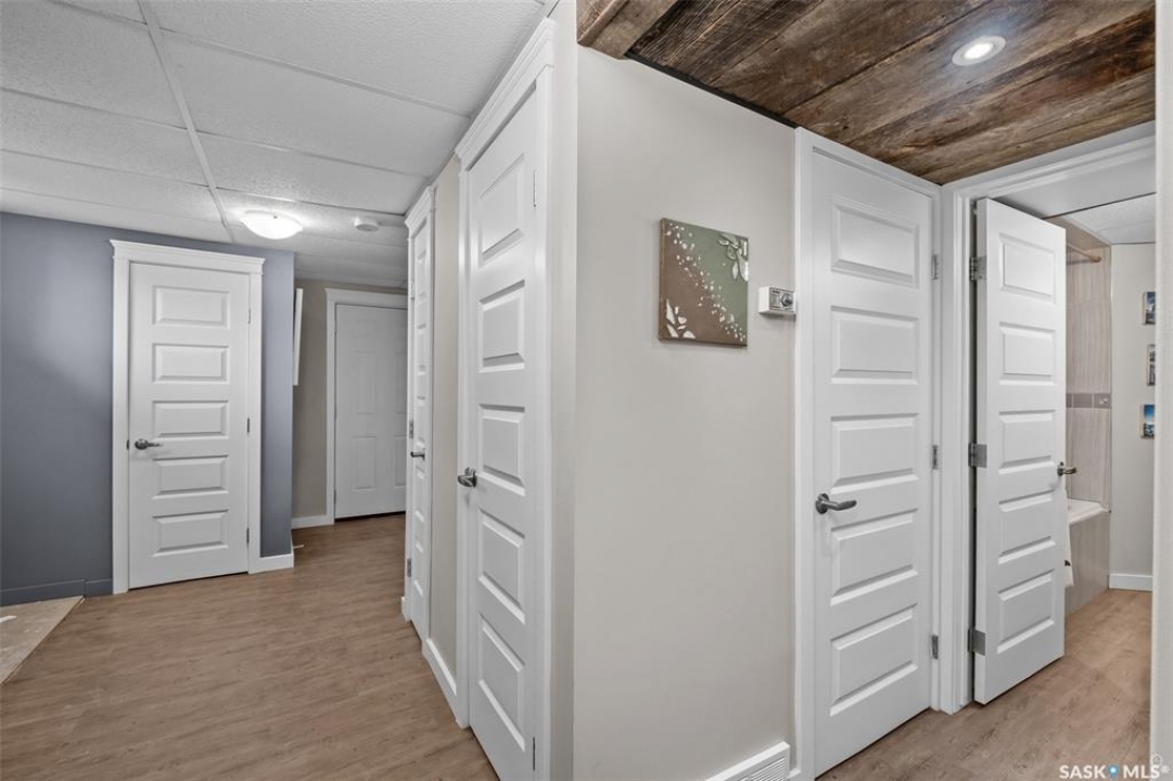 Welcome to this beautifully renovated home situated on an oversized, park-like corner lot in a highly desirable and established neighbourhood. Offering a perfect blend of modern upgrades and timeless charm, this turn-key property is ready for its next owners to move right in. Inside, the thoughtfully designed main floor features a custom kitchen with granite countertops, seamlessly open to the dining area and a bright living room anchored by a cozy wood-burning fireplace. Two spacious bedrooms and a luxurious 5-piece spa-inspired bathroom complete the main level. The lower level, with direct entry from the garage, is equally impressive. It offers two additional bedrooms—one with a private 2-piece ensuite—a large family room with an electric fireplace, a full bathroom with a 6-foot air-jet tub, and plenty of well-planned closets and storage. The upgrades extend throughout the home with newer electrical, plumbing, and modern finishes. Outdoor living is just as special: a brand-new front deck welcomes you, while the fully fenced backyard is extensively landscaped and features a fireplace area, RV parking, and plenty of space to enjoy. Nestled in a welcoming community with wonderful neighbours, this property truly has it all—style, comfort, and location.