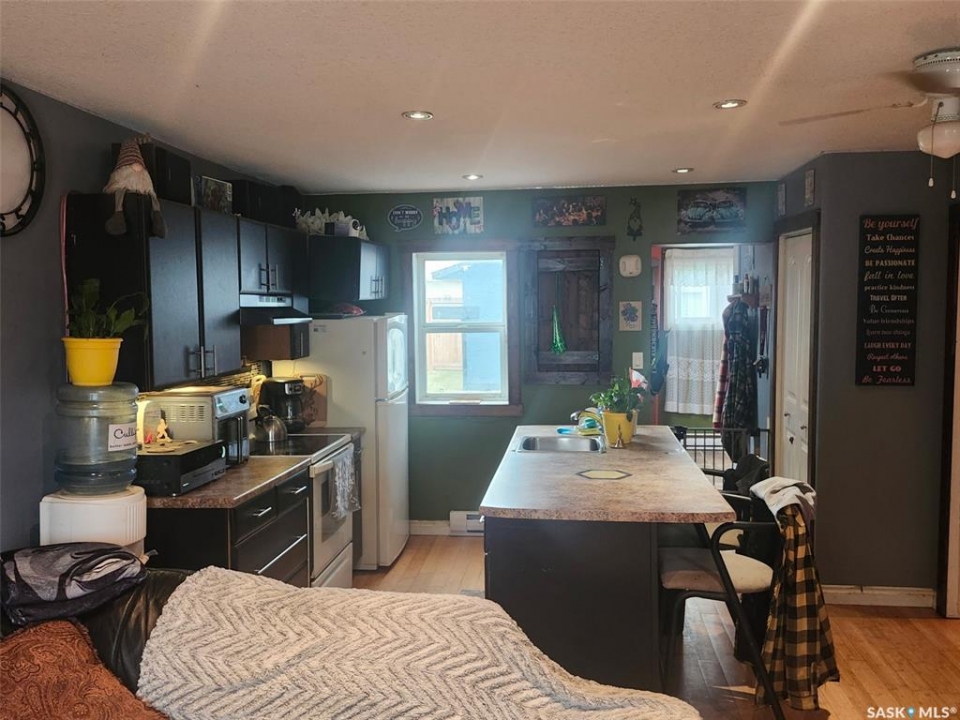 Welcome to this delightful and affordable 2-bedroom home in the friendly town of Maidstone, ideally situated just off the Yellowhead Highway — only 57 km east of Lloydminster and 84 km west of North Battleford. This inviting home has seen numerous upgrades over the years, including windows (2010), shingles (2019), and exterior doors. Most recently, the interior and exterior have been freshly painted, giving the home a clean, modern feel. A brand-new fence adds privacy and enhances the outdoor space, perfect for children, pets, or simply relaxing in your own backyard. Inside, you'll find beautiful hardwood floors running through the living room and both bedrooms. The kitchen is a standout with newer cabinetry, a generous island, and a built-in dishwasher — ideal for both everyday living and entertaining. The bathroom has been tastefully renovated with a stylish tub surround, updated vanity, and modern sink. A cozy wood-burning stove in the living area adds warmth and charm during the winter months, creating a welcoming space you'll love coming home to. Outside, enjoy a 22' x 22' insulated garage with an automatic door opener and a spacious back deck — perfect for BBQs or soaking up the sun. This well-maintained home with thoughtful updates won't last long. Contact your agent today to schedule a private showing!
