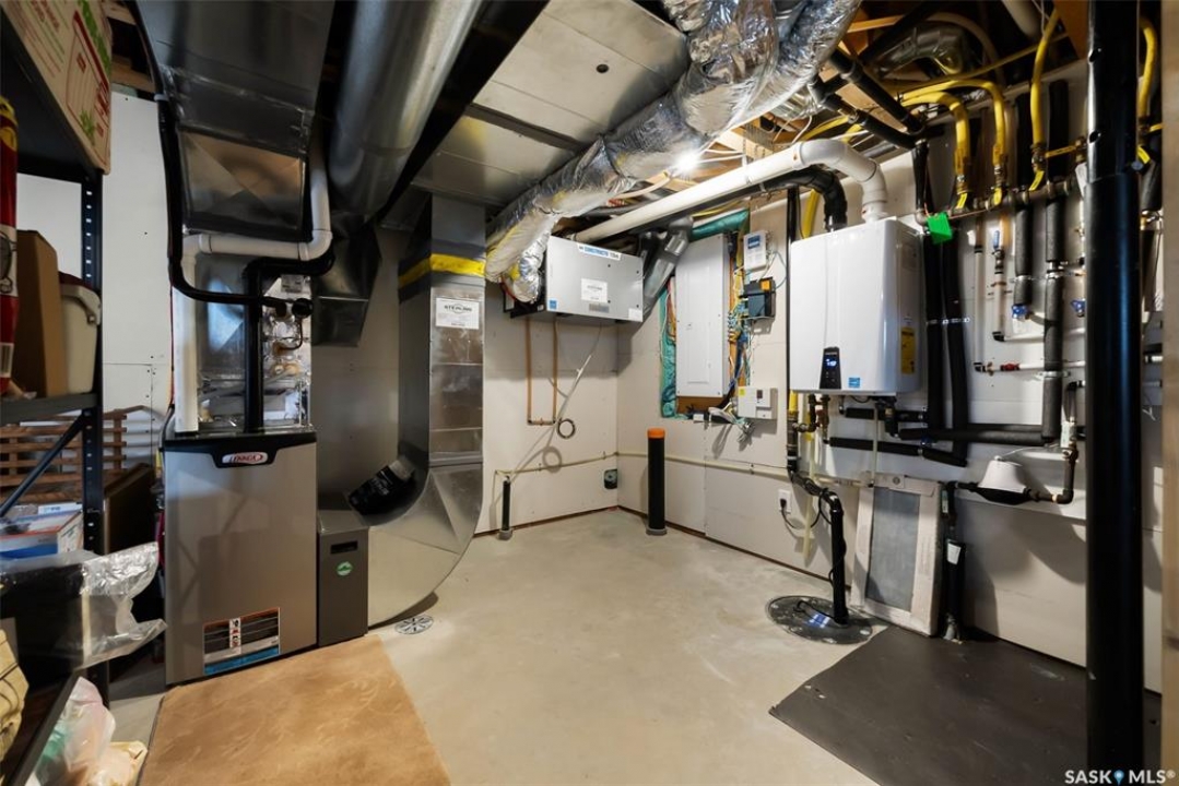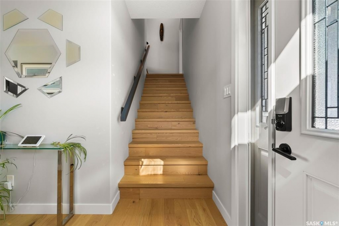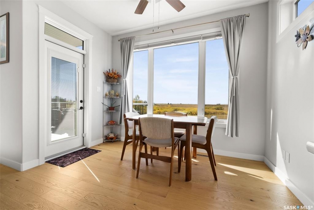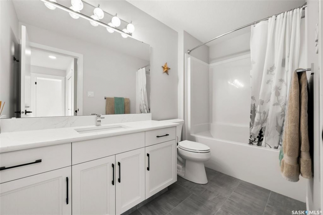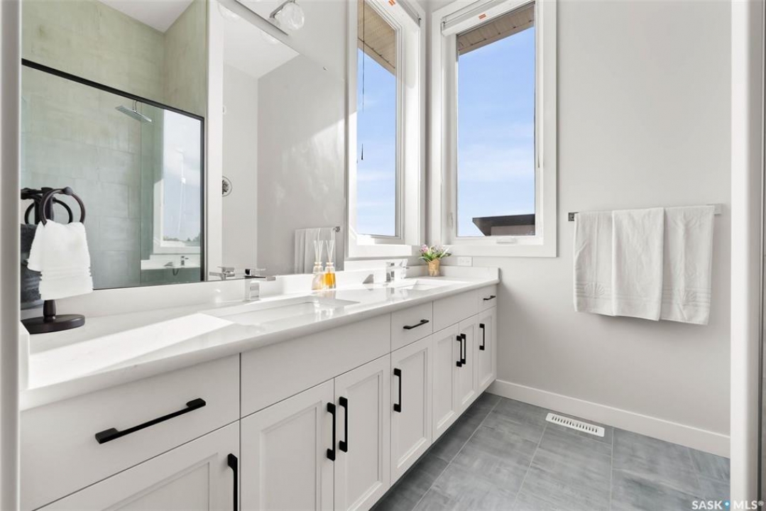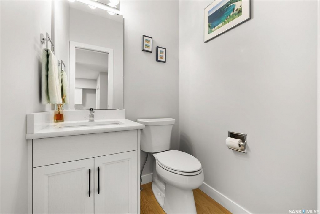 Welcome to 408 Hillside Drive in Pilot Butte! Built in 2020, this impressive 2-storey home offers over 1,700 sq. ft. of thoughtfully designed living space plus a triple attached garage. With modern finishes, premium upgrades, and a prairie backdrop, it's the perfect blend of style, comfort, and functionality. The main floor showcases an open-concept layout with engineered hardwood flooring and 2x6 construction on 16” centers. A bright living room centers around a remote-controlled gas fireplace with stone surround, while oversized windows fitted with Hunter Douglas top-down/bottom-up blinds capture expansive views. The chef's kitchen boasts quartz countertops, custom cabinetry with under-cabinet lighting, subway tile backsplash, stainless steel appliances including a granite sink, a large island, and walk-in pantry. The dining area opens onto a spacious deck, ideal for entertaining, while a powder room and mudroom with laundry complete this level. Upstairs, the primary suite impresses with 10' ceilings, a walk-in closet, and spa-inspired ensuite with dual sinks and custom tiled shower. Two additional bedrooms, a full bath, and a bonus room with balcony access offer versatility for family living. The basement is open for development, with exterior walls spray-foamed and drywalled—ready for your personal touch. Notable upgrades include a whole-home water filtration system, surge protection, central A/C, on-demand hot water, and hot/cold water taps in the garage. Curb appeal shines with a fully insulated triple garage, exposed aggregate driveway, and beautifully landscaped yard. The backyard retreat features underground sprinklers, raised garden beds, lush lawn, a composite deck, and tiled patio backing green space—perfect for enjoying Saskatchewan sunsets. This home combines quality construction, thoughtful upgrades, and an unbeatable Pilot Butte location. Truly move-in ready for its next proud owner.