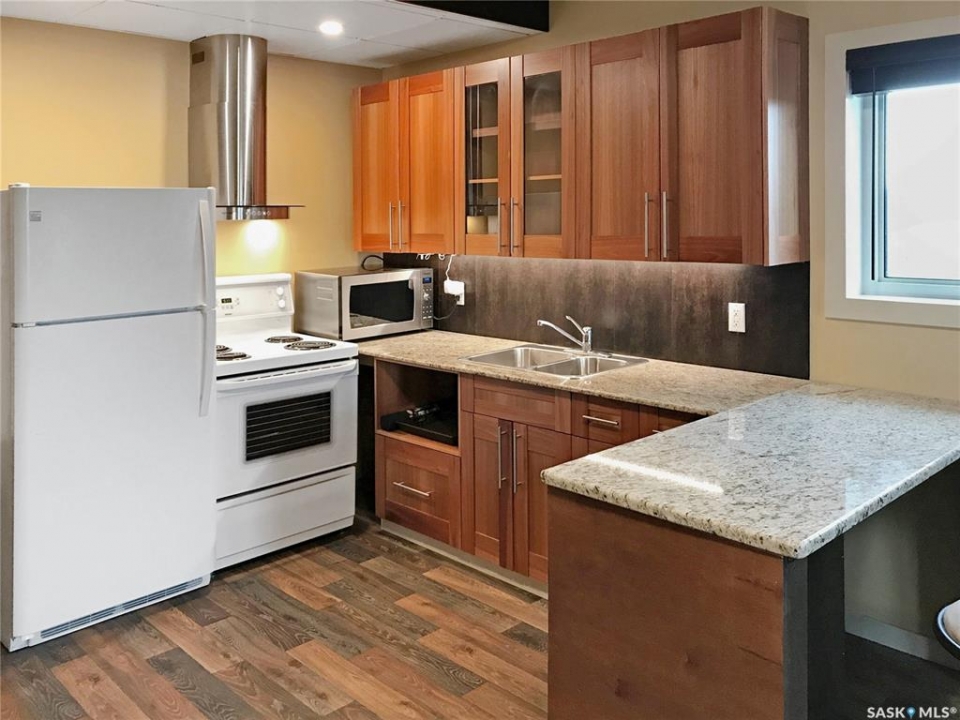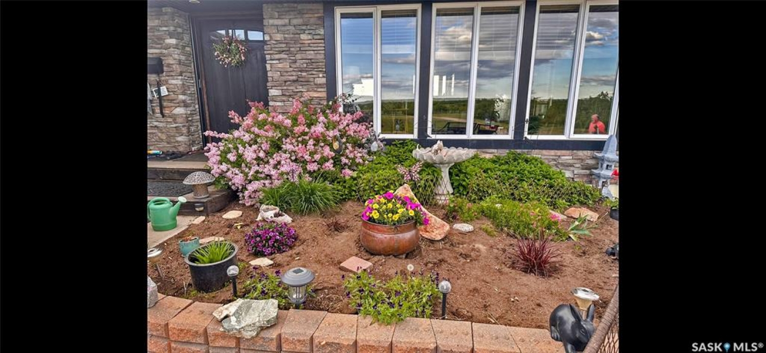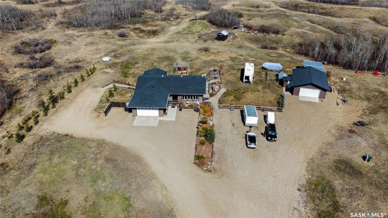Discover your own piece of paradise just 5 minutes from Battleford with this stunning 4-bedroom, 4-bathroom acreage, situated on 12.5 acres of countryside. This thoughtfully designed home offers modern comforts, incredible views, and endless space—inside and out—including a fully equipped basement suite with its own kitchen and laundry, ideal for extended family or rental potential. Step into a spacious foyer accented by custom tile flooring, leading into an open-concept living space filled with natural light. The living room features custom built-ins surrounding the entertainment area. The beautifully designed kitchen boasts custom cabinetry, sleek quartz countertops, and a large island with a built-in sink—providing space for effortless meal prep, casual dining, or entertaining at the island seating. The adjoining dining area offers direct access to a large deck—perfect for morning coffee or hosting gatherings while overlooking the backyard. The main floor includes three generous bedrooms, a dedicated office, and a stylish 4-piece family bathroom with slate tile flooring. The primary suite is a true retreat, featuring custom closet cabinetry, a 3-piece ensuite with a beautifully tiled shower, and private deck access. The fully developed walkout basement offers a spacious rec room, an additional 4-piece bathroom, convenient access to your hot tub, and a self-contained suite for guests, family, or rental income. This home is built for year-round comfort with in-floor heating, central air conditioning, and a durable ICF foundation for energy efficiency and peace of mind. Additional highlights include a double attached garage, a large shop for extra storage or projects, and plenty of room to enjoy acreage living at its finest. If you're looking for privacy, space, and modern living just minutes from town—this property delivers it all. Call today to arrange your private viewing and experience the lifestyle this acreage has to offer!