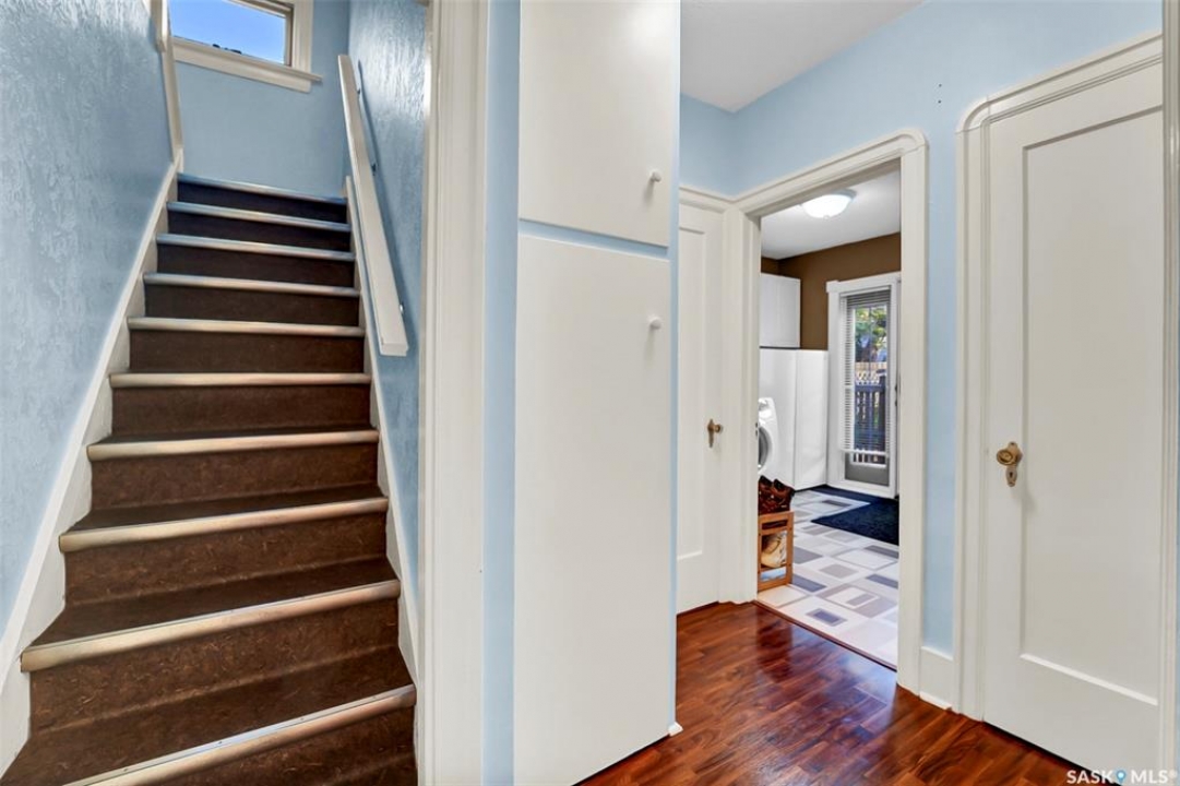 Welcoming investors and home ownership to this beautifully updated 1 � story home in Buena Vista! From the moment you step inside, you'll feel the perfect balance of modern updates and original character.Charming details such as arched doorways, original moldings, and ceiling accents set the tone, while the bright living room with its gorgeous original fireplace opens seamlessly into the spacious dining room, complete with built-in cabinets and serving area. The galley-style kitchen is both stylish and functional, featuring stainless steel appliances, white cabinetry, and a unique backsplash design. A large main-floor bedroom offers comfort and convenience. Practicality shines with the generous mudroom, complete with locker-style storage, and a laundry room located off the back entry with plenty of space for sorting and folding. Upstairs, you'll find two spacious bright bedrooms with charming sloped ceilings. The basement offers an LEGAL Suite , including a cozy family room, two additional large bedrooms, and a 3-piece bath. Step outside to enjoy the private backyard—perfect for relaxing, BBQs, or entertaining—with both deck and patio spaces, garage, 2 parking spots for both tenants and owner and one in the front for easy convenience. Located in one of Saskatoon's most desirable areas, you'll be within walking distance to Broadway, the river, and downtown. This home truly has it all—character, updates, and an unbeatable location!