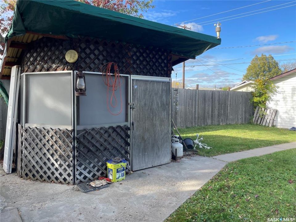 Charming 660 sq ft bungalow in East Flat, complete with a single detached garage and stucco exterior for lasting curb appeal. Inside you'll find a welcoming living and dining area, a functional kitchen with quality oak cabinets, and 2 bedrooms along with a three-piece bathroom featuring a Bathfitter shower. The basement offers a cozy family room, plenty of storage, laundry, and utility space. Features include central vac, a high-efficiency furnace, updated shingles, and appliances included. The backyard provides a spacious outdoor retreat to enjoy. Garage was built in 1983 according to city assessment.
