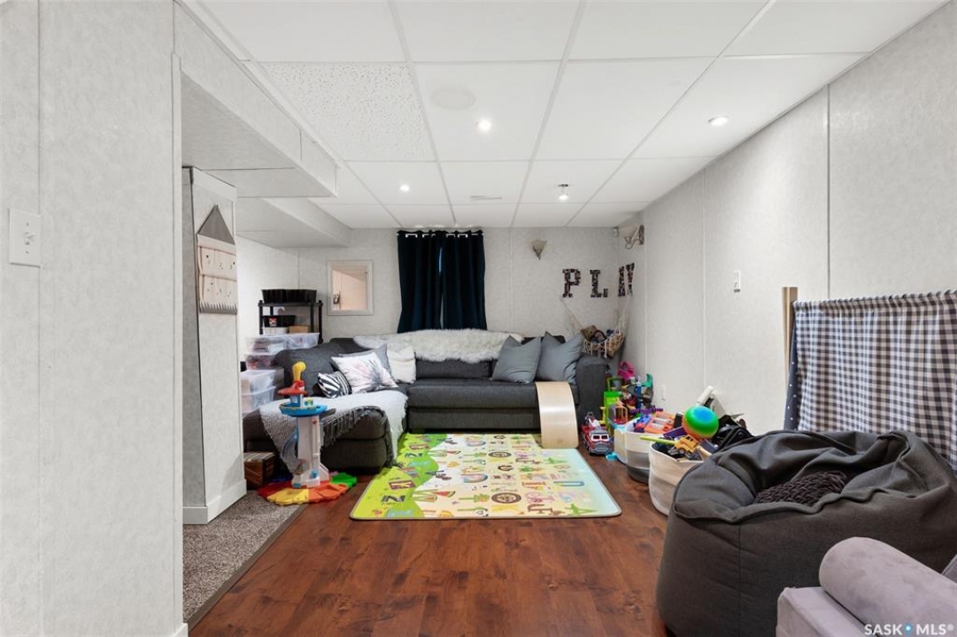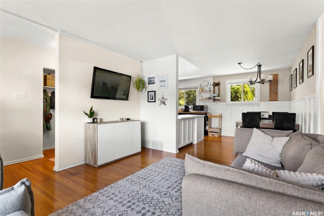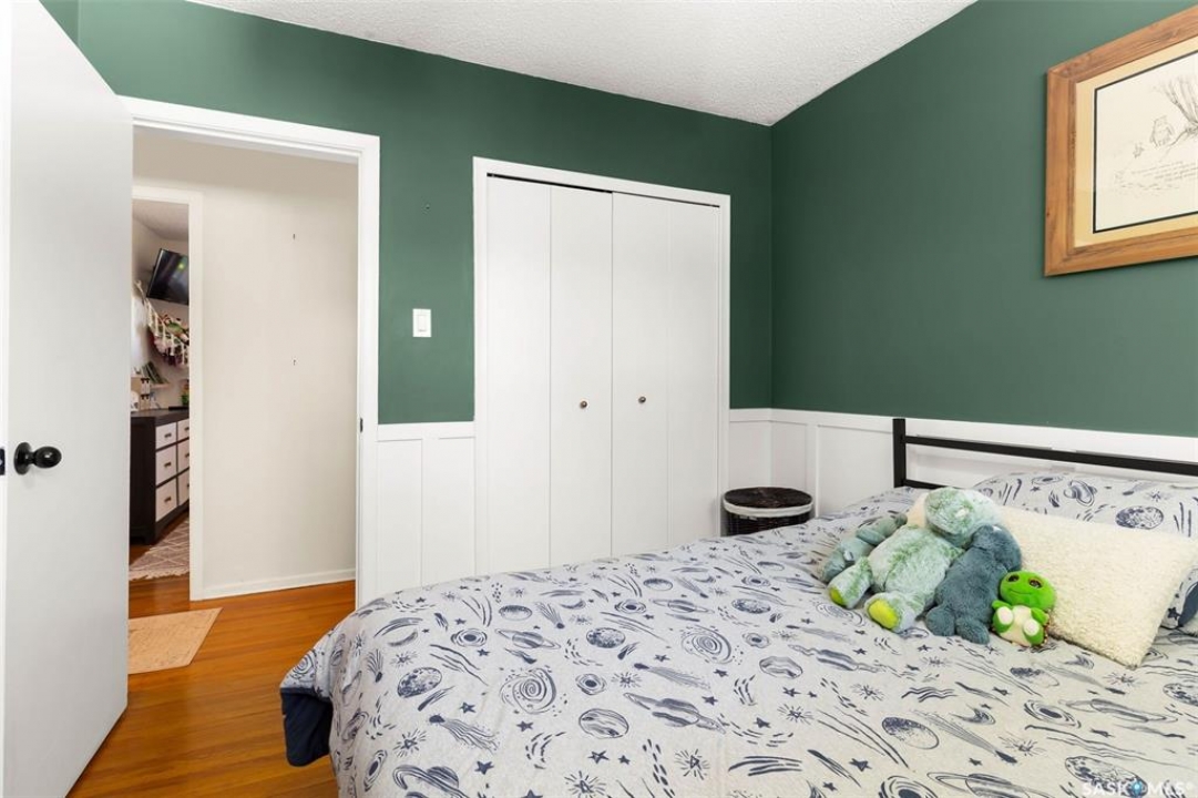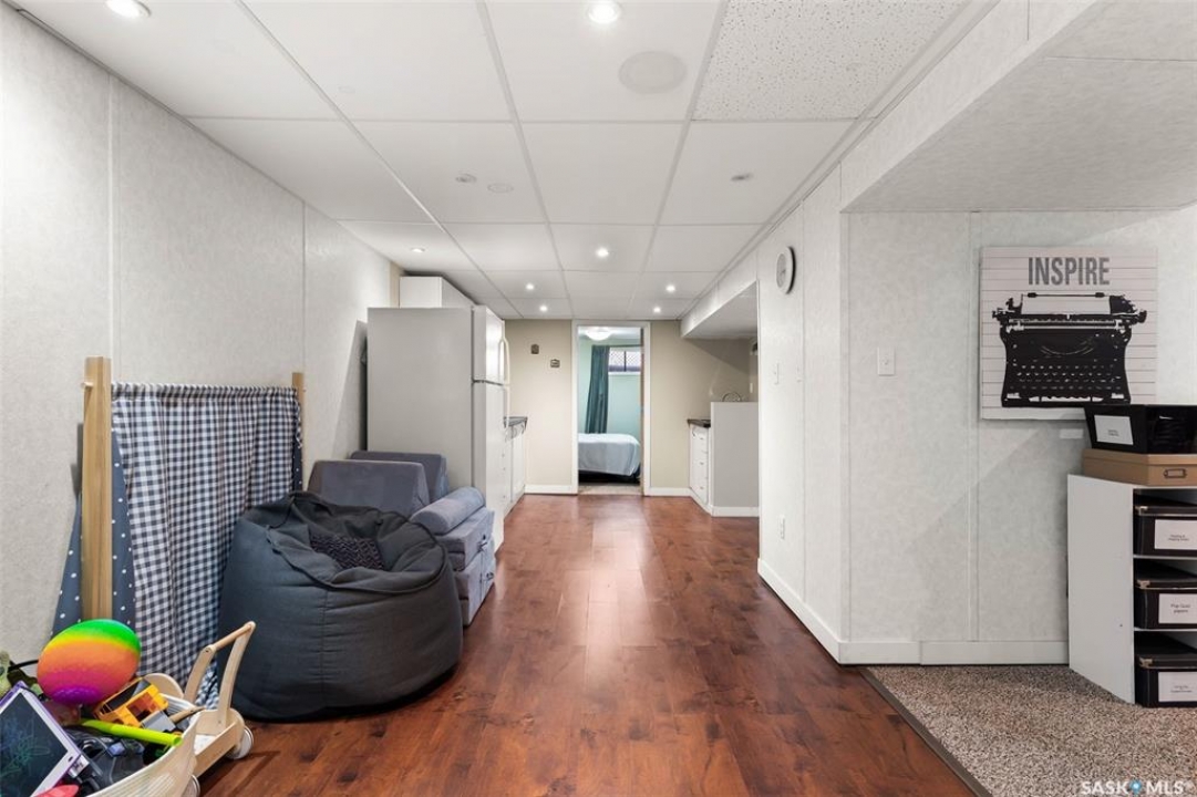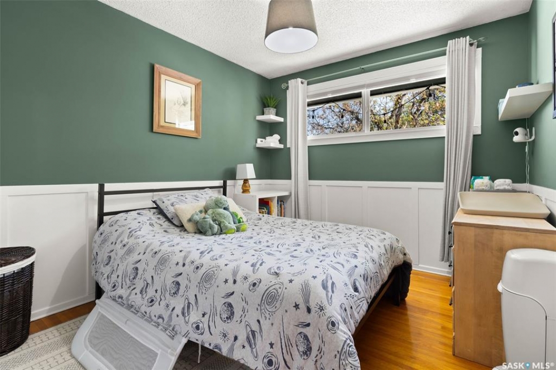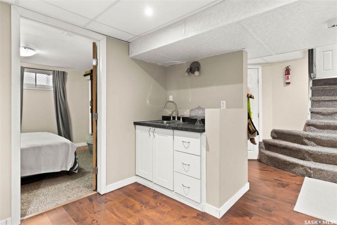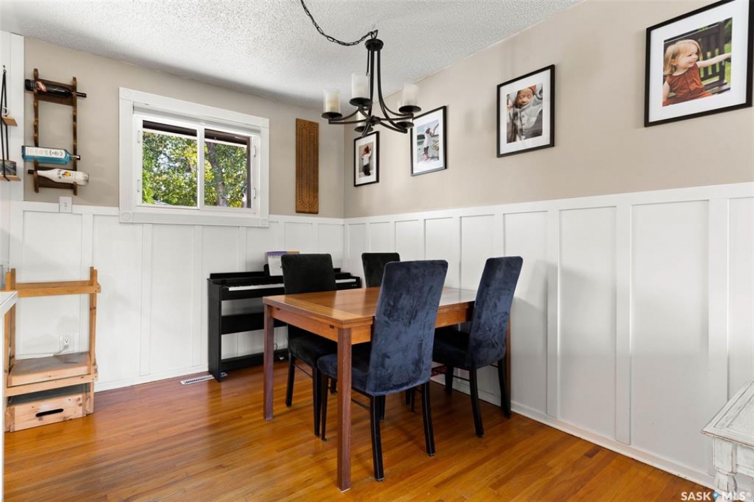 Welcome to this beautifully maintained bungalow in the heart of Coronation Park, offering a move-in ready lifestyle with the bonus of a mortgage helper basement suite. The main floor is perfect for families, featuring three spacious bedrooms and a large 5-piece bathroom. A bright and airy living room with oversized windows and gleaming hardwood floors sets the tone, while the kitchen impresses with ample cabinetry, stylish two-toned cabinets, stainless steel appliances, and durable vinyl tile flooring. Trendy feature paneling in the bedrooms adds a modern touch. The basement suite—accessible through a private back entrance—includes a full kitchen, generous dining and living space, a 3-piece bathroom, a spacious bedroom, (window may not meet egress standards) and shared laundry. For peace of mind, the lower level has been fully braced and spray foam insulated by the previous owner. Step outside to a dream backyard: fully fenced with patio seating, garden space, and room for a fire pit—perfect for family gatherings or summer entertaining. A single detached garage and driveway provide convenient parking. Recent updates adding value and peace of mind include: tub surround (2024), bathroom sink (2023), attic insulation (2024), back fence & front deck (2025), main floor fridge, stove & dishwasher (2022), chimney rebuild (2023), along with modern paint and light fixtures. All of this in a fantastic location, within walking distance to O'Neal High School, Thom Collegiate, and St. Peter's Elementary. This is a home that truly has it all—space, updates, a suite for extra income, and an unbeatable yard. Don't miss your chance to make it yours!