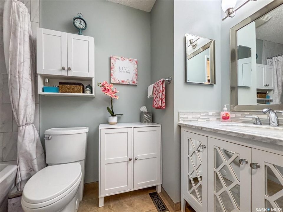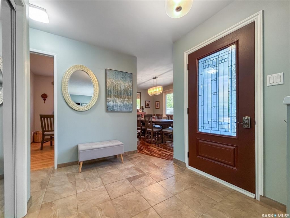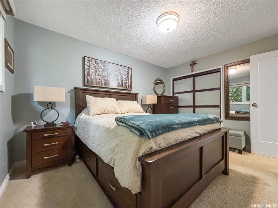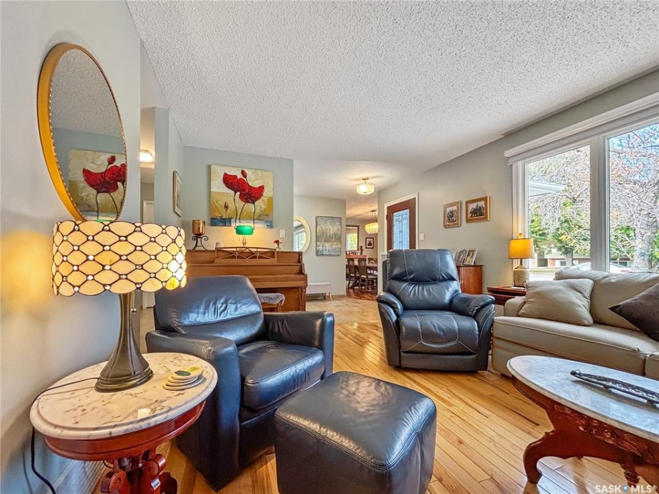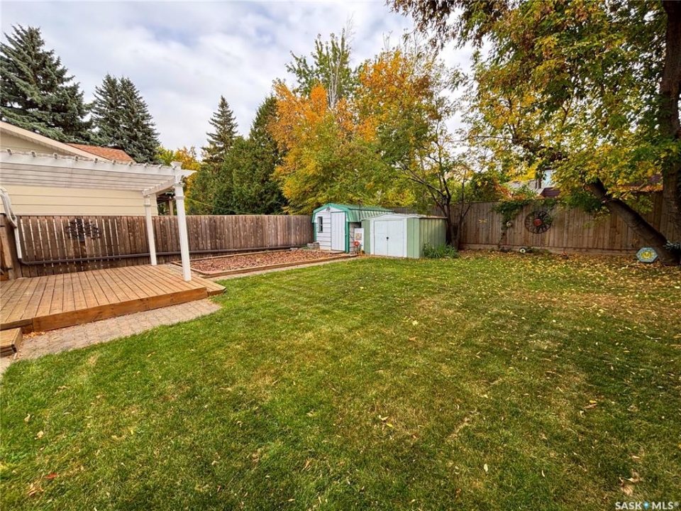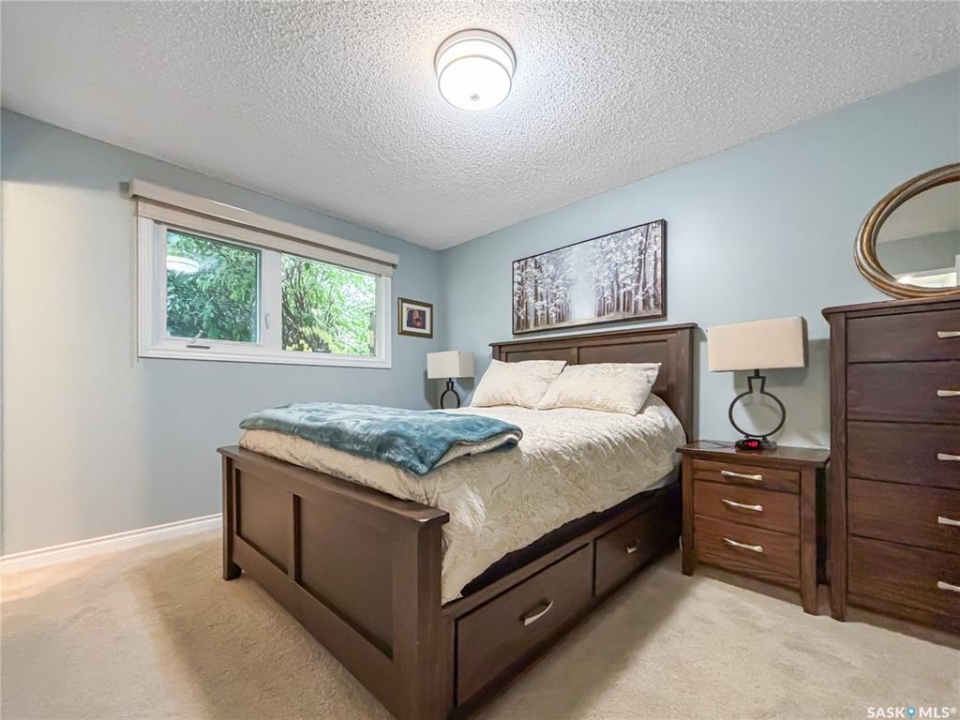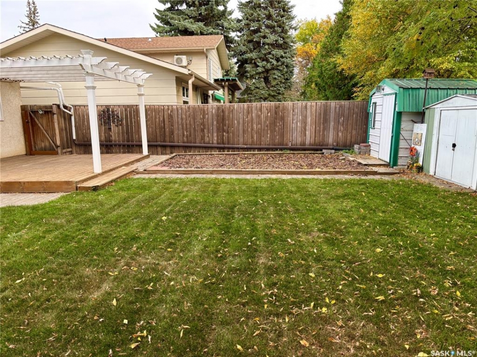 Immaculate 3 bedroom, 2 1/2 bath bungalow in a prime Lawson Heights location. This super clean home is just steps away from the Meewasin Trail and the South Saskatchewan River and features a formal dining room with acacia wood flooring, nice bright living room with hickory flooring and wall-mounted electric fireplace. Open & modern kitchen with eating area, microwave hood fan and an abundance of cupboard and counter space. The main floor bathroom has been renovated and there's a half bath off the master bedroom. The 2nd main flor bedroom features laminate flooring. Upgraded windows. Downstairs there's a spacious L-shaped family room and games room with bar area, the 3rd bedroom, a 3/4 bath, laundry, kitchen and storage. Central air and central vac. Beautiful back yard with mature trees, lots of grass area, storage sheds, and deck with pergola.