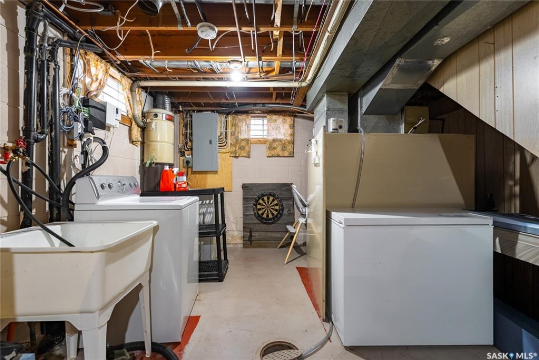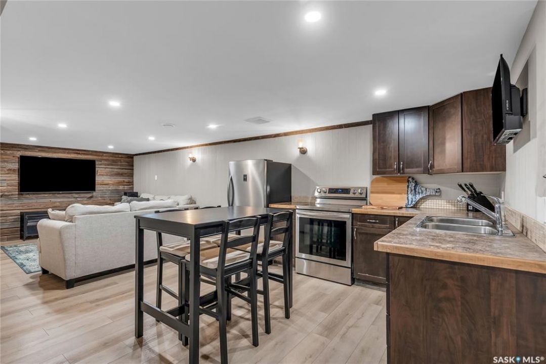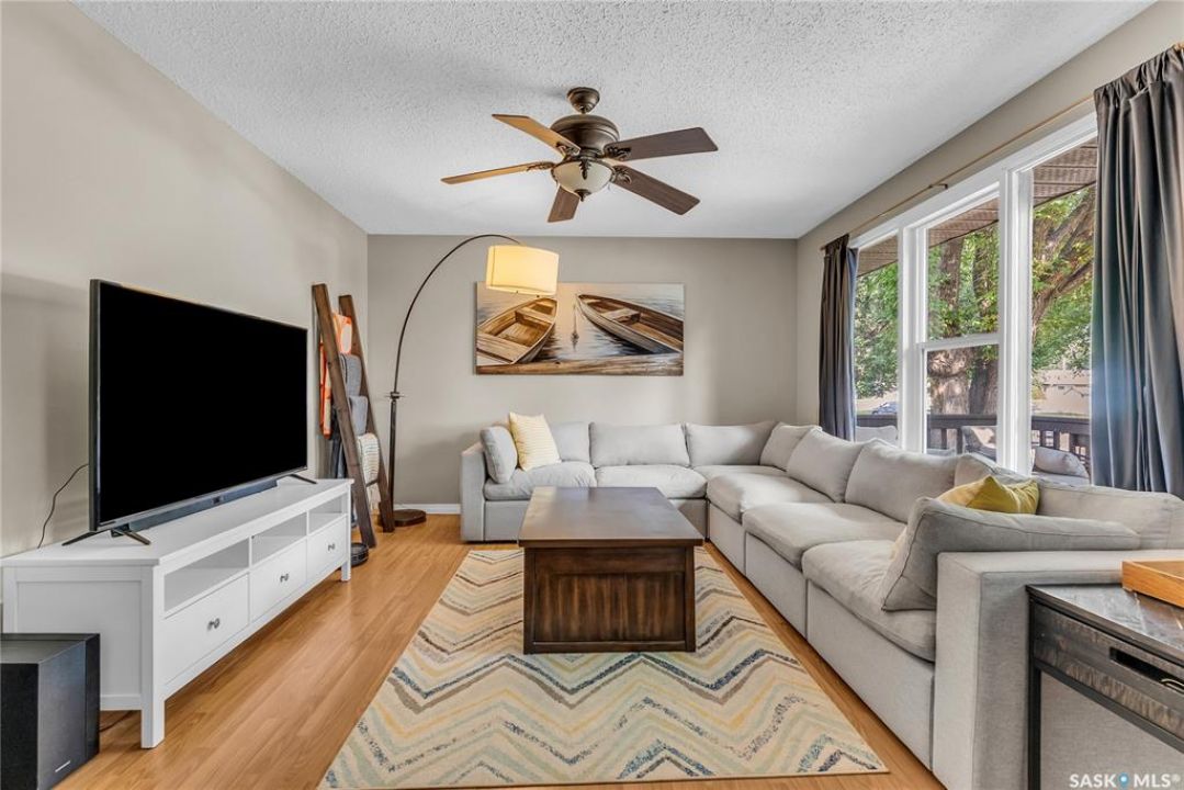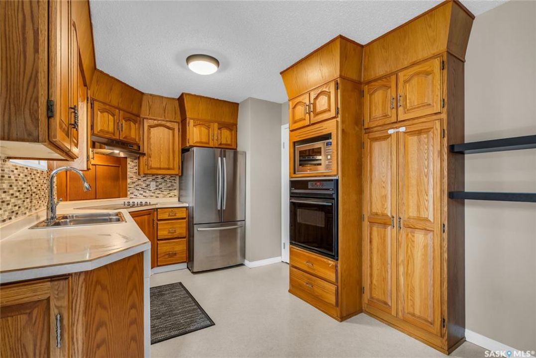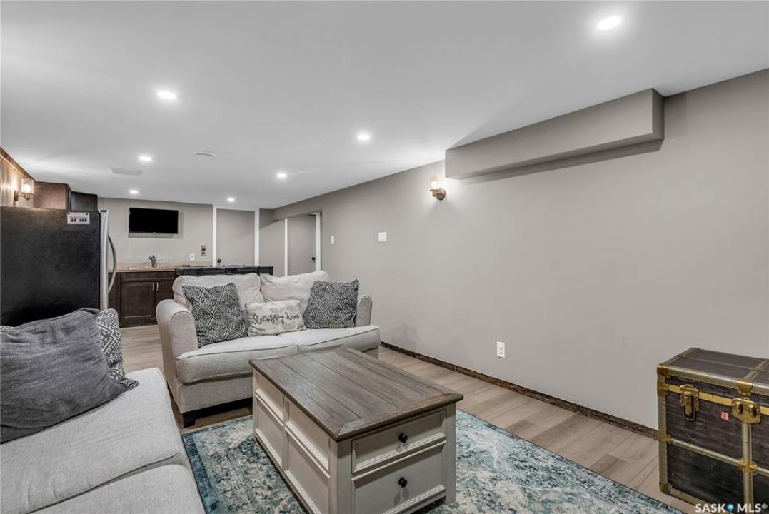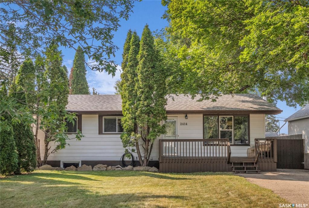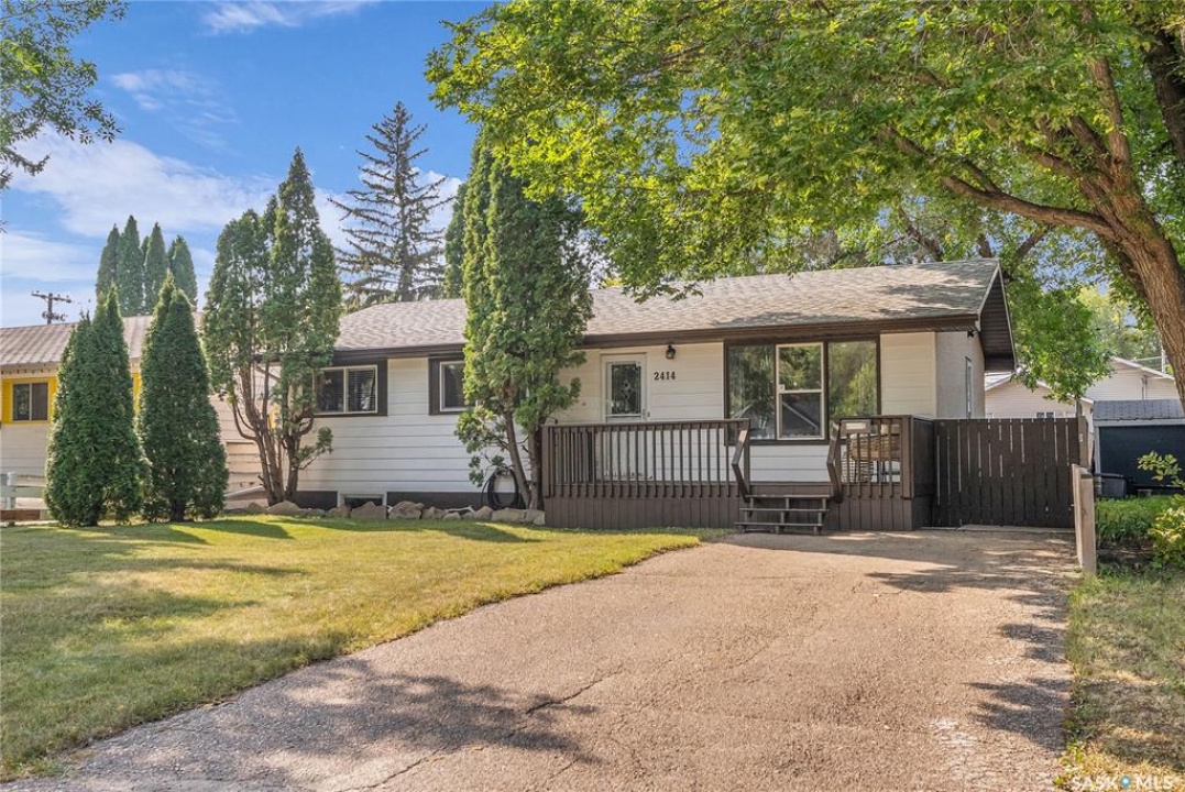 Welcome to 2414 McPherson Ave, located on a quiet, yet desirable street located in Avalon. With quick access to Circle Drive, downtown, South Saskatchewan river, and many local amenities. This 1,040 sq ft Bungalow greets you into a bright living room with laminate flooring that carries throughout the main floor. Coming around to your kitchen / dining with plenty of oak cabinets, custom backsplash, appliances including fridge, microwave, built-in oven, stovetop and dishwasher. Garden door leading you to your large back deck, with privacy wall perfect for entertaining! A spacious, king-accommodating primary bedroom, two additional bedrooms, and a modern 4-pc bath complete the main floor. Coming downstairs, you will find an open concept kitchenette / family room with a lovely wooden feature wall, recessed lighting, and newer vinyl flooring throughout. Two good sized bedrooms, a 3-pc bath with glass corner shower and tile surround, and a large storage area equipped with laundry complete your basement! Additional features of this home include a double detached garage, additional RV parking, lane access, separate access to basement, A/C, single driveway and front porch giving this home characteristic curb appeal! Must see home!