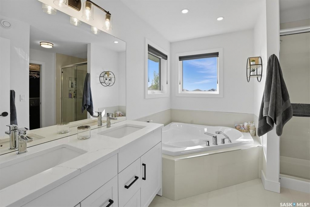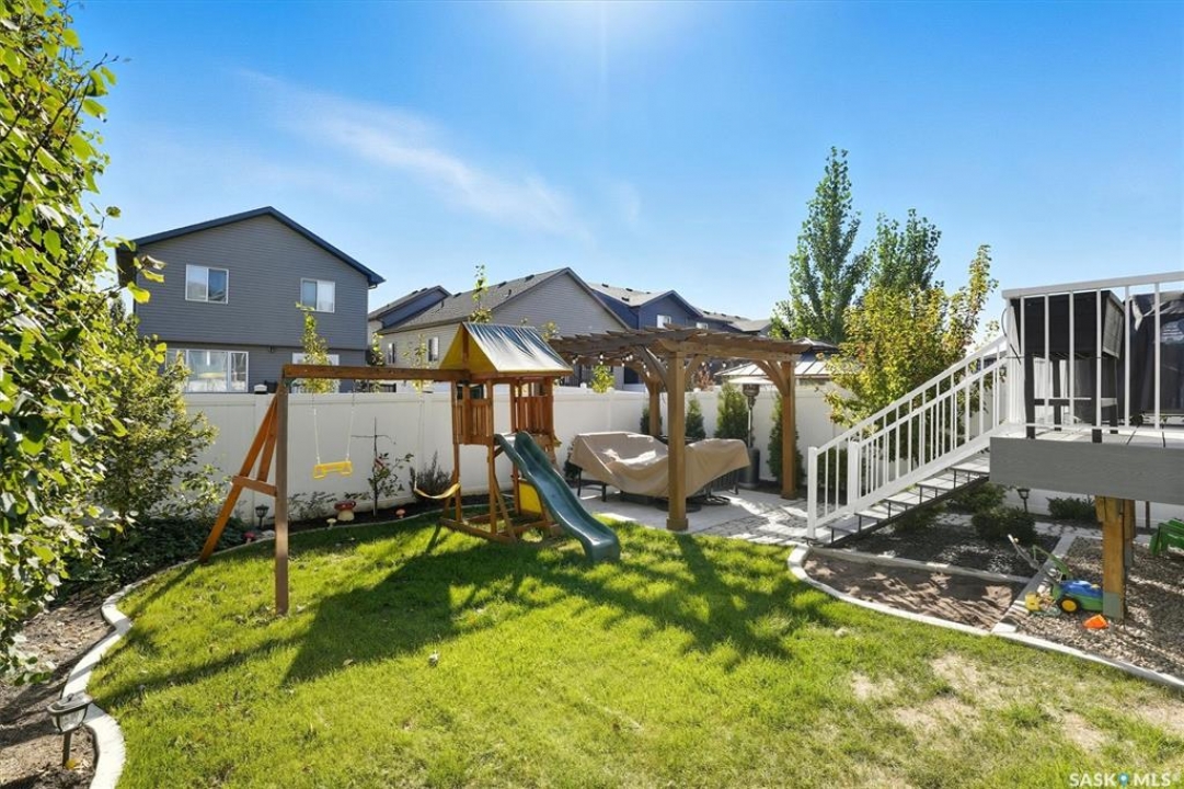 Welcome to this stunning home in the heart of Brighton, offering style, comfort, and thoughtful details throughout. Step inside to a spacious front entry with a large front closet, a handy two-piece bath, and direct access to the heated garage. From the entryway, you'll find a sliding door to the walk-through pantry with tons of storage and counterspace, leading to a beautiful yet highly functional kitchen with quartz countertops, shaker-style cabinetry with modern black hardware, stainless steel appliances including a convection oven with induction cooktop, and a large island with double undermount sink, seating and statement pendant lighting. The kitchen opens to a bright, cozy living room with a fireplace and mantle, and a spacious dining area with a stunning feature wall, large windows and direct access to the deck for easy outdoor entertaining. There is an office/flex space down the hall. Upstairs, you'll find 4 bedrooms, a large bonus room, a laundry room with extra storage, and a shared 4pc bath. The primary suite features a gorgeous feature wall, large windows, an impressive ensuite with dual sinks, corner tub, glass-door shower, toilet closet, and a generous walk-in closet. A second upstairs bedroom also includes a walk-in closet as well. The basement is made for entertaining with a striking wet bar featuring quartz counters, two-tone cabinetry, live-edge floating shelves with custom lighting, a hidden pull-out wine rack, and secret storage behind a bookcase. Enjoy movie nights in the family room with in-ceiling surround sound and a cozy fireplace. There is a 5th bedroom and another full bath down the hall. Outside, the yard is fully landscaped with fruit trees and shrubs, a patio with pergola, sandbox area, underground sprinklers with drip irrigation, and a custom pathway around the home. This home truly blends beauty, function, and location—walking distance to Brighton's many amenities and easy commutes in and out of the area.
