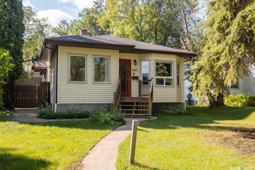 Inviting 4 bedroom and 2 bathroom bungalow located in the desirable West Hill neighbourhood! The main floor offers a large living room filled with natural light that is connected by an arched entryway to the dining area where large windows and a modern light fixture create a bright and welcoming space for family meals. Another arched entryway leads to the galleyway kitchen featuring white cabinetry, ample storage, a stylish backsplash and access to the south facing deck which is perfect for morning coffee in the sun. The main floor also includes a 4 piece bathroom with a beautifully tiled tub surround and 3 comfortable bedrooms. The fully finished basement offers a generous family room, a 4th bedroom, a 3-piece bathroom with a stand-up shower and a combined laundry/utility room. The backyard is surrounded by mature trees and has a large deck which is ideal for summer gatherings and a single detached garage adds extra convenience. Within walking distance to Shananigan's Bistro Coffee Shop, the West Hill Community Club, parks and both École St. Anne School and Arthur Pechey School. Act now and make this your next home!