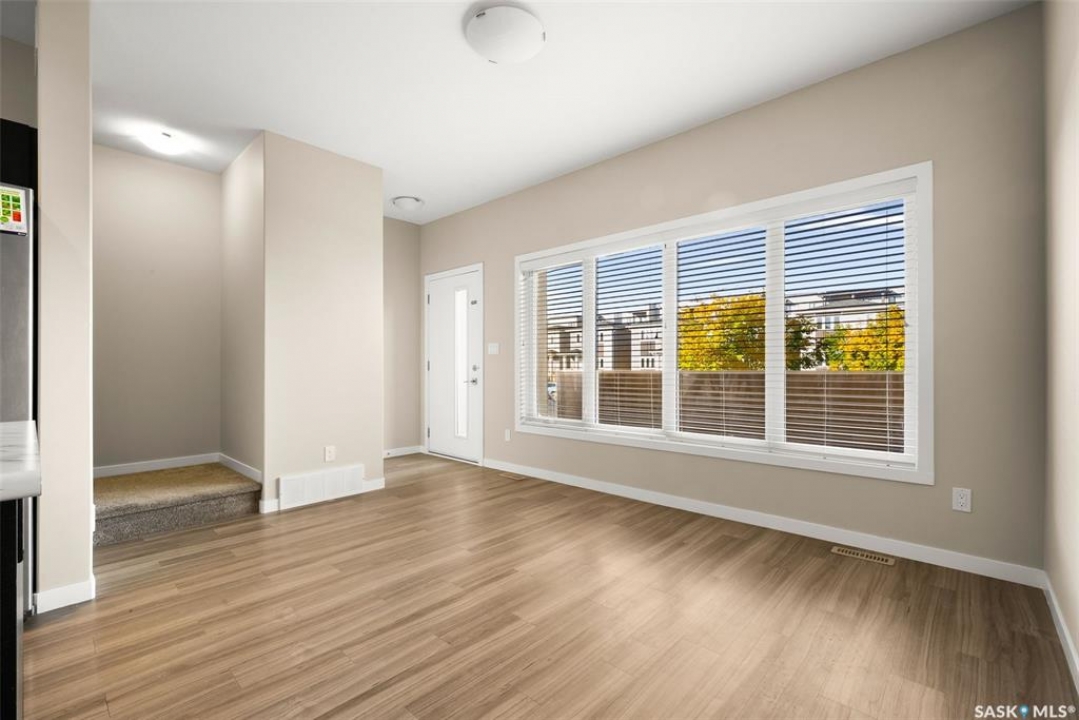Welcome to 3917 James Hill Road, a modern and inviting two-storey townhouse located in the heart of Harbour Landing. This well-maintained home offers a functional and stylish layout with contemporary finishes throughout. The open concept main floor features a bright living room with large windows, a dining area, and a well-appointed kitchen complete with stainless steel appliances, rich cabinetry, tiled backsplash, and convenient island. Upstairs, the primary bedroom includes a walk-in closet and direct access to a spacious 4-piece ensuite bathroom. A dedicated laundry area add convenience for busy households. The fully finished basement provides a versatile rec room and a 4-piece bathroom. Outdoor living is easy with a private front patio and access to nearby parks, schools, and shopping in one of Regina's most desirable family-friendly neighborhoods. Parking is located in the shared detached garage. This property is part of a self-managed condominium. While there are no monthly condo fees, each unit owner contributes annually to condominium insurance (typically $1,000–$1,200 per year). In addition, the monthly SaskPower bill for the shared garage is approximately $10 per unit. A beautiful move-in ready option with excellent value in Harbour Landing!