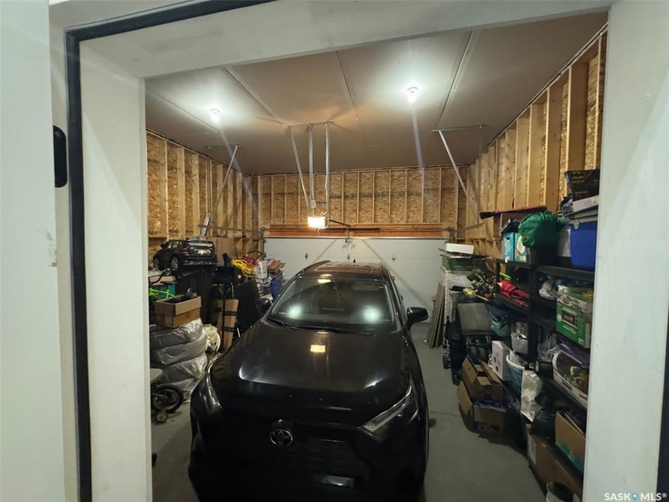 Welcome to 5400 E Boyer Bay! a beautifully maintained bungalow in the desirable Greens on Gardiner community. A front veranda adds warm curb appeal & welcomes you into a beautiful home where natural light fills each room. Built in 2022 with signature specs by Crawford Homes, this 1,337 sq ft home features a bright and functional open-concept layout with vaulted ceiling, perfect for modern living. The main floor showcases luxury vinyl plank flooring throughout and a seamless flow between the kitchen, dining, and living area with electric fireplace. The contemporary kitchen boasts sleek finishes, ample maple cabinetry, granite countertops, tile backsplash, and is natural gas–ready, offering flexibility for future stove upgrades. Stove, fridge and dishwasher can be operated with the help of wifi through app. Backyard can be accessed through kitchen and master bedroom. Three spacious bedrooms include a primary suite with a 4-piece ensuite and walk-in closet. Both the bathrooms have maple cabinets with granite countertops . The additional main bath is tastefully finished with vinyl flooring and modern fixtures. A double attached garage with direct entry provides ample parking and storage, with a natural gas line roughed-in for future heating upgrades, an exposed aggregate driveway, and a convenient side door for extra accessibility. Additionally CAT 5e network wiring throughout for modern connectivity. The basement is framed, insulated, and poly-ed, with rough-in plumbing and electrical in place—would not take much to complete with your own ideas. Fenced with a 12ft gate in the back that gives access to the back alley and opens to RV parking options. Situated on a 7,074 sq ft lot in a family-friendly neighborhood close to parks, walking paths, and schools, this home combines comfort, space, and an excellent location. A must-see!