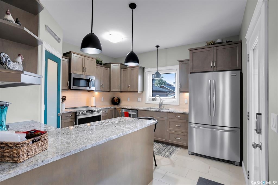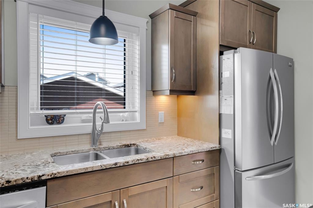 Impressive Curb Appeal and Exceptional Value! This beautifully maintained home offers a fully finished basement with a separate entrance—ideal for extended family or potential rental income. The basement includes a full kitchen, living room, bedroom, 3-piece bathroom, and private laundry. This is currently a non-conforming suite. A 24' x 24' detached garage is both insulated and heated with a hanging gas heater, perfect for year-round use. Enjoy outdoor living with a two-tiered deck, fully landscaped yard, and natural gas hookups for both a BBQ and fire table. Inside, the home showcases pride of ownership throughout. The primary bedroom features a walk-in closet and a private 3-piece ensuite. Both bathroom vanities and the kitchen are finished with sleek granite countertops. The kitchen also includes a corner pantry, backyard views, and direct access to the deck—ideal for entertaining. The open-concept layout includes a spacious dining area and a bright, welcoming living room. Relax on the covered front and back decks, perfect for enjoying the outdoors in any weather. Don't miss out on this fantastic property—schedule your showing today!