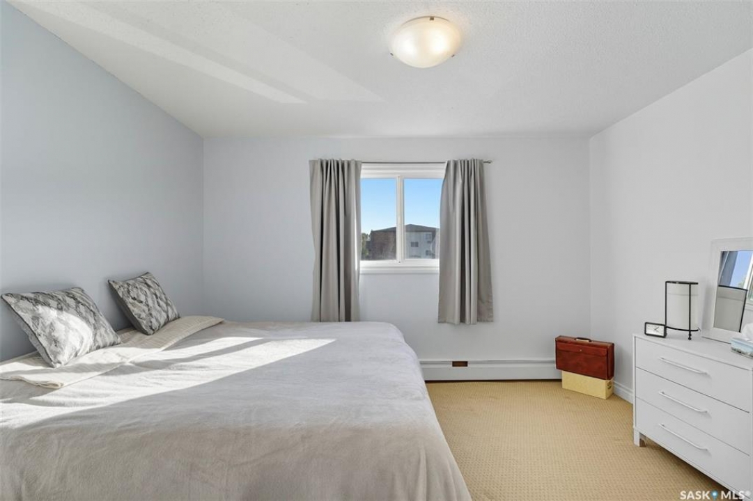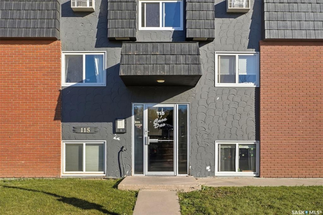 Welcome to Unit 9 – 115 Acadia Drive, beautifully RENOVATED 1-bedroom, 1-bathroom condo in the heart of West College Park. This bright, south-facing unit offers a spacious living room filled with natural light and access to a private balcony. The walk-through kitchen features updated maple cabinets, granite countertops, and newer appliances. A good-sized bedroom, 4-piece bathroom, and a convenient laundry/storage room with stackable washer and dryer complete this functional floor plan. Other upgrades and features include fresh paint (2023), new stove (2025), newer toilet and bathroom fan (2023), and wall-mounted A/C unit. The building itself has been well maintained with newer boiler system, windows, and roof. This second-level condo also comes with one electrified surface parking stall. Ideally located within walking distance to schools, parks, 8th Street shopping, and all amenities, with easy access to McKercher Drive and the University of Saskatchewan — a fantastic home in an unbeatable location!