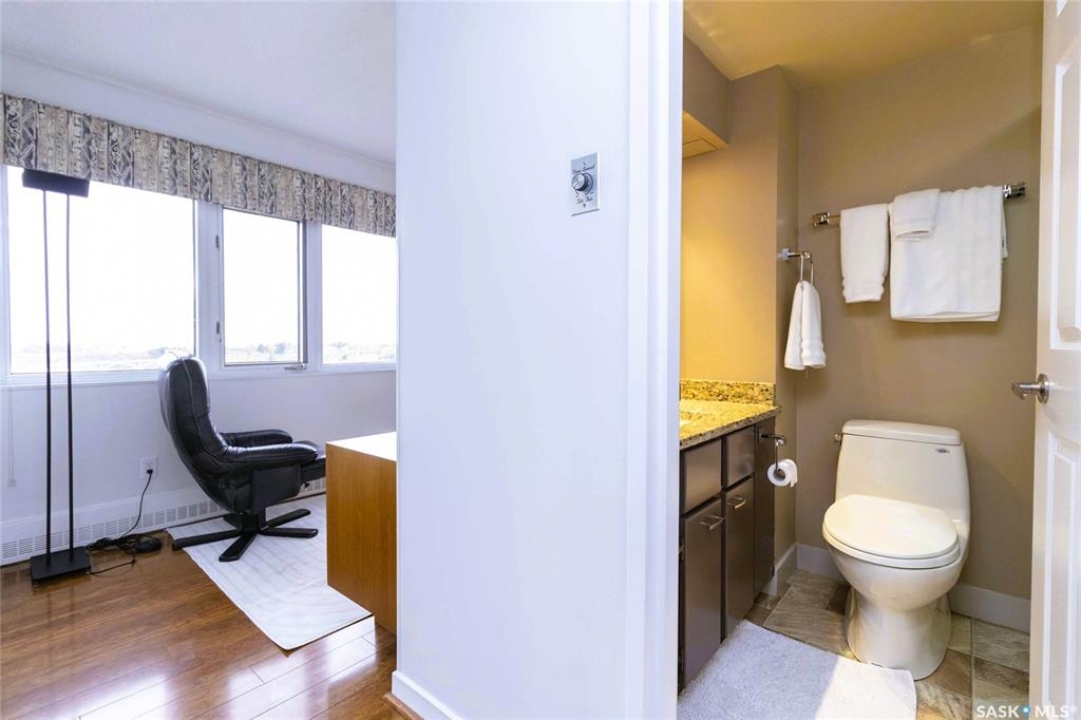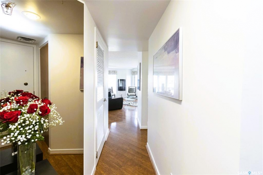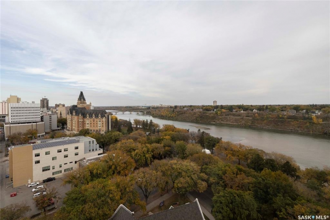 Welcome to 1780-424 Spadina Crescent East in the prestigious La Renaissance. This spacious 2-bedroom, 2-bathroom condominium is approachably priced at $449,900 and features 1,200 square feet of well-appointed living space – including a breakfast nook and formal dining room for entertaining. A true urban oasis, the condo features stunning views of the Bessborough Hotel and South Saskatchewan River from each room. The current owners have added tasteful upgrades throughout the space – from valances above each window, to a full wall of custom built-in cabinetry in the living room, to a clean burning electric fireplace that provides warmth and ambience in winter months. The primary bedroom features a spacious closet and ensuite bath. The second bedroom features a large, well-appointed walk-in closet that was custom designed for the space. Each 3-piece bathroom features high-end fixtures. In addition to walking trails and restaurants at your doorstep, the building amenities are second-to-none: Rogers cable and internet, a deeded parking spot, additional storage, plus a well-appointed fitness centre. And as an owner, you'll also enjoy complimentary access to the adjacent hotel – the Delta Downtown – with its pool and waterslide. If this sounds like your next home, contact any Saskatoon Realtor �