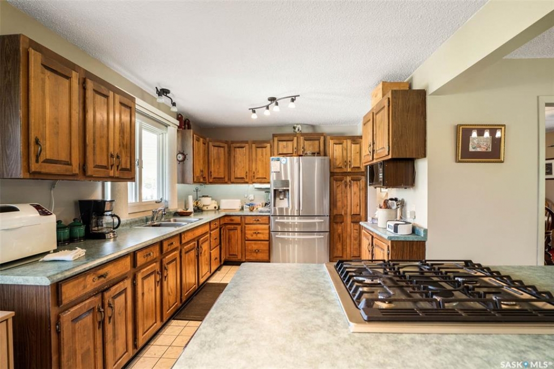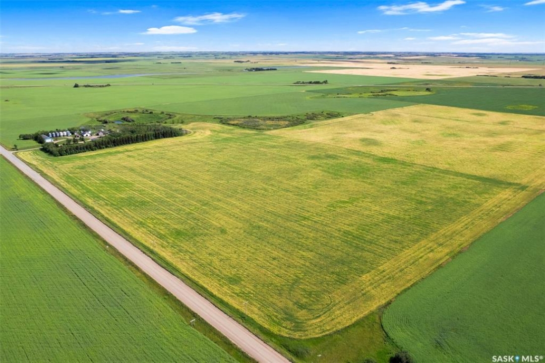 153.84 Acres with a Large Ranch Style Bungalow a Mature yard well Treed with a Park like setting. Only 1 mile from Aberdeen that features K-12 School Shopping A Rec Centre. The Farmyard Features a large Arch Rib Shop and outbuildings School Bus Available to driveway and has City Sourced water and additional well and Dugout .