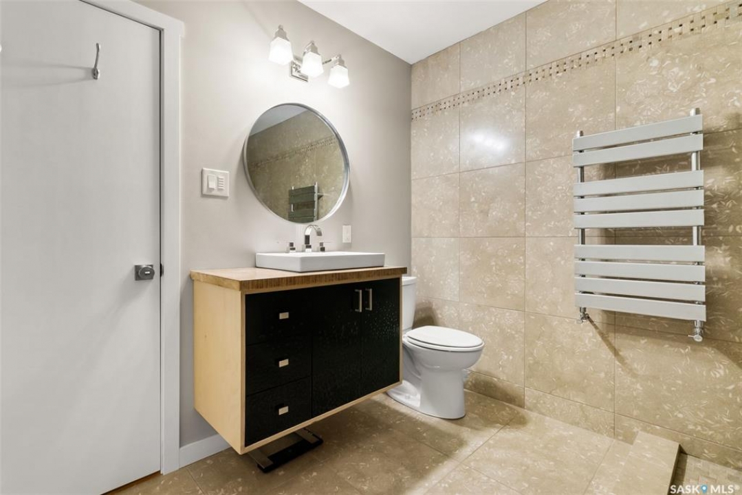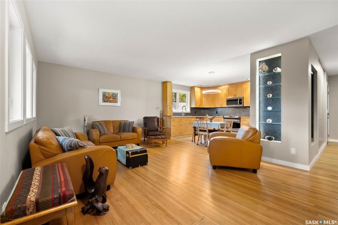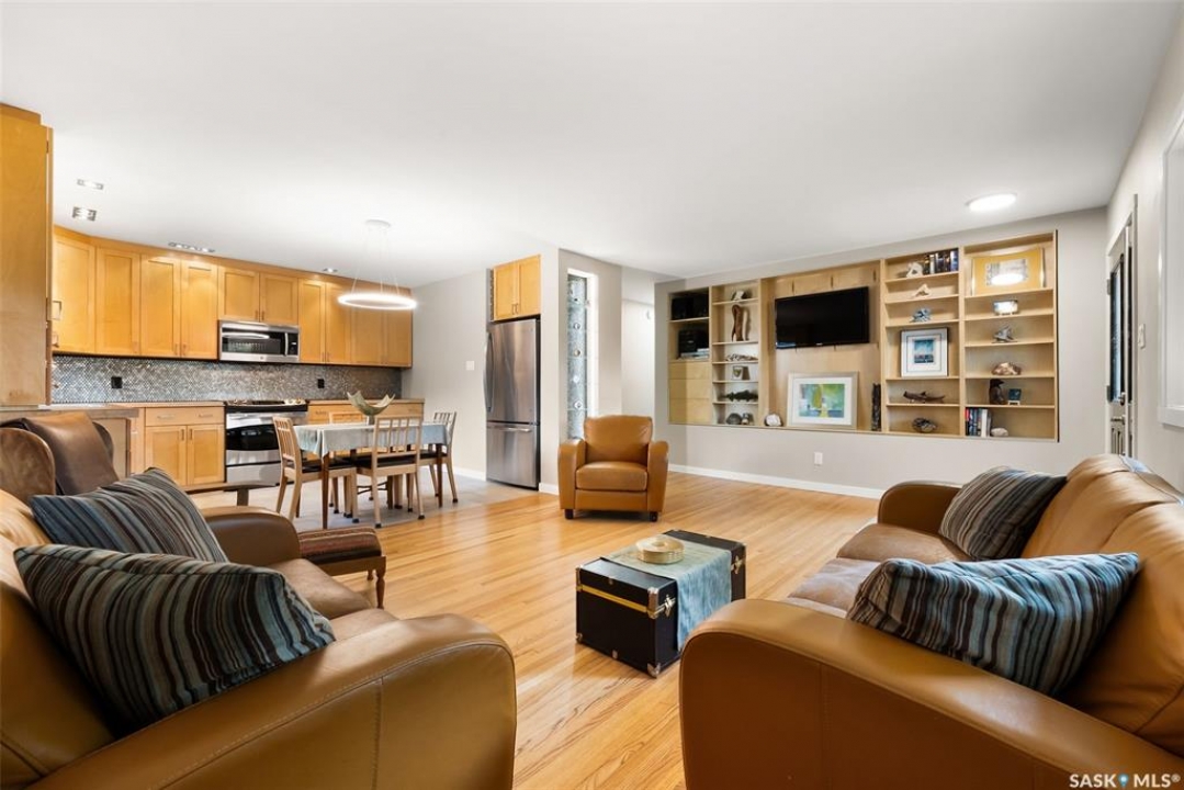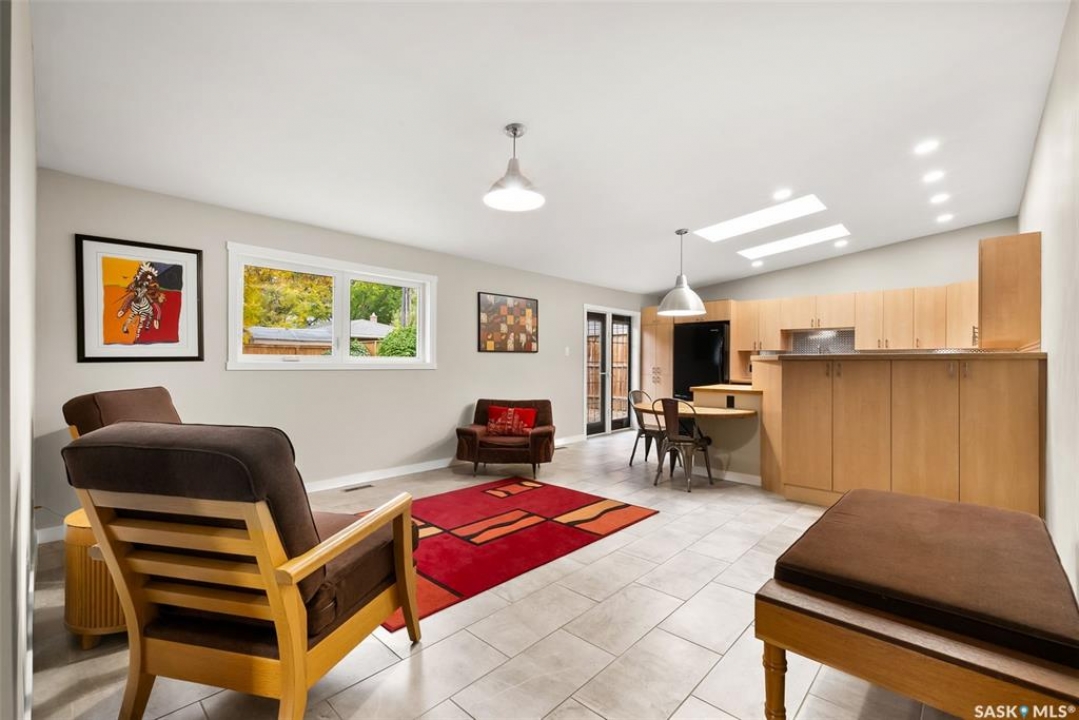 Welcome to 118 Langley Street—a beautifully renovated Hillsdale home just blocks from the University of Regina. Thoughtfully designed and extensively upgraded, this property offers exceptional versatility for families, investors, or anyone seeking a mortgage helper. Featuring two modern kitchens, seven bedrooms, and four bathrooms, this home is ideally suited for multi-family living or generating rental income, with the basement alone having previously rented for $3,200 per month. Home is heated entirely by in-floor heat divided into four zones and complemented by an HRV system (2012) and 200-amp electrical service. Inside, you'll find handcrafted built-ins and stunning woodwork by the owner, a skilled carpenter. The main floor features refinished hardwood, Benjamin Moore paint, a feature wall with custom shelving, and large PVC windows. The open-concept kitchen offers abundant cabinetry, stainless-steel appliances, and generous counter space. 3 bedrooms and a beautifully reno'd 4-piece bath complete the level, featuring limestone tile, a towel warmer, soaker tub, and custom floating vanity. Rear addition includes 2nd kitchen with butcher block counters, two skylights, a bright living area with built-ins, a 2-piece bath with washer/dryer, and a functional mudroom with storage. Fully redone basement offers a re-poured slab, interior weeping system, sump pump, and four bedrooms with two 3-piece baths. Enjoy a private landscaped yard with underground sprinklers and 24x26 heated garage (2013) used as a workshop with large windows and ample cabinetry. Acrylic stucco exterior (2023) with rigid insulation and updated PVC windows adds style and efficiency. Extensive upgrades include: sewer and backflow (2008), underground power (2009), insulation, windows, stucco (2010/2023), kitchen and boiler (2012), garage (2013), shingles (2011), limestone tile bath (2015), paving stone driveway (2023), appliances (2020), and more. Full list of features available! Ask your REALTOR �