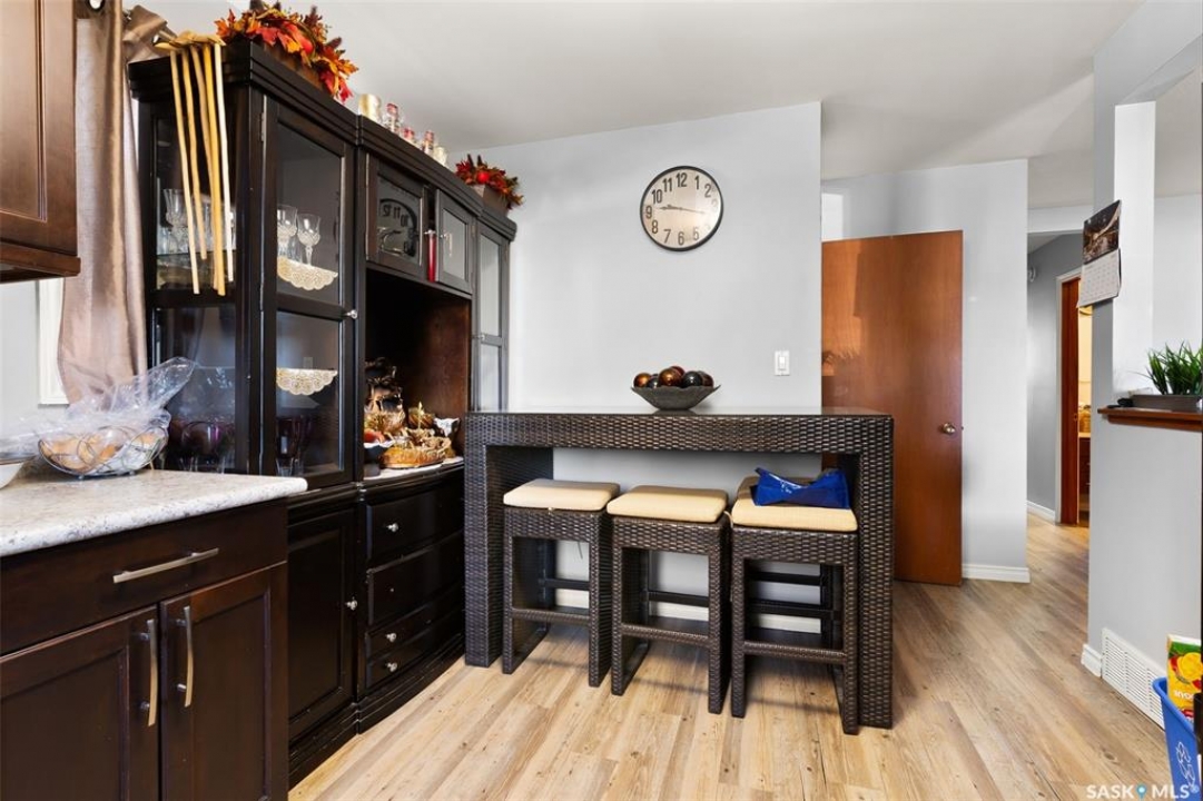 This solid duplex offers a fantastic opportunity for both homeowners and investors, featuring four bedrooms and two bathrooms. Unit is to be sold with attached property at 1437 Rupert Street (MLS #SK020175) Seller will only accepted offers for both sides. This side has been thoughtfully renovated, showcasing newer upstairs windows (excluding the living room), fresh paint throughout, updated fixtures, and high-quality laminate flooring. The kitchen and dining area have been opened up for a more modern flow, complemented by updated counters, cupboards, sink, and taps. The main four-piece bathroom includes a newer tub surround, while the basement boasts spray foam insulation, a generous family area, a large bedroom, a three-piece bath, laundry space, and an upgraded electrical panel. (Please note that basement bedroom window may not meet egress standards). The backyard is fully fenced, with a chain-link divider separating the two yards, and ample level parking adds to the convenience. Please contact your Realtor for more information on rental numbers or personal tour.