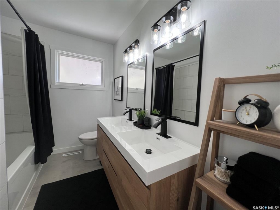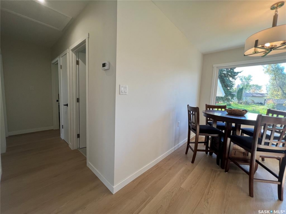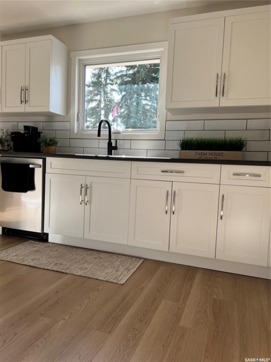 Welcome to 1121 Asquith Drive, Esterhazy – a stunning, fully restored home that perfectly blends modern style with cozy comfort. Upon arrival, the curb appeal will impress. The refreshed exterior features new siding on the garage and a beautiful accent design around the living room window, giving the home a polished, inviting look. The massive asphalt driveway provides plenty of space, comfortably fitting four vehicles or space for your camper or recreational toys. A detached 20x30 two-car garage adds even more convenience for vehicles, storage, or workshop space.Step inside and prepare to be amazed! The home offers 1,066 sq. ft. of bright, open living space, completely updated with continuous vinyl plank flooring, new paint, and smooth ceilings throughout. The modern kitchen is a true showpiece with brand-new cabinets and countertops, new appliances that have barely been used, and two new windows that fill the space with warm natural light.The main floor includes three comfortable bedrooms and a beautifully updated 4-pc bathroom featuring a stylish his & hers vanity, modern hardware, and fresh finishes that create a spa-like feel.Downstairs, the fully renovated basement welcomes you with a fresh new vibe, perfect for family movie nights, a home gym, or hobby space. The area shines with new flooring, paint, and baseboards & a modern barn door adds a touch of rustic charm while leading to a large storage room. You'll also find a 3-piece bathroom & laundry area conveniently located in the utility space.It is move-in ready & packed with valuable updates. Extras include central air, central vac, & new water heater (installed in 2023).Every detail of this home has been carefully planned and beautifully executed, showcasing true craftsmanship and pride of ownership.If you're looking for a turn-key property with modern flair, functional space, and a welcoming feel, 1121 Asquith Drive is ready to impress. Don't miss the chance to make this beautifully updated home yours!