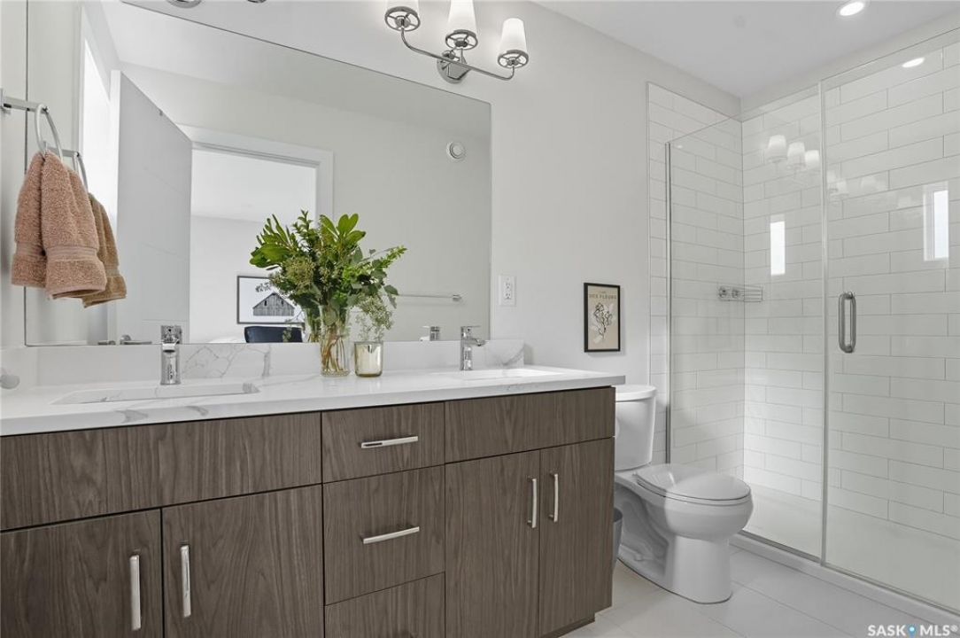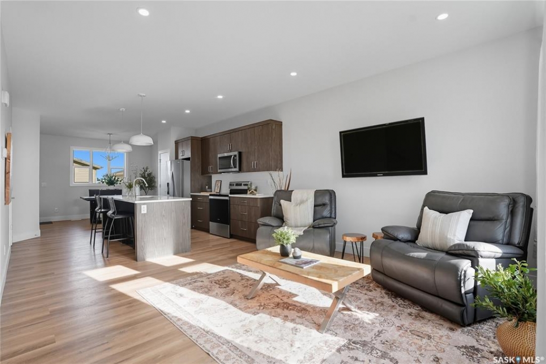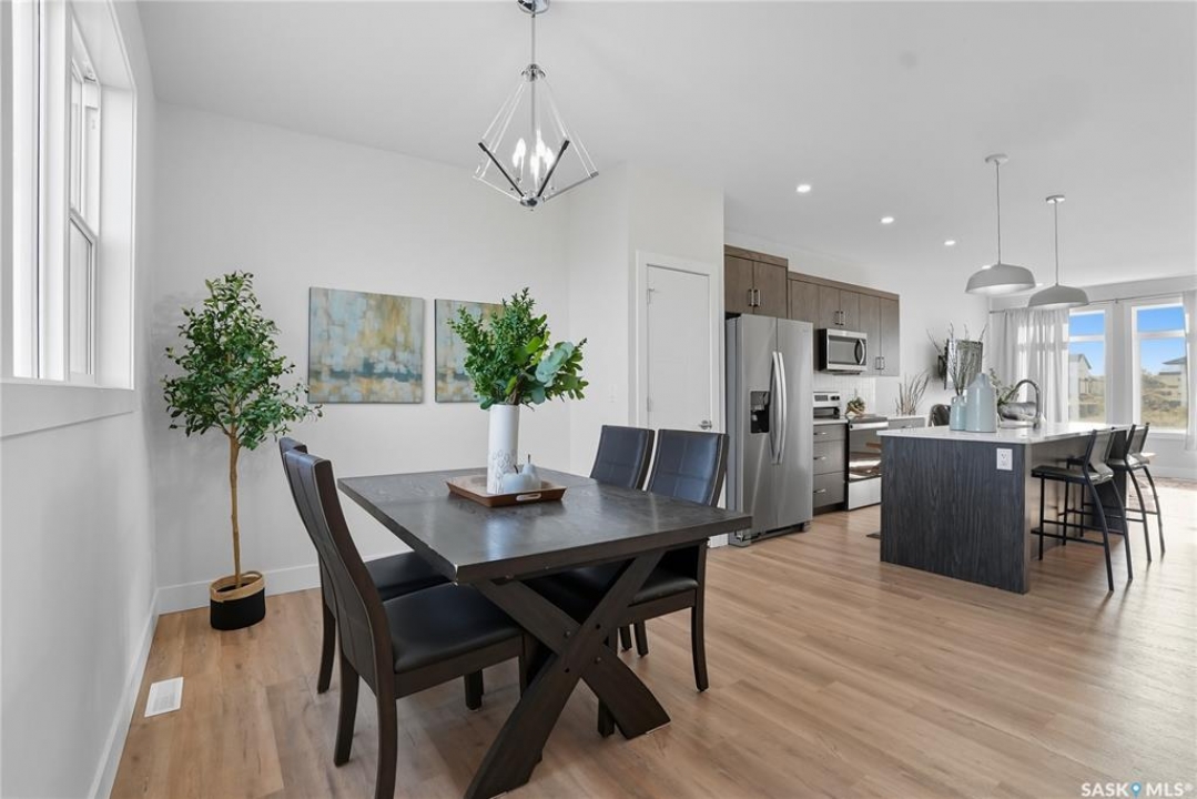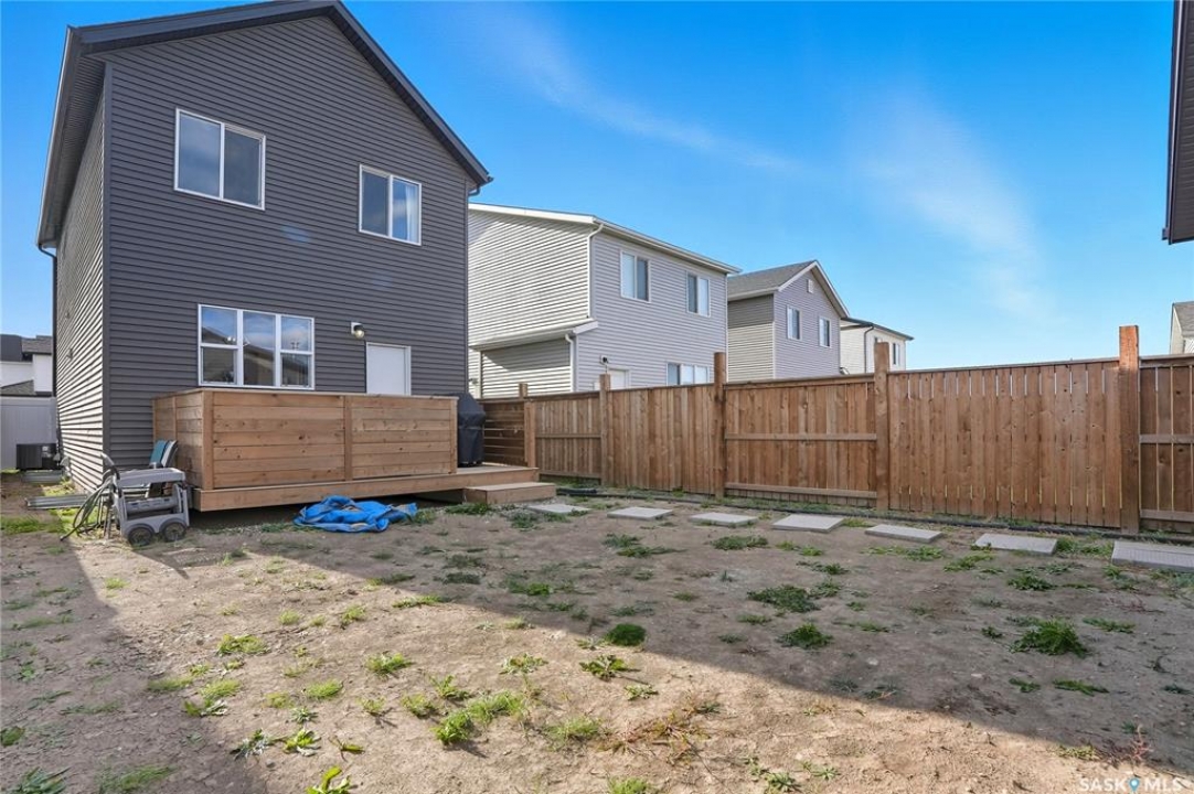 Welcome to 723 Henry Dayday Road, a stunning two-storey home that blends modern design with everyday comfort. Flooded with natural light, this home offers an inviting open-concept layout perfect for both family living and entertaining. Step inside to a stylish foyer with built-in bench seating that leads into the bright living room and contemporary kitchen, featuring quartz countertops, soft-close cabinetry, stainless steel appliances, and a large island with seating. The adjoining dining area offers the perfect gathering space, while a convenient two-piece powder room completes the main floor. Upstairs, you'll find three spacious bedrooms, a full bathroom, and laundry for added convenience. The primary suite is a true retreat with a generous walk-in closet and an ensuite boasting dual vanities and a walk-in shower. A separate side entrance offers excellent potential for a future basement suite, ideal for guests or added income. Outside, enjoy a fully landscaped front yard with underground sprinklers, a fenced backyard, a back deck with natural gas BBQ hookup, and two car detached garage. Located in Aspen Ridge, one of Saskatoon's most desirable new communities with quick access to amenities and the Chief Mistawasis Bridge.