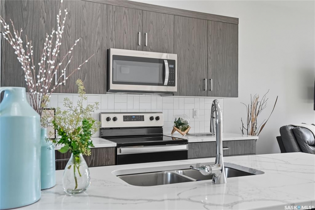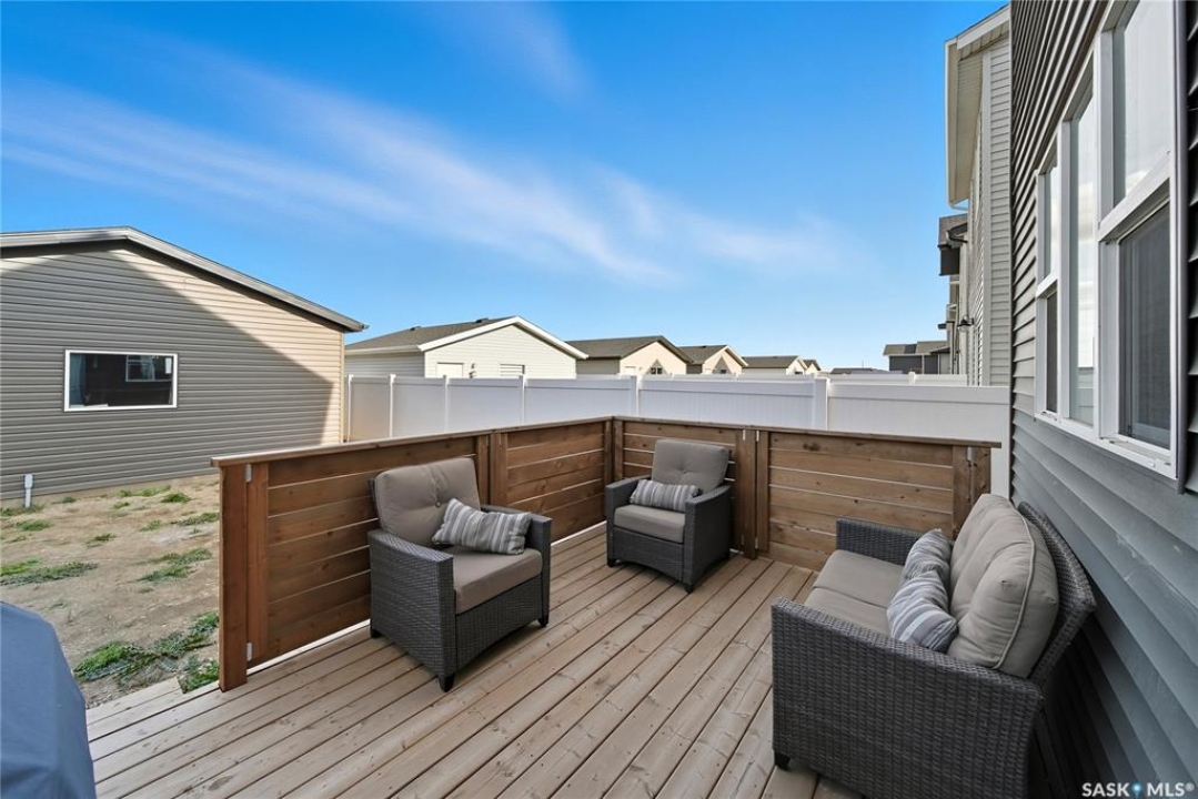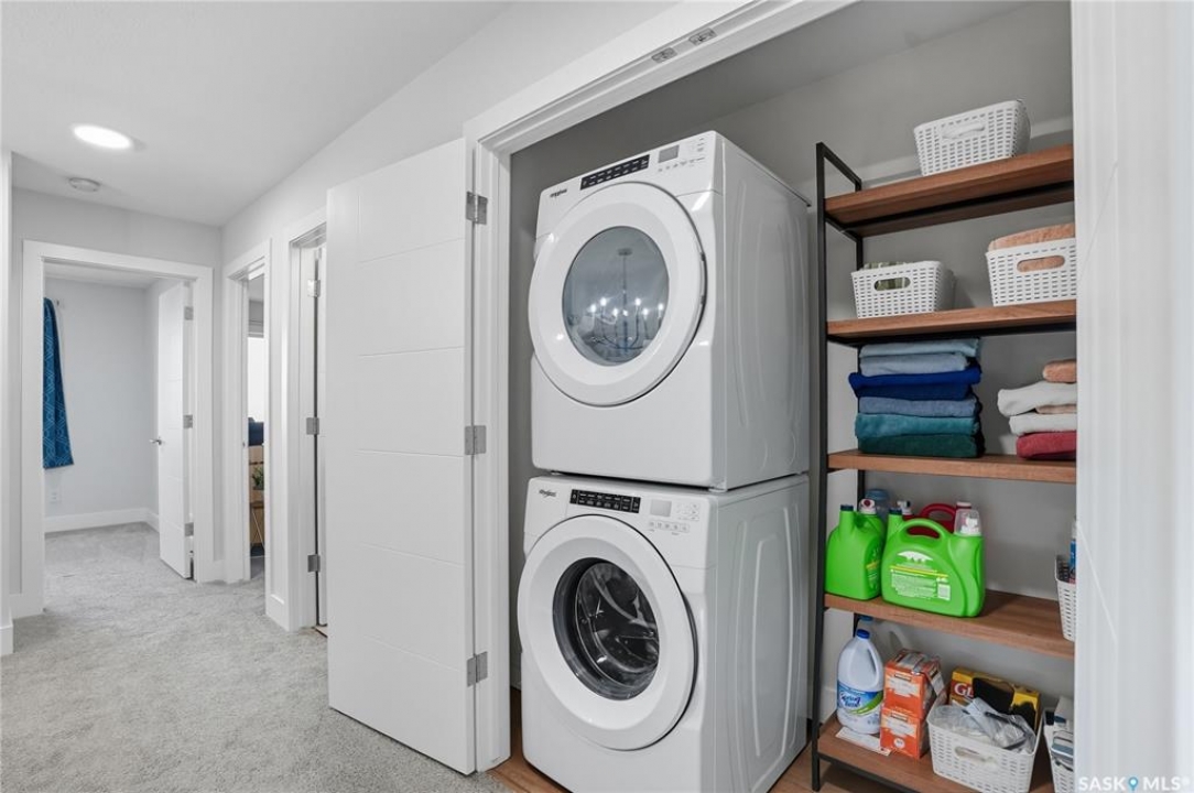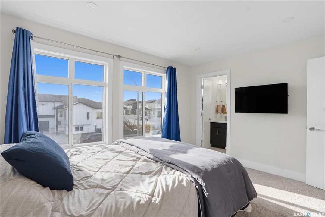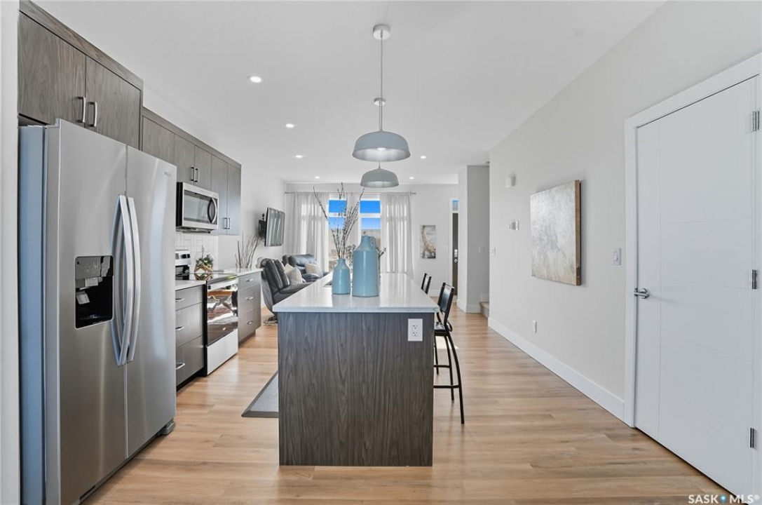 Welcome to 723 Henry Dayday Road, a stunning two-storey home that blends modern design with everyday comfort. Flooded with natural light, this home offers an inviting open-concept layout perfect for both family living and entertaining. Step inside to a stylish foyer with built-in bench seating that leads into the bright living room and contemporary kitchen, featuring quartz countertops, soft-close cabinetry, stainless steel appliances, and a large island with seating. The adjoining dining area offers the perfect gathering space, while a convenient two-piece powder room completes the main floor. Upstairs, you'll find three spacious bedrooms, a full bathroom, and laundry for added convenience. The primary suite is a true retreat with a generous walk-in closet and an ensuite boasting dual vanities and a walk-in shower. A separate side entrance offers excellent potential for a future basement suite, ideal for guests or added income. Outside, enjoy a fully landscaped front yard with underground sprinklers, a fenced backyard, a back deck with natural gas BBQ hookup, and two car detached garage. Located in Aspen Ridge, one of Saskatoon's most desirable new communities with quick access to amenities and the Chief Mistawasis Bridge.