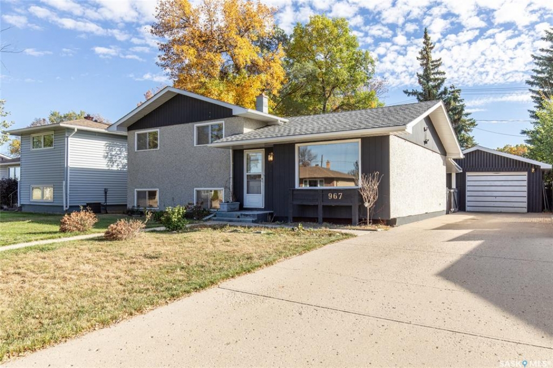 Welcome to this inviting 3-level split home in the highly desirable Palliser area, offering a thoughtful layout, modern updates, and excellent proximity to schools, recreation, and amenities. Step inside to find an eat-in kitchen that has been refreshed with brand new white cabinetry, new countertops, and new dishwasher and microwave hood fan. Also included are the side-by-side SS fridge/freezer, SS double oven, washer and dryer (all appliances included “as is”). Fresh paint on the main floor, paired with new vinyl plank flooring throughout the entire home, gives the interior a clean and modern feel. The spacious living room has a large picture window. Upstairs, you'll find three comfortable bedrooms (freshly painted) and a 4-pc bathroom with tiled tub surround, while the finished basement provides extra living area perfect for a family room, playroom, or office, plus plenty of additional storage. Central air conditioning ensures seasonal comfort. The property sits on a large, fully fenced lot with alley access and a swing gate wide enough for vehicle entry. A garden area is ready for your green thumb, and the south-facing covered deck is ideal for relaxing or entertaining in every season. Parking is never an issue with an oversized single-car garage, off-street parking, and RV parking. Location is a standout feature — this home is just minutes away from the Kinsmen Sportsplex, SASKPOLY Tech, skateboard park, ball diamonds, walking paths, churches, and elementary schools and a high school. This property truly blends practicality with lifestyle, offering move-in ready updates, flexible living spaces, and an unbeatable Palliser location. Some photos have been stagged.