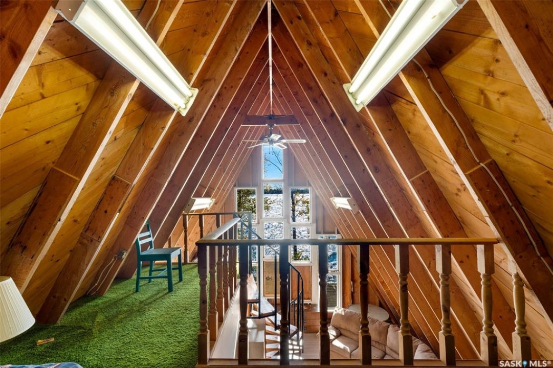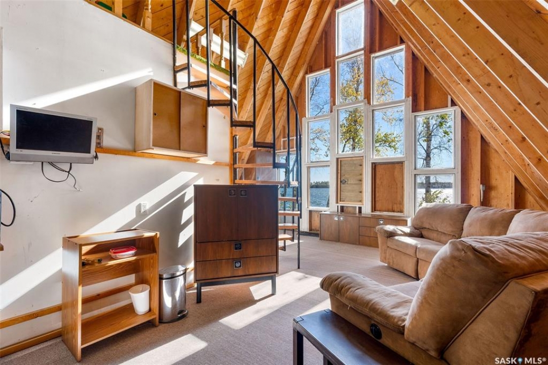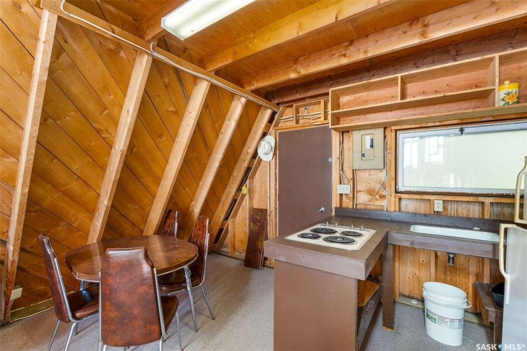 Have you been dreaming of a lakefront cabin and summer nights around the campfire but need something that won't break the bank? Lakefront Lot 5 at Lake Charron Regional Park might be exactly what you're looking for! This charming 600 sq. ft. lakefront cabin, built in 1984, features a unique A-frame design and a waterfront deck complete with a firepit area perfect for enjoying peaceful evenings with family and friends. Located just 13 km east of Naicam, SK, you'll be close to shopping amenities including a grocery store, meat shop, and the beautiful Naicam Golf Course, a welcoming 9-hole course ideal for the whole family. Lake Charron Regional Park offers a tranquil setting with plenty of amenities, including numerous campground sites, a large group pavilion, an upgraded shower and bathroom facility, and a playground for the kids. Inside the cabin, you'll find an open-concept layout with a spacious living room that flows into an eat-in dining area and functional kitchen. The main floor also features a large bedroom space and a designated area for a bathroom. Upstairs is a loft area with a couple extra beds, the perfect place for the kids to stay! While the cabin currently has no sewer or water services, a bathroom area is framed in and ready for future installation if desired. This is your opportunity to own an affordable lakefront getaway in a family-friendly park setting. Come take a look today!