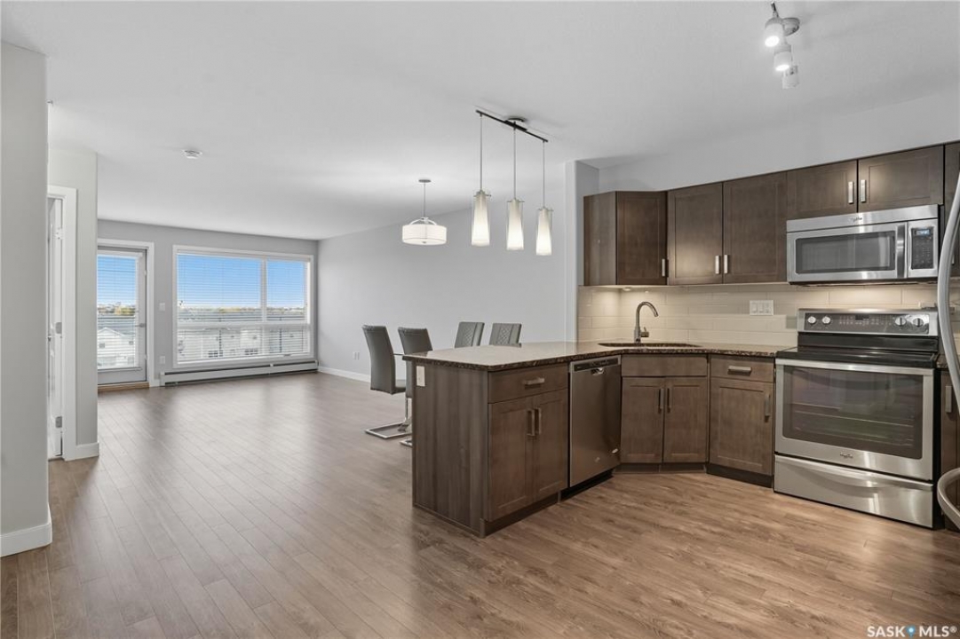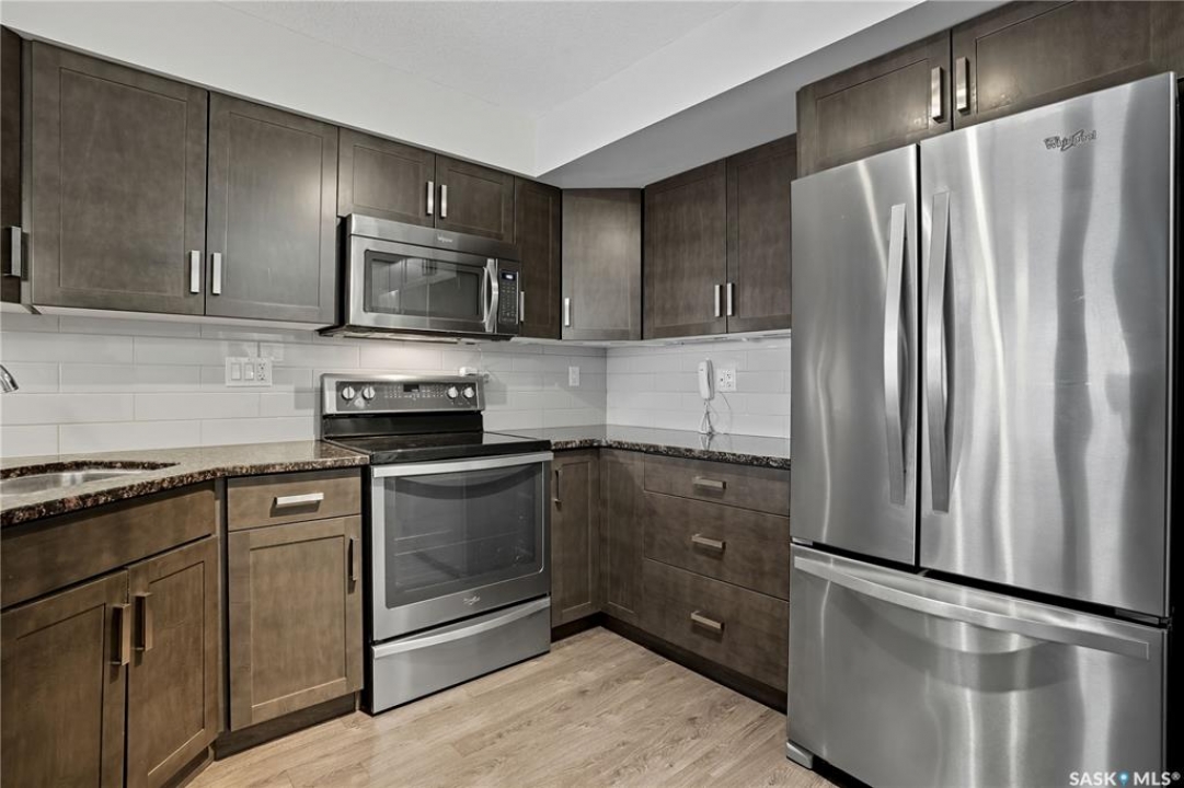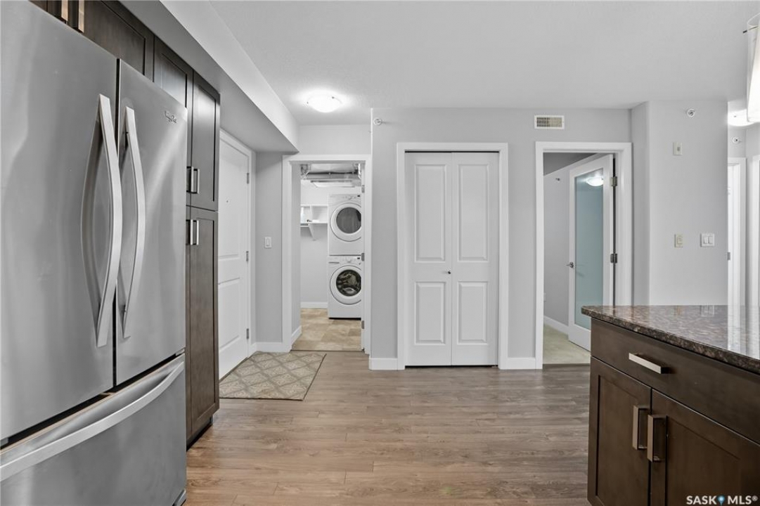 Welcome to this prime located top floor east end condo. High end finishes throughout , dream kitchen with stainless steel appliances included. This beautiful kitchen features dark cabinets with a rich looking granite countertop top and large island. Nice open layout with great views from the moment you walk in the condo. Condo has a large bedroom and another den for a perfect office or smaller bedroom . Convenient located washer dryer in the unit and an updated full bathroom. If that wasn't enough you also get an ideal underground parking spot on the end and a large storage unit for all your needs. Won't last long make your appointment with your realtor today.
