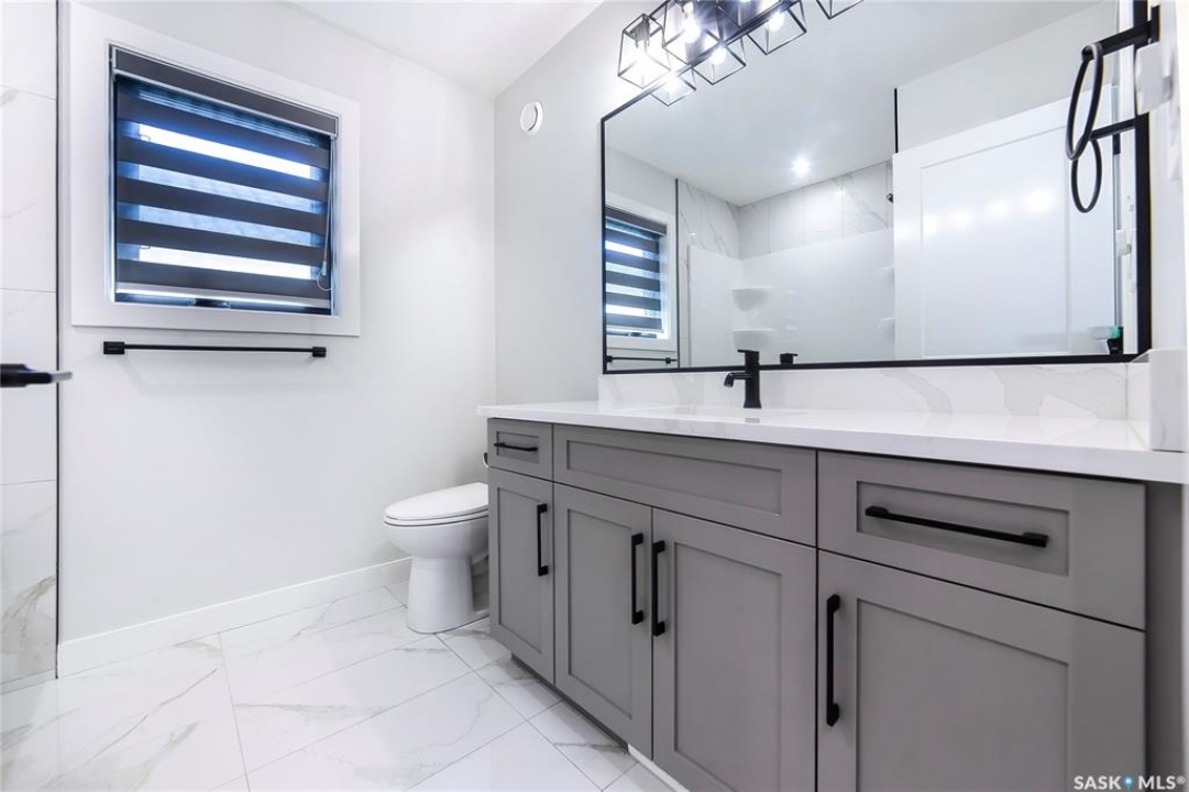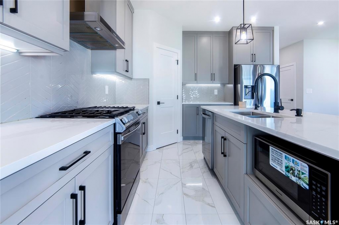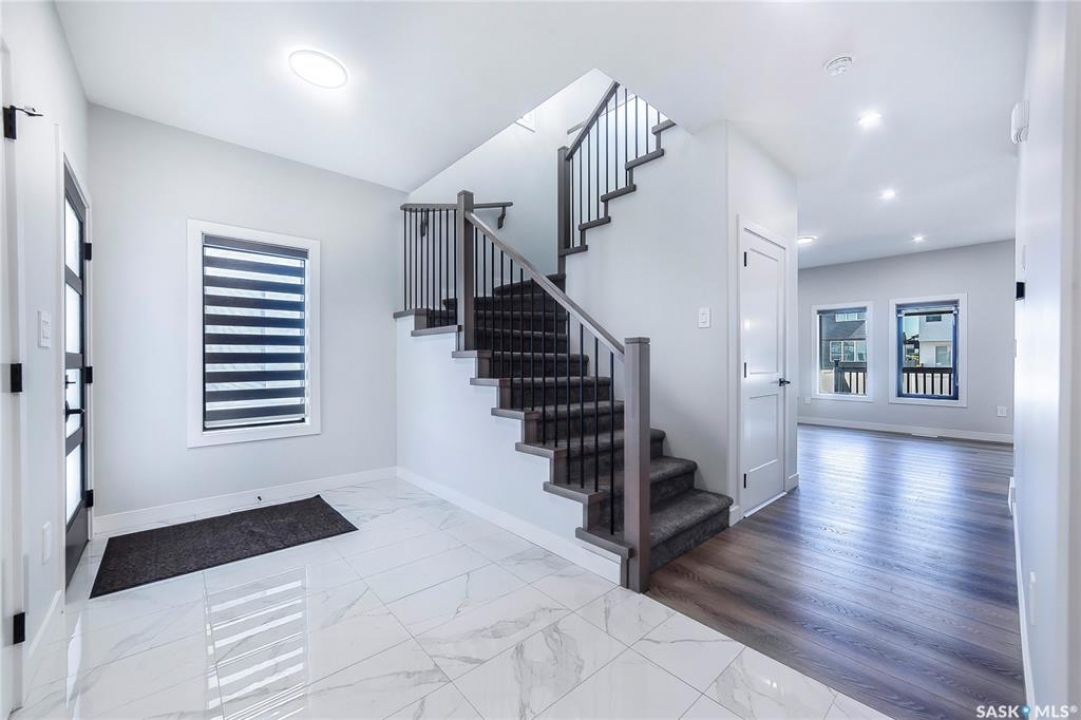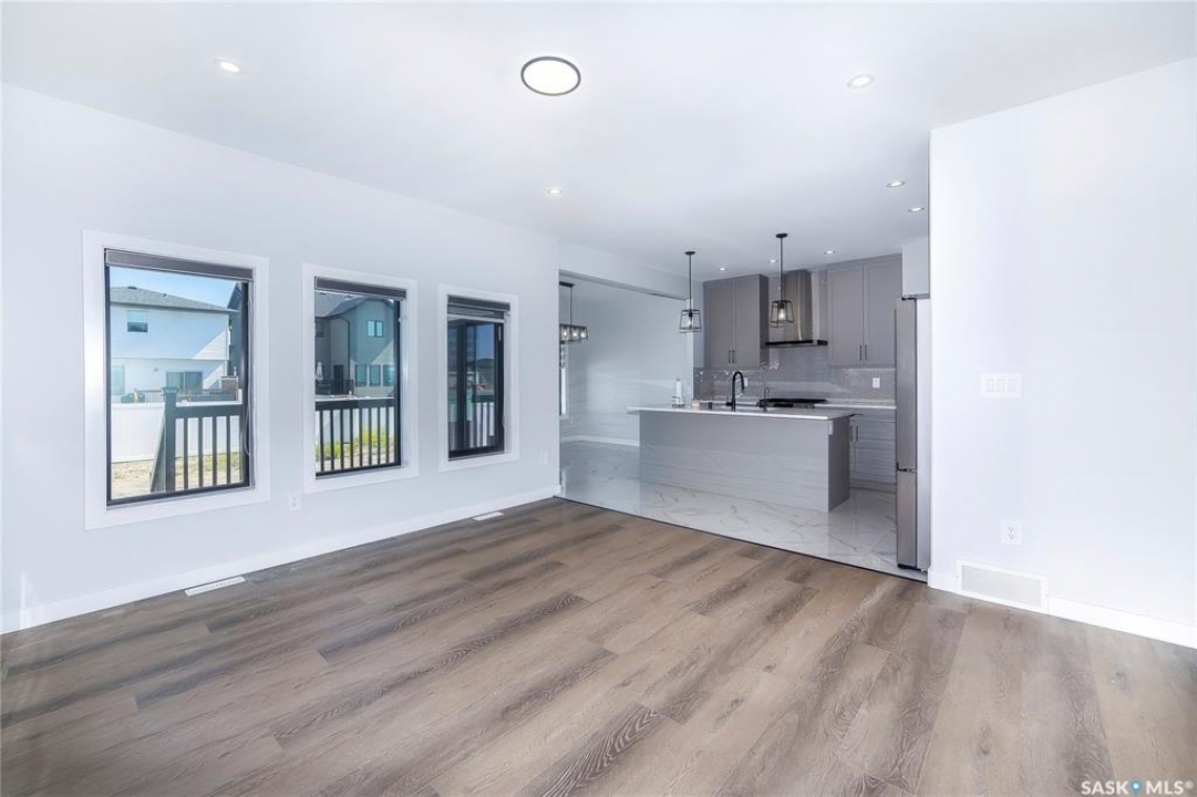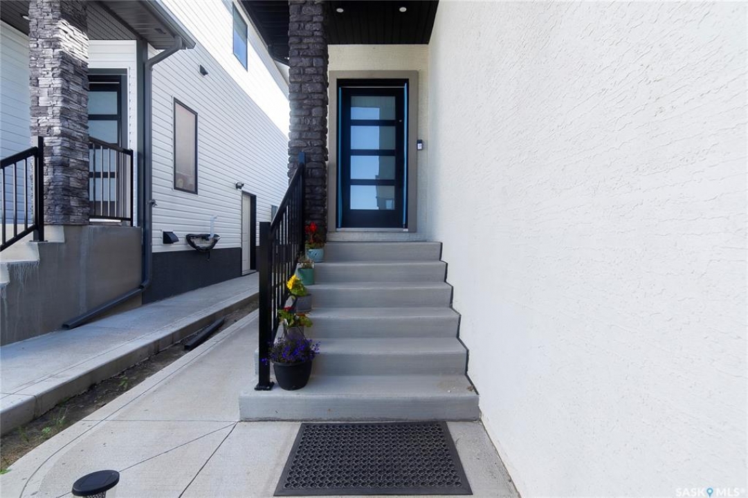 Welcome to this beautifully designed 6-bedroom, 4-bathroom home located in the desirable neighborhood of Brighton. This 2,020 sq. ft. two-storey offers modern finishes, functional spaces, and income potential with a 2-bedroom legal basement suite. The main floor features a spacious tiled foyer, bright living room with a feature wall, electric fireplace, and large windows overlooking the backyard. The kitchen is equipped with Gas Range, stainless steel appliances, chimney-style hood fan, pantry, reverse osmosis system, and modern cabinetry and a generous dining area. The Main-floor bedroom with a full bathroom adds convenience and flexibility for guests or extended family. Upstairs, the open stairwell with upgraded stained railing leads to a large bonus room perfect for family entertainment. The primary bedroom includes a luxurious 5-piece ensuite, while two additional bedrooms share a full bathroom. A laundry room with sink is conveniently located on the second floor. The fully developed basement with 9 feet ceiling includes a 2-bedroom legal suite with full kitchen, appliances, separate laundry, and private entrance—ideal for rental income. Additional features include Window covering, upgraded lighting and plumbing fixtures throughout, stucco exterior, finished deck, partially fenced backyard, and a heated double attached garage with built-in shelving. Located just steps from parks and walking paths, this home offers comfort, style, and functionality in one of Saskatoon's most sought-after communities. Call your Realtor today to book a viewing.