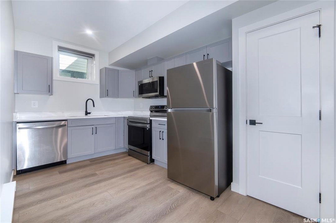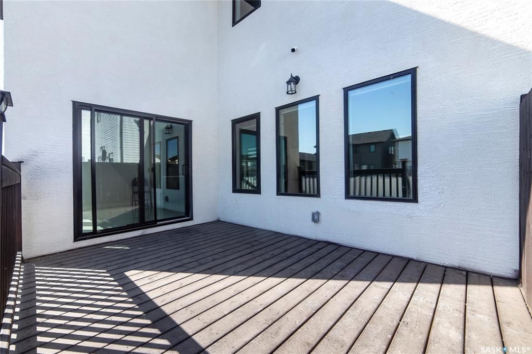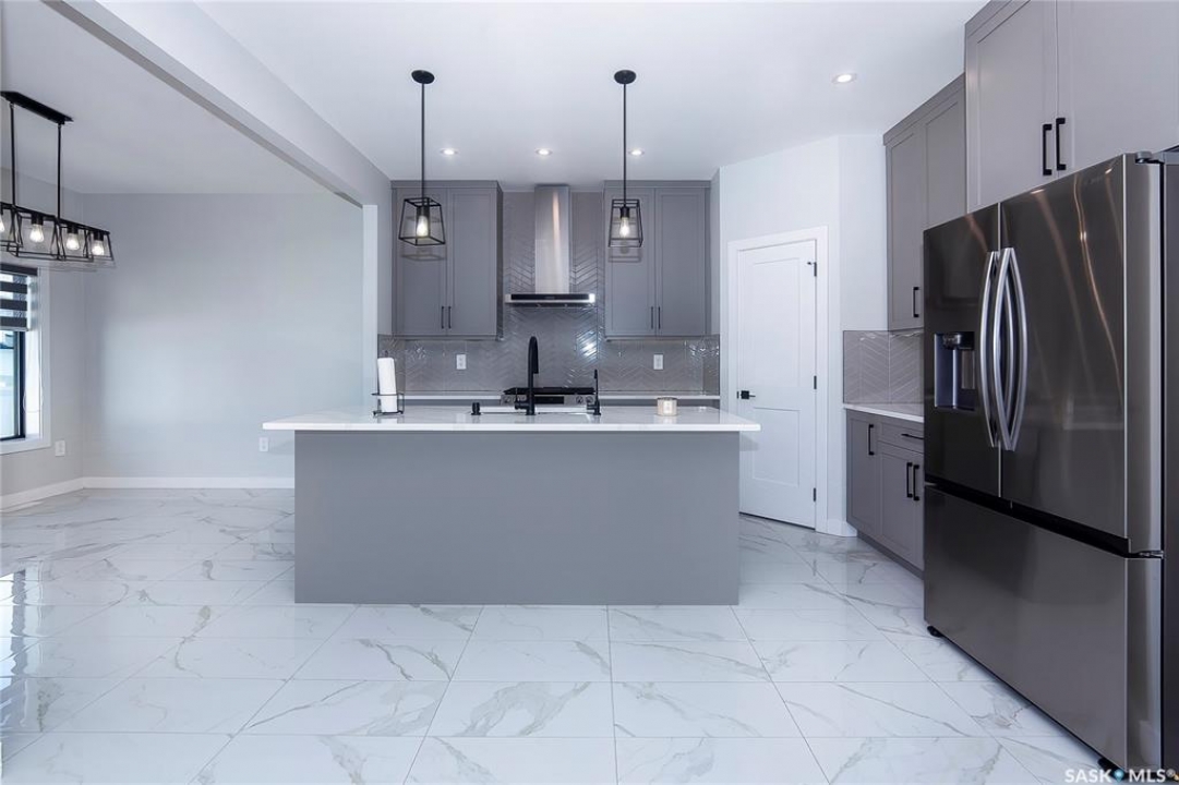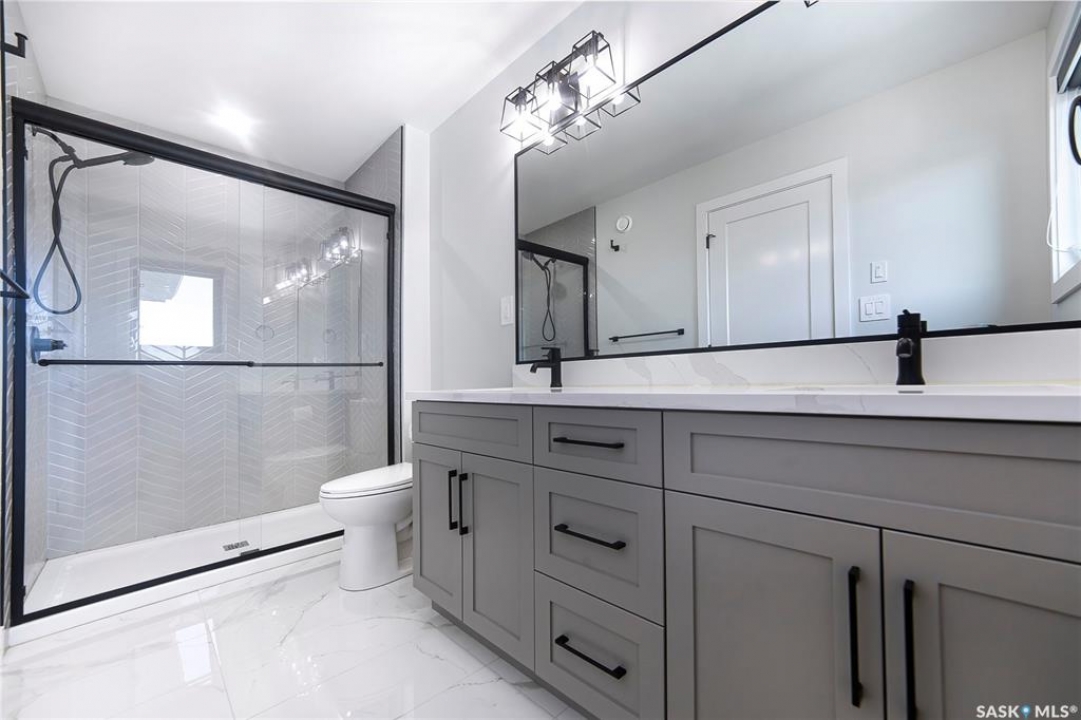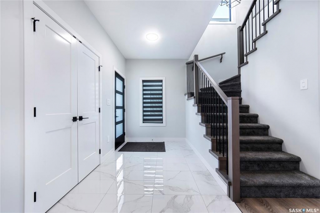 Welcome to this beautifully designed 6-bedroom, 4-bathroom home located in the desirable neighborhood of Brighton. This 2,020 sq. ft. two-storey offers modern finishes, functional spaces, and income potential with a 2-bedroom legal basement suite. The main floor features a spacious tiled foyer, bright living room with a feature wall, electric fireplace, and large windows overlooking the backyard. The kitchen is equipped with Gas Range, stainless steel appliances, chimney-style hood fan, pantry, reverse osmosis system, and modern cabinetry and a generous dining area. The Main-floor bedroom with a full bathroom adds convenience and flexibility for guests or extended family. Upstairs, the open stairwell with upgraded stained railing leads to a large bonus room perfect for family entertainment. The primary bedroom includes a luxurious 5-piece ensuite, while two additional bedrooms share a full bathroom. A laundry room with sink is conveniently located on the second floor. The fully developed basement with 9 feet ceiling includes a 2-bedroom legal suite with full kitchen, appliances, separate laundry, and private entrance—ideal for rental income. Additional features include Window covering, upgraded lighting and plumbing fixtures throughout, stucco exterior, finished deck, partially fenced backyard, and a heated double attached garage with built-in shelving. Located just steps from parks and walking paths, this home offers comfort, style, and functionality in one of Saskatoon's most sought-after communities. Call your Realtor today to book a viewing.
