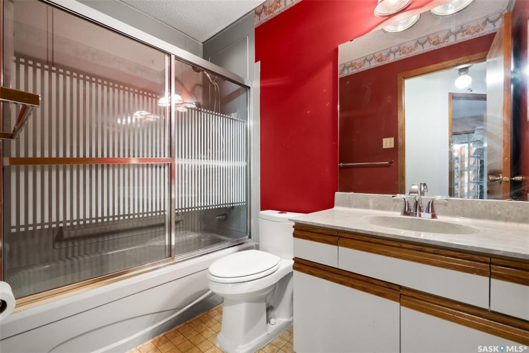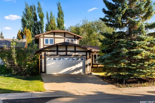 Welcome to 2938 Huget Place located in a quiet bay location in Gardiner Heights in the desirable east end. This 1673 sq ft 2 storey split has a Tudor style street appeal with a double attached garage and is nestled among mature trees. Upon entry the foyer leads to the large living room with a huge bay window flooding this area with light and it is open to the formal dining room. Next is the kitchen with stainless steel appliances and room for a casual eat in dining area with a garden door to the sunroom. Next, step down to the sunken family room with a fireplace. On this floor we have a 4th bedroom that could be an office, a bathroom with laundry and direct entry to the garage. Upstairs we have 3 bedrooms, the primary has a 3 piece ensuite and walk in closet and the other 2 bedrooms are a good size. The family bathroom completes this floor. Down to the basement we have a huge rec room with a "stage", a possible second kitchen with a sink, a den and lots of storage areas. Outside the yard is fully fenced and mature with a shed and garden area. Furnace and windows replaced. This is a perfect family home close to schools, parks and all essential amenities.
