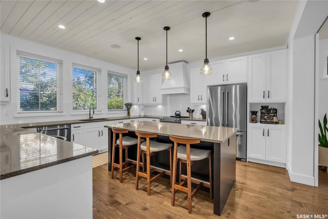 Located in Nutana, this beautifully designed 2 � storey home is just steps from the Meewasin Valley, Broadway Avenue, and the University of Saskatchewan. With 4 spacious bedrooms and 4 luxurious bathrooms, this home is designed for family living with the luxury finishes you love. The sun-filled kitchen, custom 8-foot barn doors, and open-concept living areas create an inviting space for both everyday living and entertaining. A flexible top-floor family room and fully developed basement with custom cabinetry offer flexible spaces for relaxation and entertainment. The attention to detail doesn't end there - the the professionally landscaped backyard adds the finishing touch to this exceptional home.