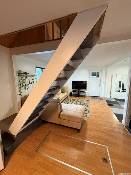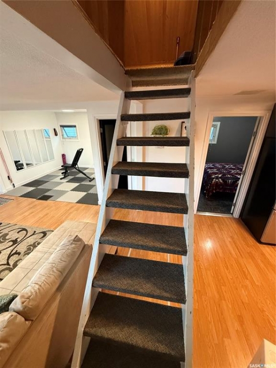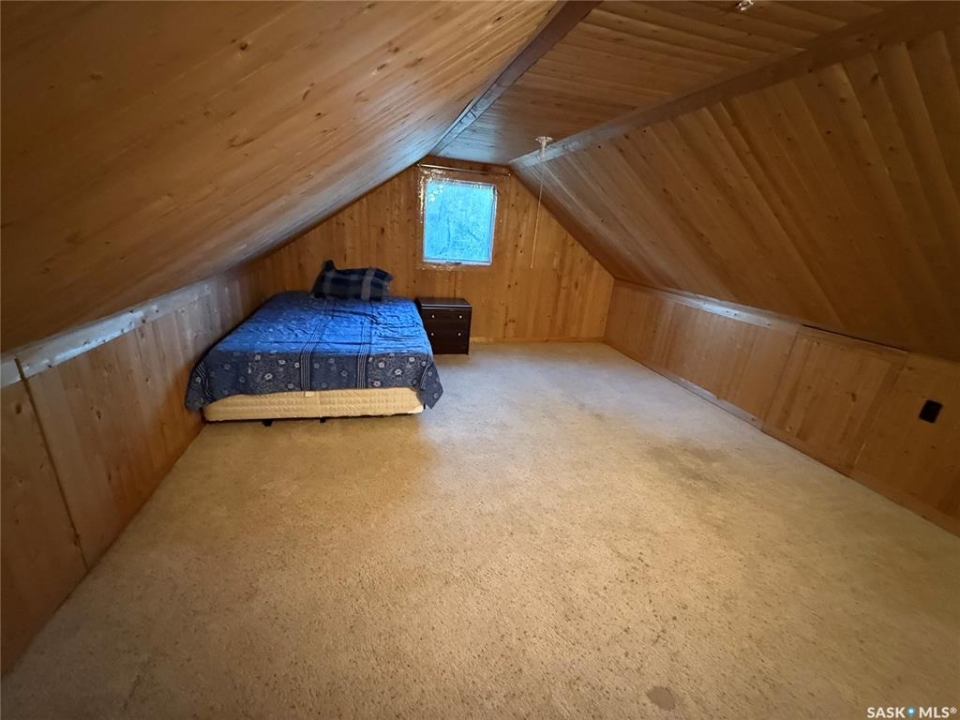This charming 1 1/2 Storey home is updated and ready for it new owners! If offers a sunroom that faces west. The back of the house you walk into the large mudroom/laundry area. This area is perfect for all extra storage space. The kitchen has lots of cupboards and opens up to the living room and dining area. This area is spacious. There is a main floor bedroom and 4 piece bathroom with tile surround and floor. The upstairs is a loft and could offer additional bedrooms or a great added living space. The outside yard is treed and has a storage shed and drive through lane. Don't miss out on this charming property!
