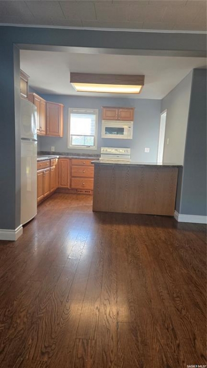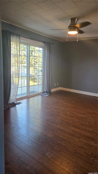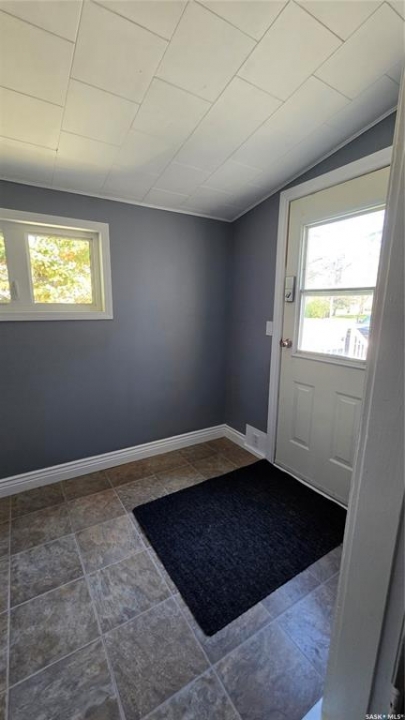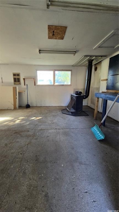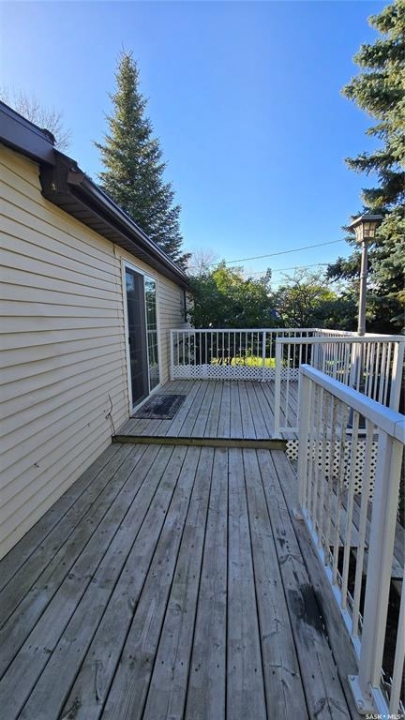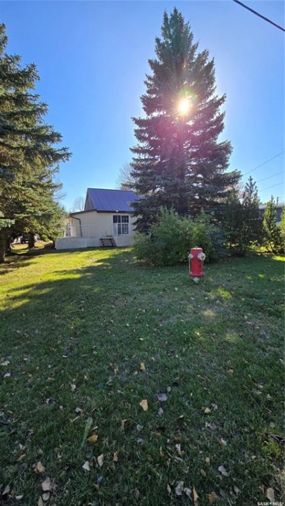Quaint home on corner lot in fantastic location. This three bedroom home is situated on a mature lot within walking distance of the k-12 school, the swimming pool, and right across from the rink and the Lions playground. The entry point is a large mudroom that has a 2025 window and 2025 metal roof that has lots of space for your every day items. The kitchen has been modernized and opens up to the spacious living room with garden doors to the deck and backyard. The four piece bathroom was renovated in 2022 and along with the two bedrooms completes the main floor. The second floor is one area that can be used as a third bedroom or another family area. The basement has been partially finished to include a fourth bedroom and another recreational room. The yard is amazing with lots of mature trees, a deck that wraps from the front porch to the back garden doors, a detached garage complete with wood stove and extra storage space, and a great garden area. Priced to sell!
