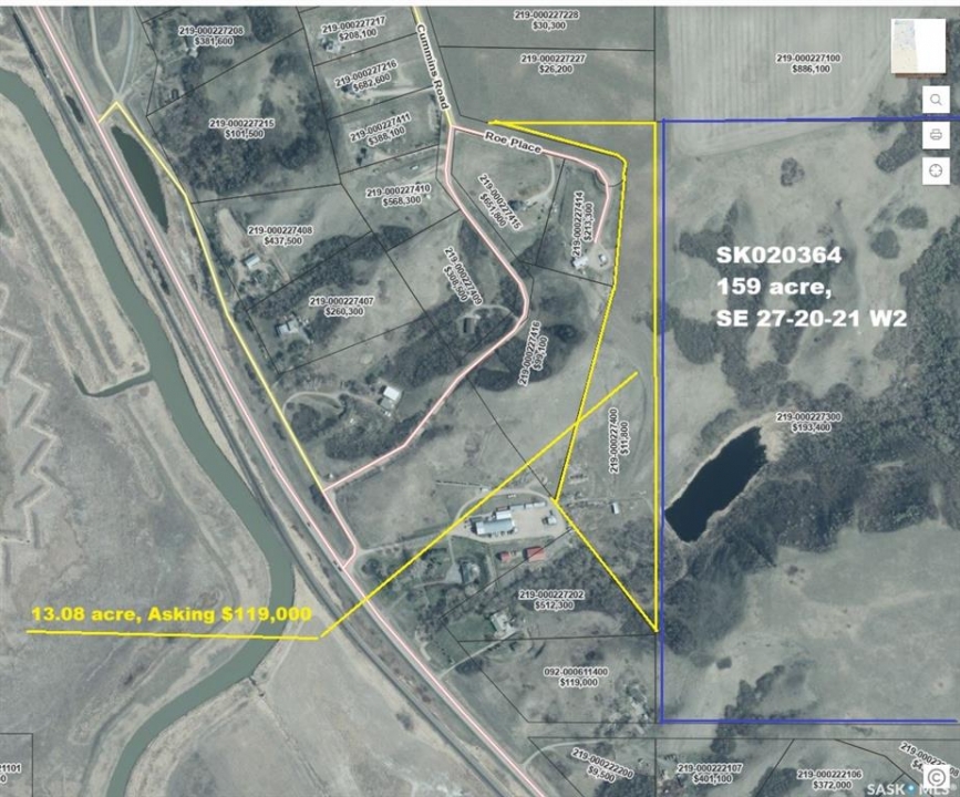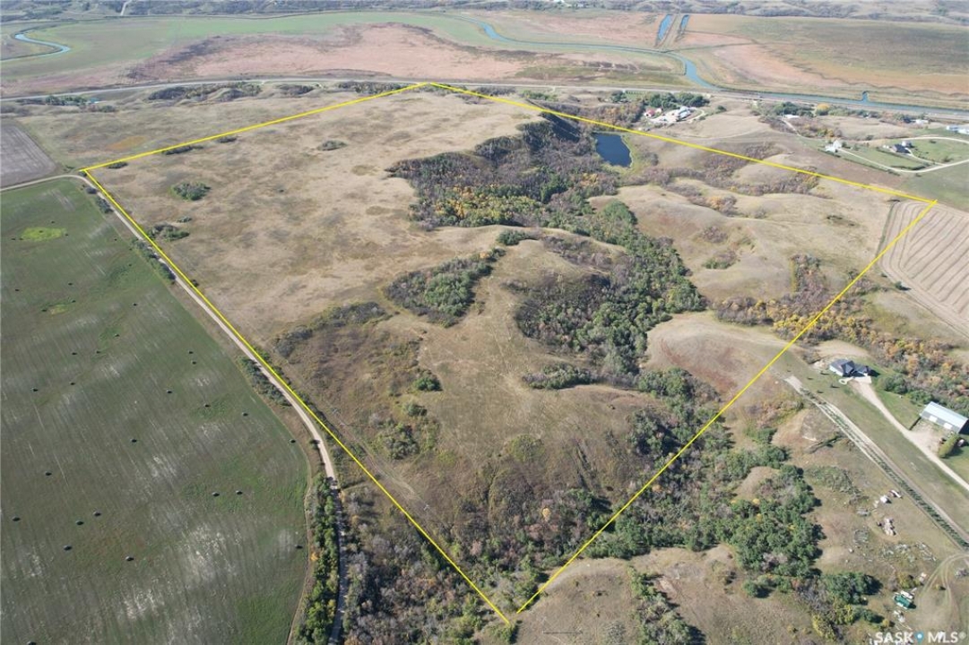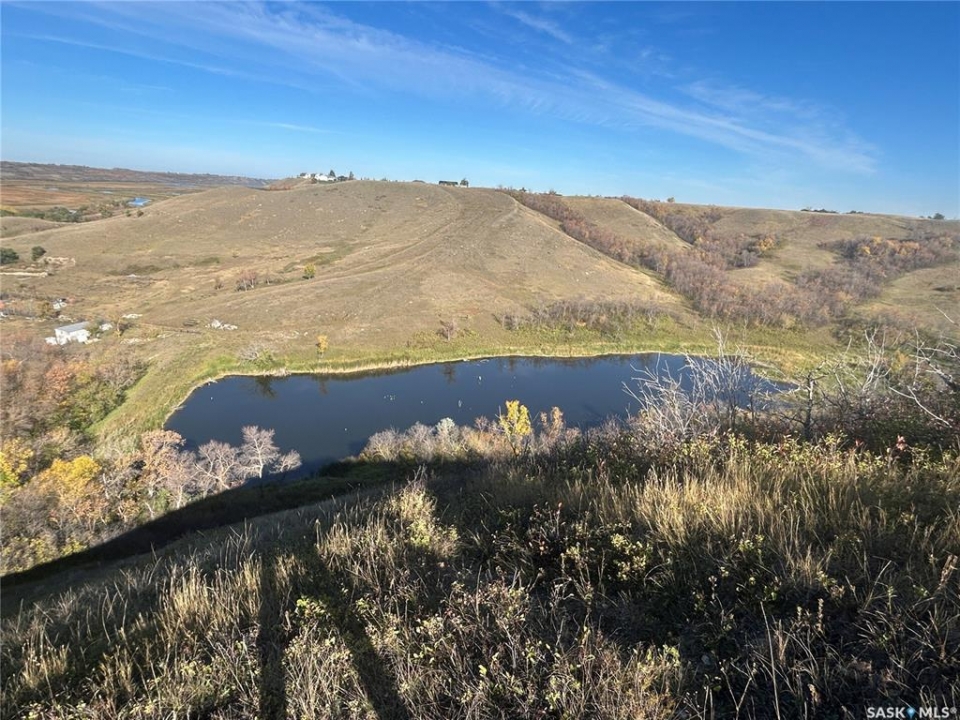 One full quarter section of farm land that has 50 acre good arable land, 105 acre of native grass with beautiful coulee, large pond, a creek, and amazing view of the valley and coulee. Land is partially fenced. 50 acre arable land is currently in tame grass, but can be broken up and farmed for grain production. There are a few good building sites for luxury houses with beautiful view of the valley and coulee. The neighboring community is on Pipeline water. Location of this land can not be any better: 3.5 km to Last Mountain Lake, 10 Km to the town of Lumsden, 33 km to Regina city limits. The neighboring land has already been developed into a small community. The 13 acre parcel to the west of this land is also for sale, asking $119,000. See the last photo for parcel image.