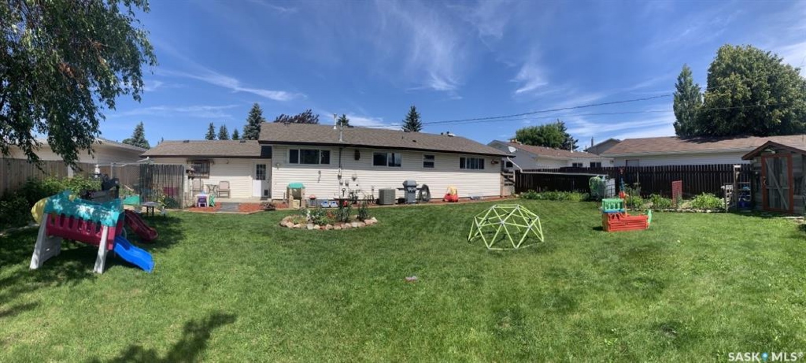 This 1298 square foot bungalow is sure to impress. Located in the cozy community of Langham. Situated on a beautifully landscaped 75'X120' lot. In the front you will find a single garage attached to the home by a spacious enclosed breezeway leading to the fully fenced back yard. The backyard has room to run, play or entertain. Featuring; vegetable gardens, fruit bushes, flower beds, big storage shed, dog run, and fire pit area. The main level of the house has a spacious primary bedroom (12.8X15.6 ) with updated 3pc en-suite, 2 other large sized bedrooms, the 4pc main bath has also been upgraded, main floor laundry, open kitchen and dining room and huge living room with fireplace. The upstairs has had some major upgrades including new flooring and windows. Downstairs is fully developed with another big bedroom, 3pc bathroom, bar (currently being used as an office), and large family room connecting to rec room. The utility room is very clean and functional with a workshop/ additional storage space. Upgrades to the property include; central air, furnace, hot water tank, new main floor flooring, main floor windows, underground sprinklers front and back, fridge, upgraded bathrooms on main floor, dishwasher, 4 camera exterior security system wired to primary bedroom, exterior landscaping and more!