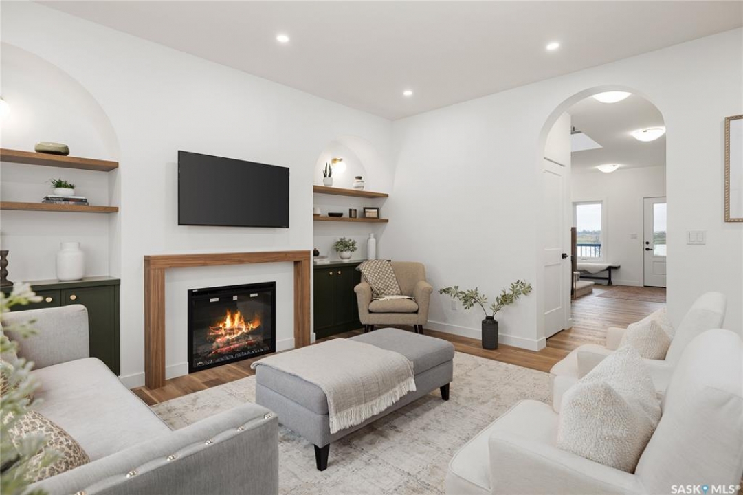 Welcome to 318 Taube Green in the neighborhood of Brighton – a custom property designed and built by Touchstone Homes. This 2,509 sq ft two storey is one of only a handful of homes that face the lake in Brighton, making this a very unique opportunity for you and your family. As soon as you enter the front door you will understand what makes this Touchstone home special. On the main floor you will find a mix of comfort and style. Adjacent to the large entryway, there is a main floor office and another door that connects the 25x24 heated garage. Moving on, there is access to the mudroom, pantry, and a two-piece bathroom. One of the main features of this house is the impressive gourmet kitchen with professional grade appliances, including a 36” range. The tasteful two-tone cabinets and luxury quartz countertops are highlighted by the built-in under cabinet lighting.The main living area has a built-in fireplace and custom cabinets that make you feel like you're sitting in a house out of a magazine. There are large patio doors that lead you to an oversized deck and a backyard that already has a lush lawn for you to enjoy! Upstairs there is a spacious family room that overlooks the lake - creating a relaxing area to enjoy the view of the water. The primary bedroom also offers lake views and features a luxurious ensuite.There are two additional bedrooms on the second floor and a 3-piece bathroom to serve them. The second floor laundry room is tastefully designed with a washer, dryer, tall cabinetry, quartz countertops, and ample storage. This entire home showcases thoughtful design choices and premium finishes, creating a perfect balance of luxury, comfort and practicality. The basement perimeter walls are insulated with poly, making the lower lever ready for your development. Ask about pricing! This Touchstone Home is truly one of a kind – come and see it for yourself!