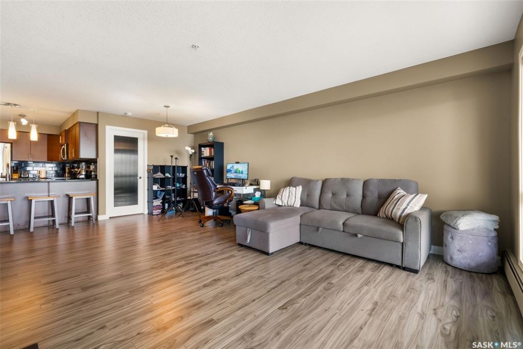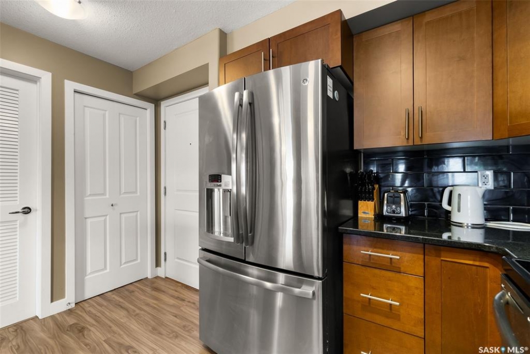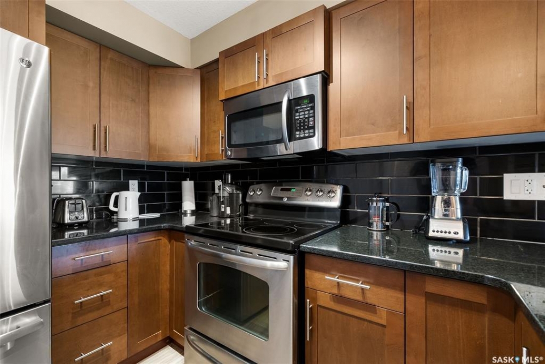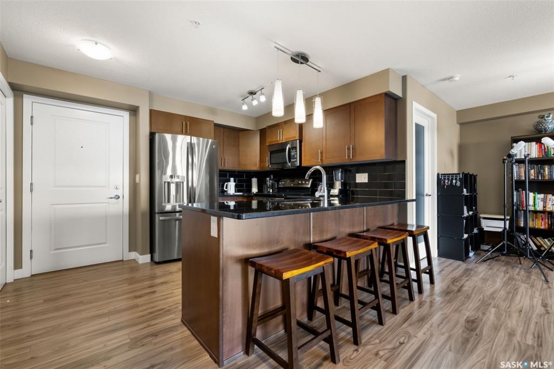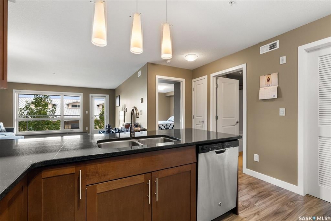This modern 829 sq. ft. condo in Windsor Park offers a bright, open layout and stylish finishes in a well-managed low-rise building. Perfect for first-time buyers, downsizers, or investors, this home blends comfort and convenience with a prime east-end location. The spacious living room features large windows and direct access to a private balcony, filling the suite with natural light. The kitchen is thoughtfully designed with granite countertops, tile backsplash, stainless steel appliances, rich cabinetry, and a centre island with seating—ideal for entertaining or casual meals. The open dining area flows seamlessly from the kitchen, making the space warm and inviting. This unit includes a primary bedroom with generous closet space, a versatile den that works as a home office or guest room, and a full 4-piece bathroom. In-suite laundry with upgraded washer and dryer adds extra convenience. Other highlights include laminate flooring in the main living areas, carpet in the bedrooms, and central air conditioning. The unit comes with one underground parking stall and access to building amenities such as an elevator, secure entry, and guest parking. Condo fees cover water, heat, common area maintenance, exterior upkeep, reserve fund, snow removal, lawn care, and building insurance—providing peace of mind and low-maintenance living. Located close to parks, shopping, restaurants, schools, and all east-end amenities, this home delivers both lifestyle and location.
